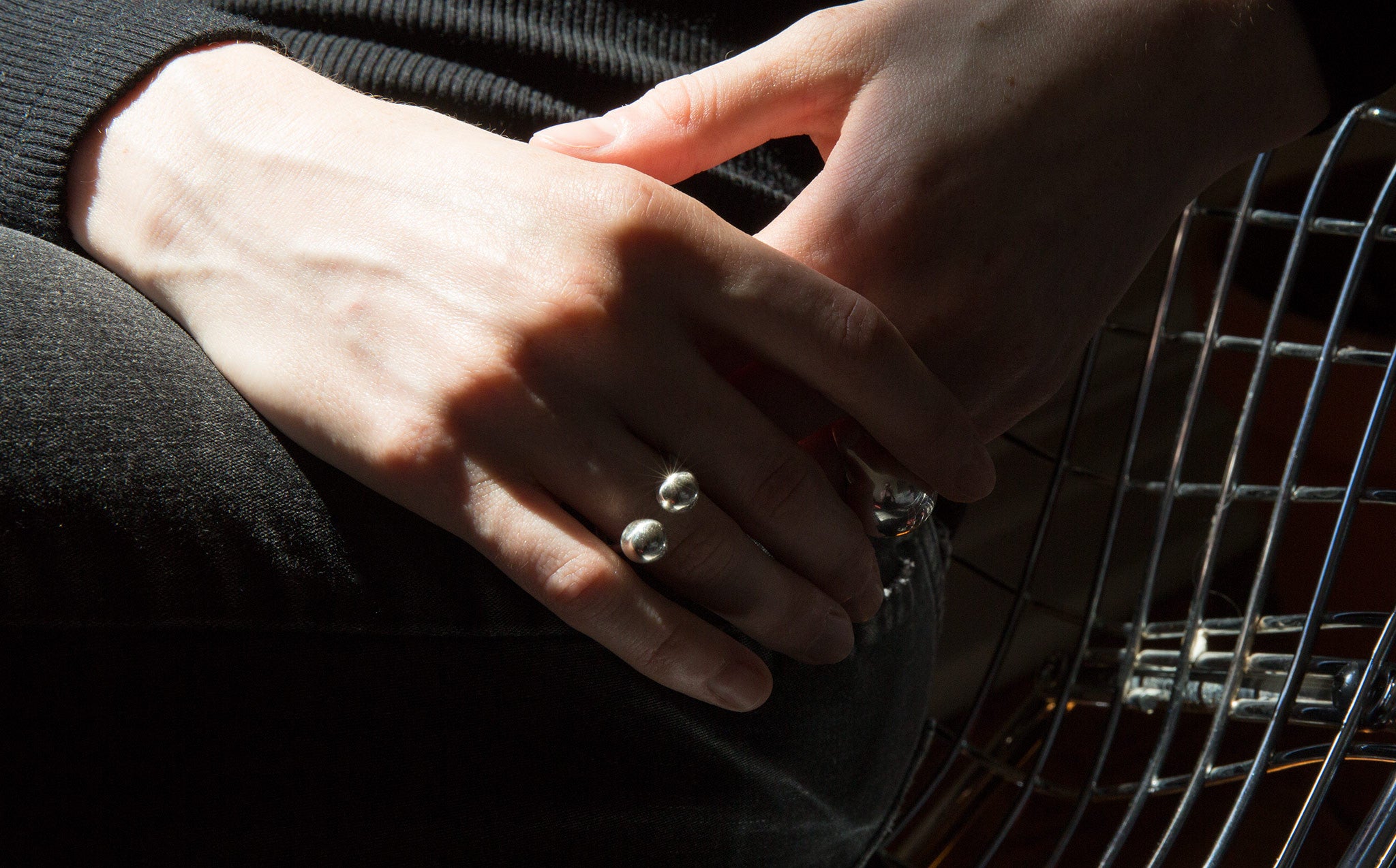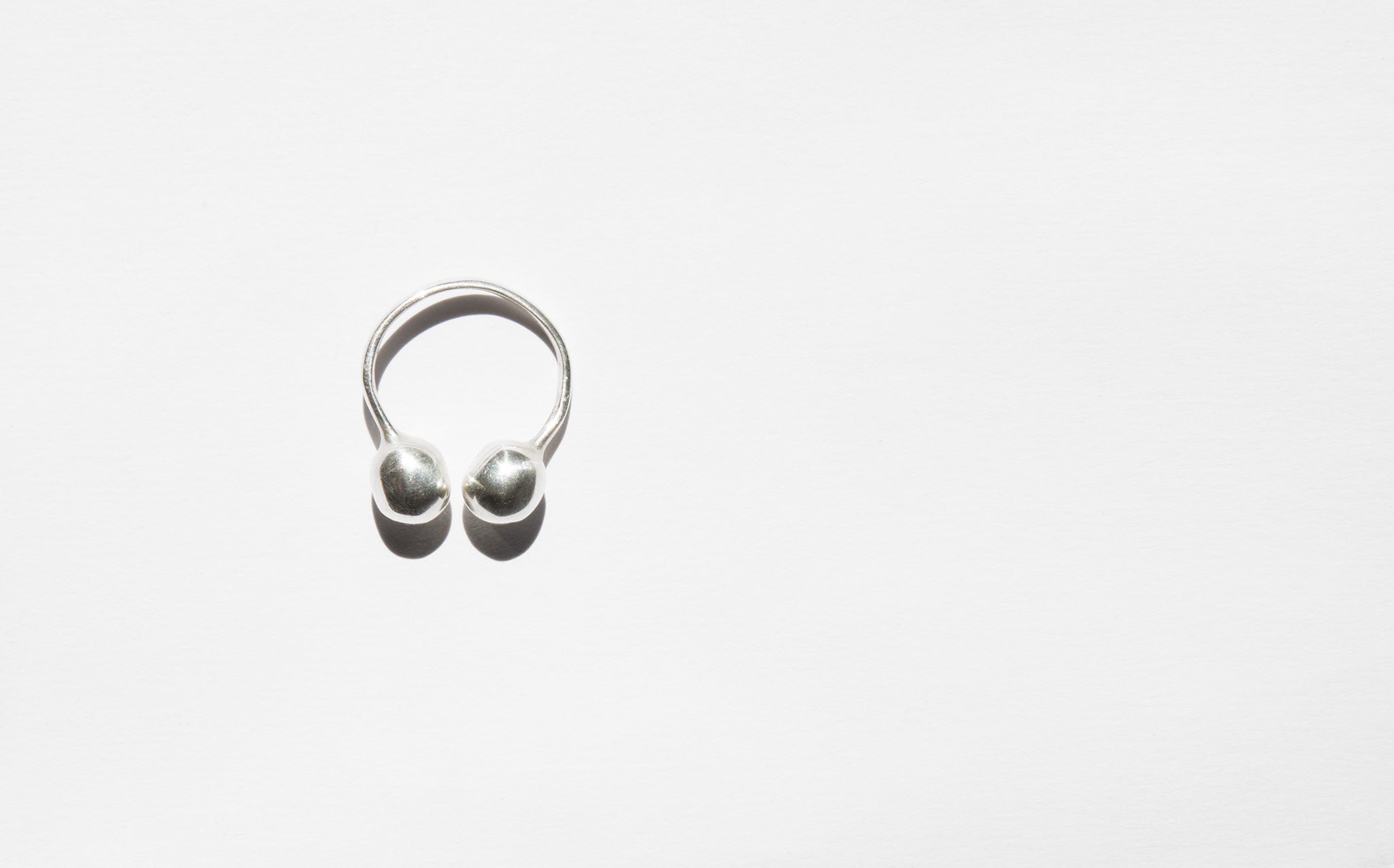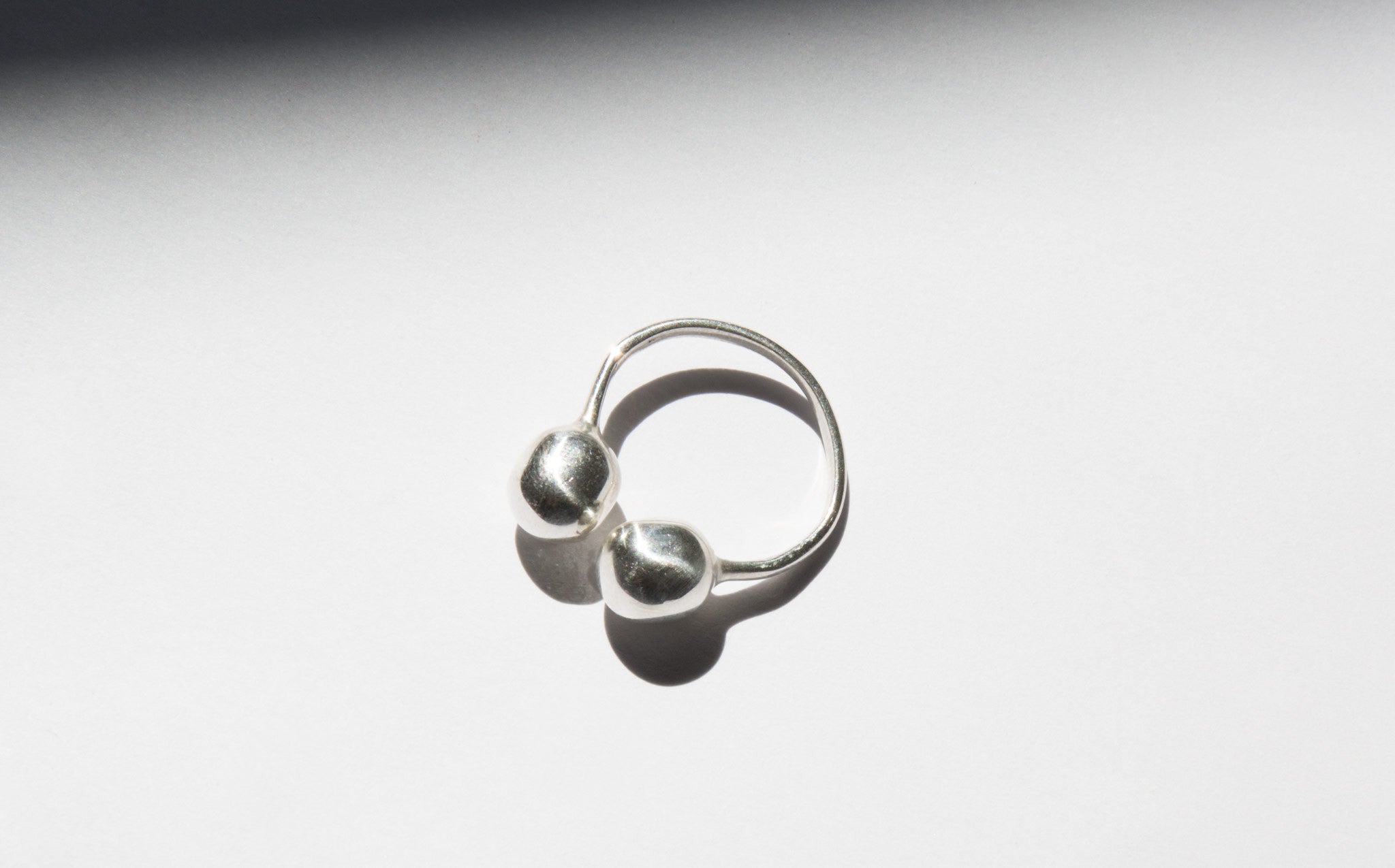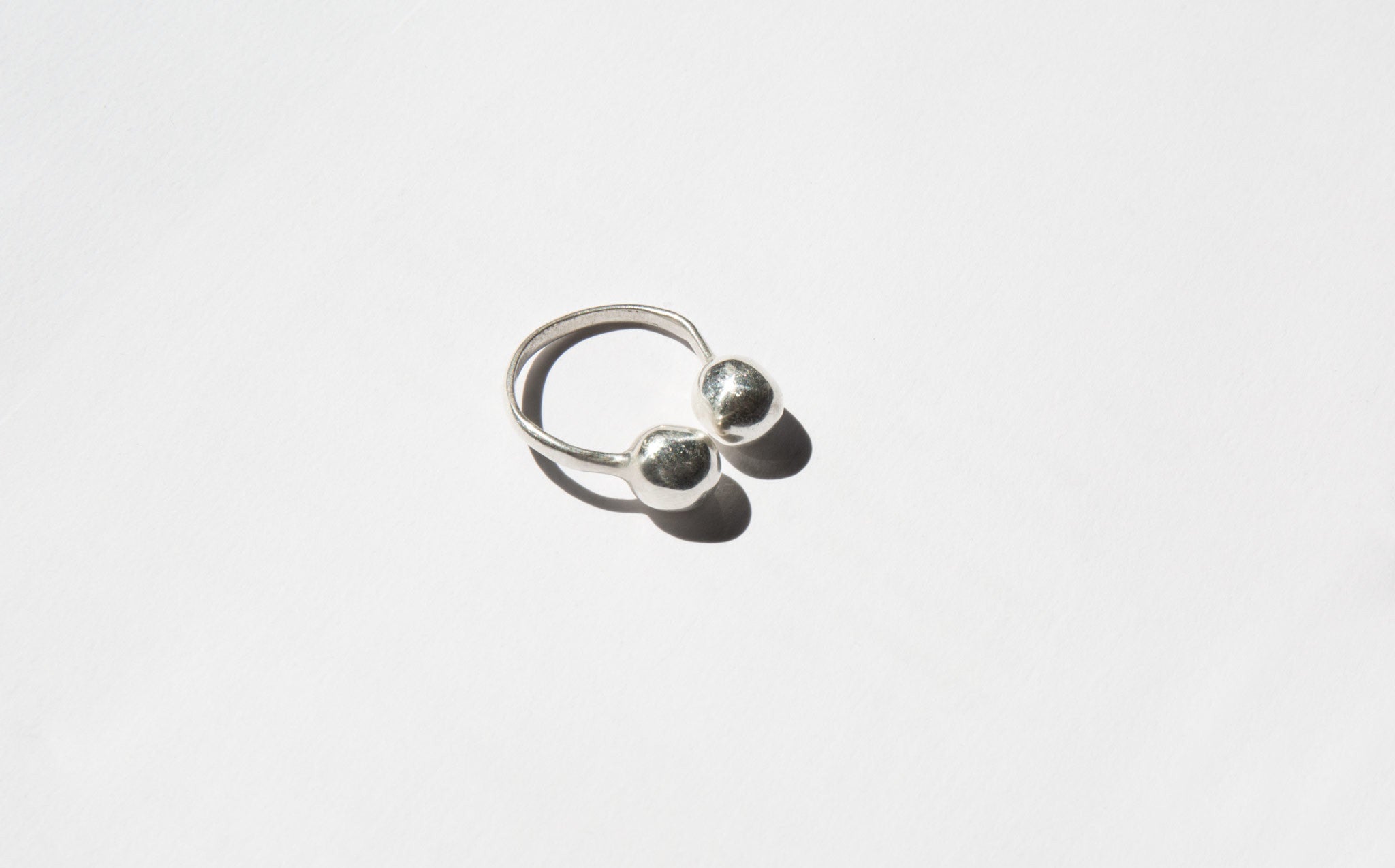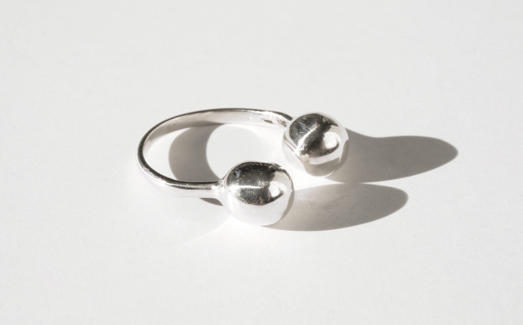 Hand shaped, sculptural solid sterling silver orb ring. Adjustable for a perfect fit.
