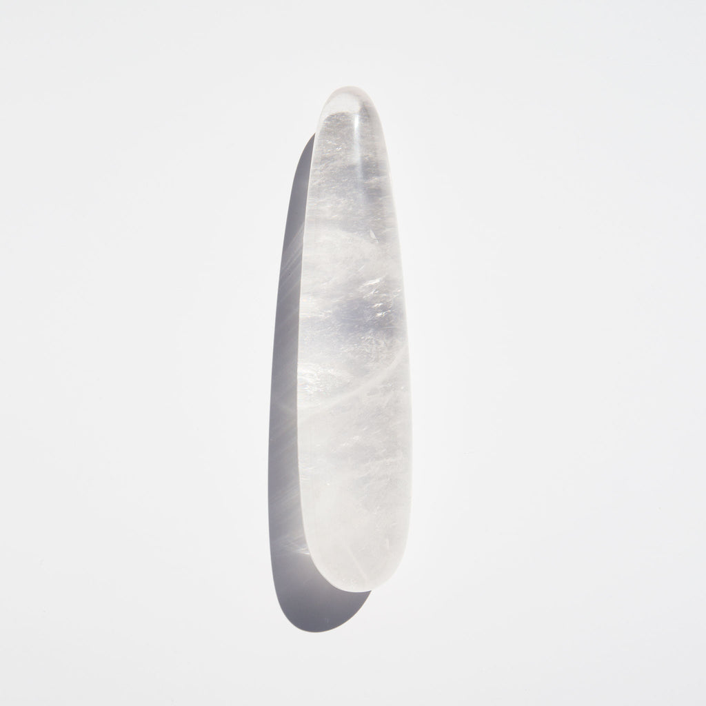 Pure clear quartz Chakrub. Sometimes called the "Universal crystal" because of its many uses, clear quartz is known as a powerful stone. It draws off negative energy of all kinds, aids concentration and unlocks memory, and even stimulates the immune system, bringing the body into balance.
