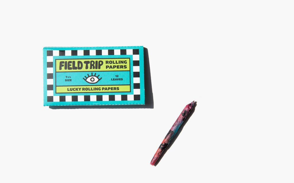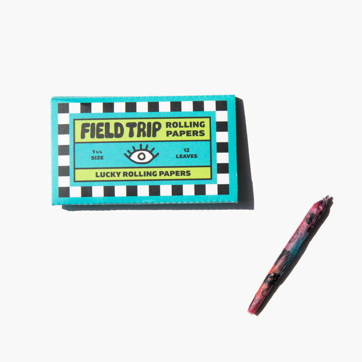Vegan, printed rolling papers printed on natural rice paper using organic vegetable based inks and organic, fair-trade arabic gum from the acacia tree. Each booklet contains 12 papers (1 1/4") and 12 tips.