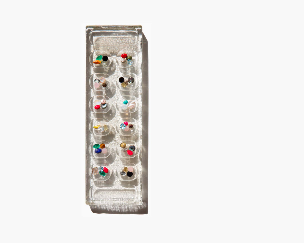 Kindred Black’s collaboration with Don't Let Disco founder Ashley Moubayed merges sculptural glass, handwrought talismans, and signature beadwork into a limited edition Mancala set — an heirloom quality game that celebrates history, connection, and the beauty of shared experience. Each glass game board is a handmade one-of-a-kind, accompanied by a collection of game pieces with their own talismanic properties and symbolic powers of protection. Sterling silver shells, aquamarine, sapphire, antique cut-glass scarabs, moonstone cabochons, citrine, pearl, amethyst, a tiny lucky pig, and other treasures transform the traditional seeds into objects of meaning and beauty.