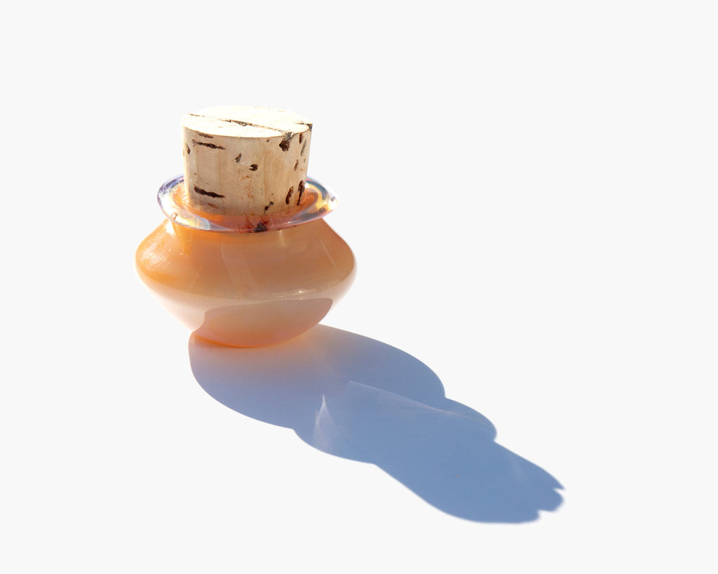 Each glass pot is hand blown individually by a glass artisan and our lip colors are shipped plastic-free with a cork seal.