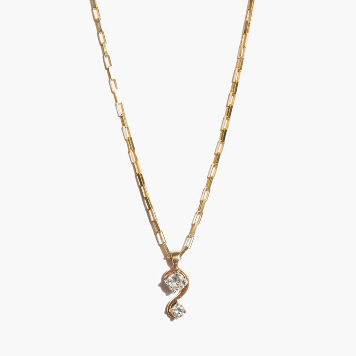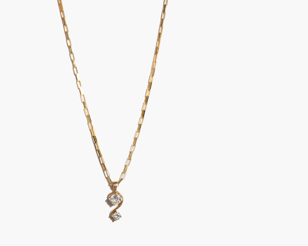 Sparkling 14k gold link chain with a sculptural 14k gold and diamond pendant that sits at the throat.