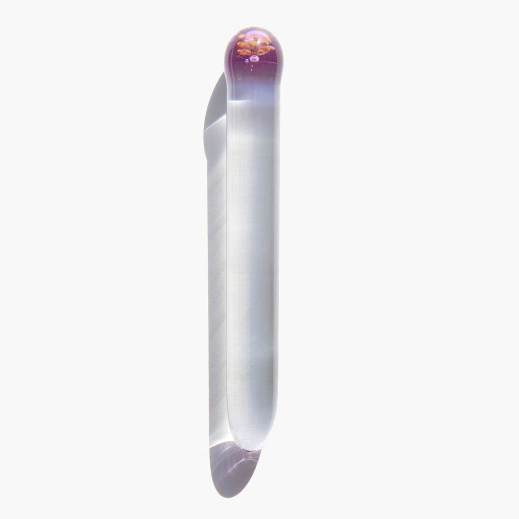 A Kindred Black original – hand blown glass sex toy, beautifully polished smooth and crystal clear with an ethereal sculpture tip. A minimal piece of pleasure art.