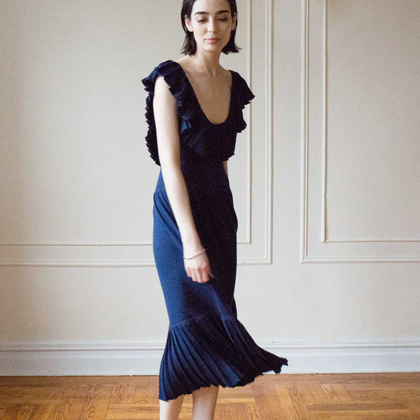 Sold Out  Hesperios Florence Eclipse Blue Neck Frill Dress $238 $475