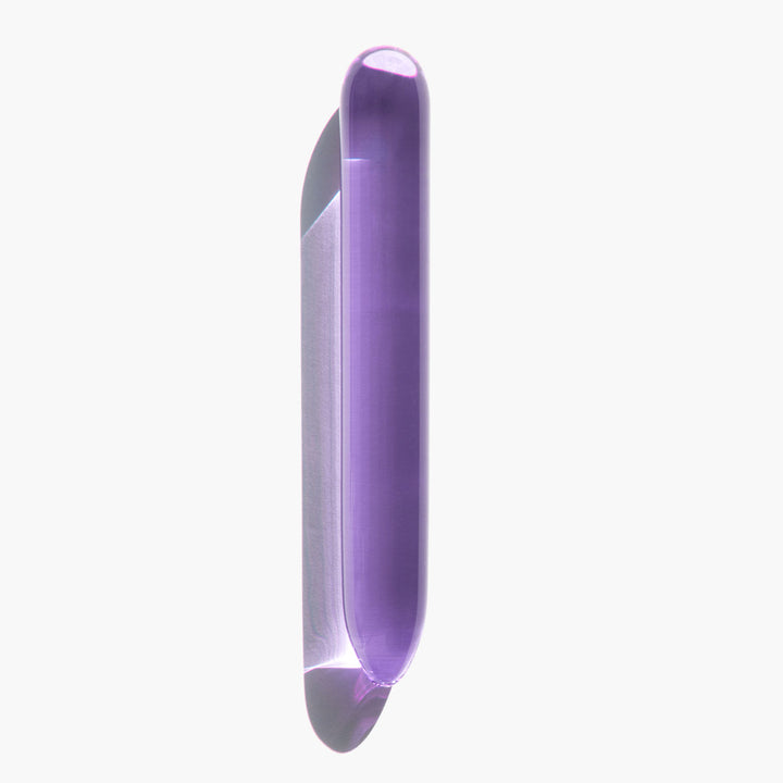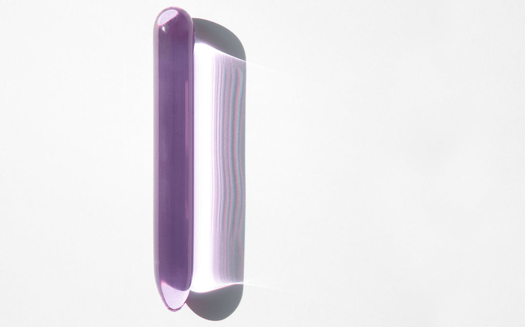 A Kindred Black original – hand blown glass sex toy, beautifully polished smooth, in a crystalline lavender hue. A minimal piece of pleasure art.