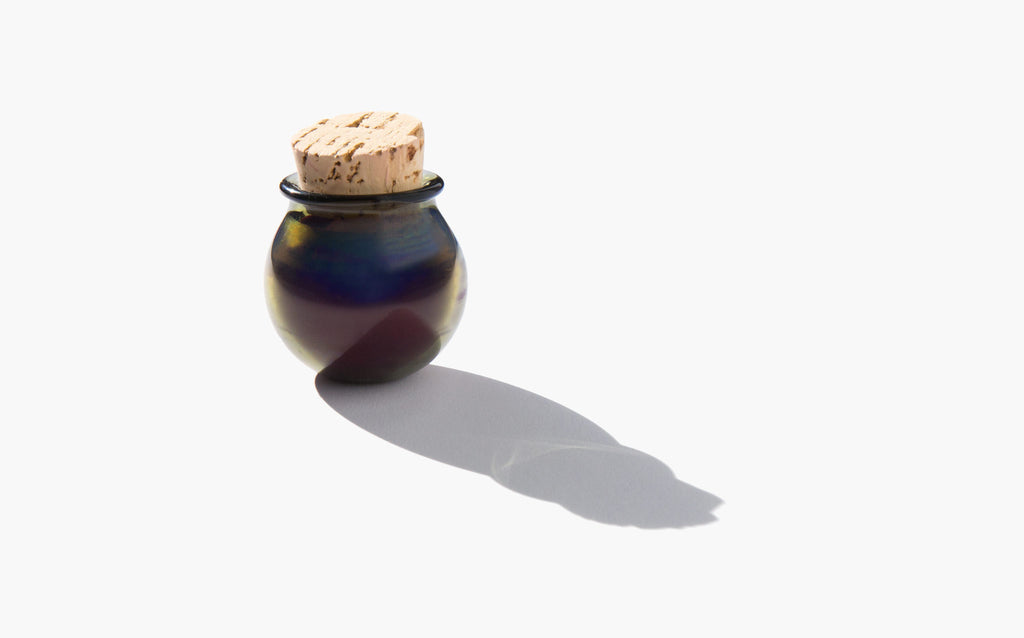 Each vessel is a distinctive work of art, hand blown by a master glass artisan in Colorado, and shipped using the ancient method of cork sealing. Handmade jars may vary slightly in size and shape.