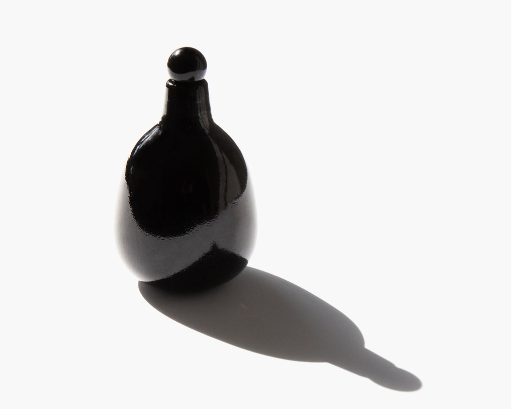 Each bottle is hand blown individually by a master glass artisan in North Carolina. Completely plastic free, the bottle is shipped wax and cork sealed.