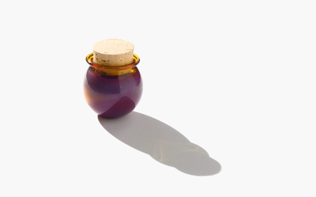 Each vessel is a distinctive work of art, hand blown by a master glass artisan in Colorado, and shipped using the ancient method of cork sealing. Handmade jars may vary slightly in size and shape.