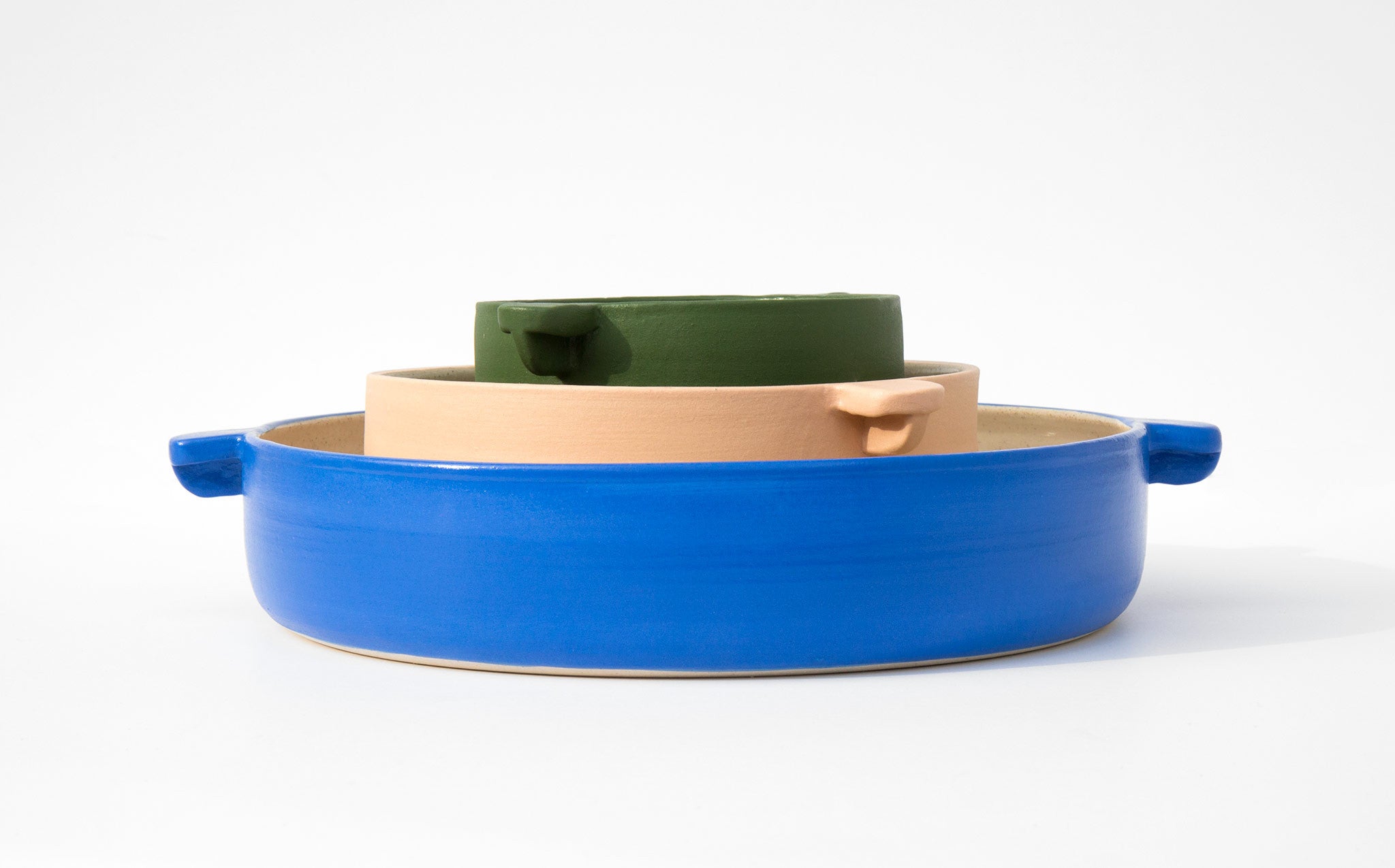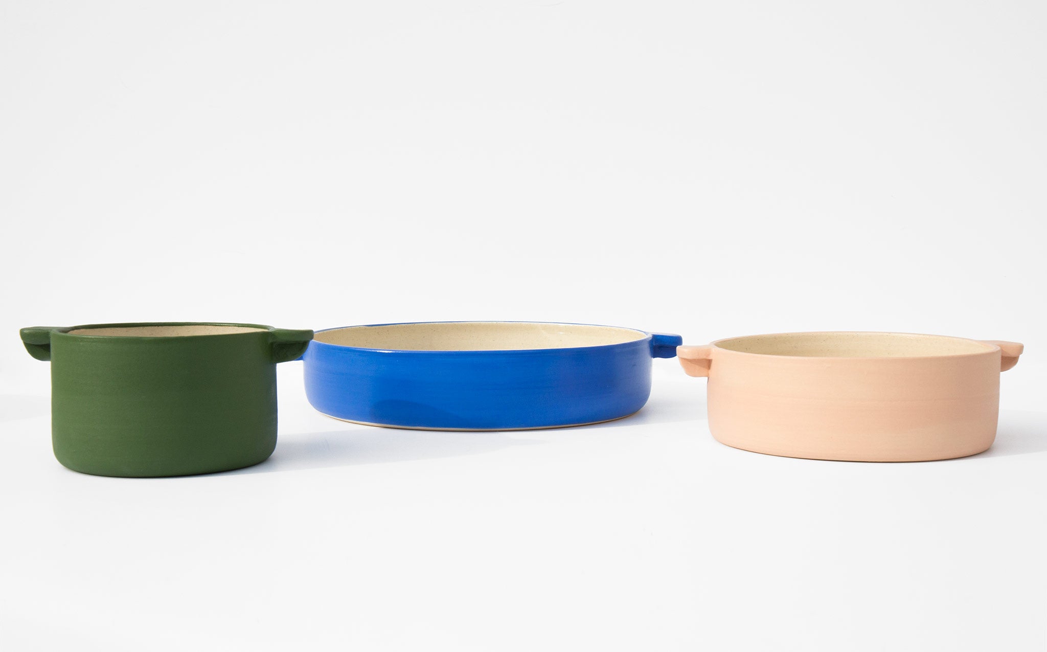 Forrest Lewinger is the Brooklyn ceramicist behind Workaday Handmade, a collection of one-of-a-kind hand-thrown and painted cups, bowls, and vases. Lewinger moved to NYC from Georgia in 2011 and found a job as a potter and production assistant for a high-end ceramicist. A few months in he began dedicating his lunch hour to creating one original piece of artwork per day—clay pieces, glazed a deep blue, that he called lunch pots. Now a full time ceramicist in his own right, Lewinger creates a full collection of vessels and home goods glazed deep, bright colors and with contemporary embellishments like confetti dots, marbling, tortoiseshell and allover geometrics.