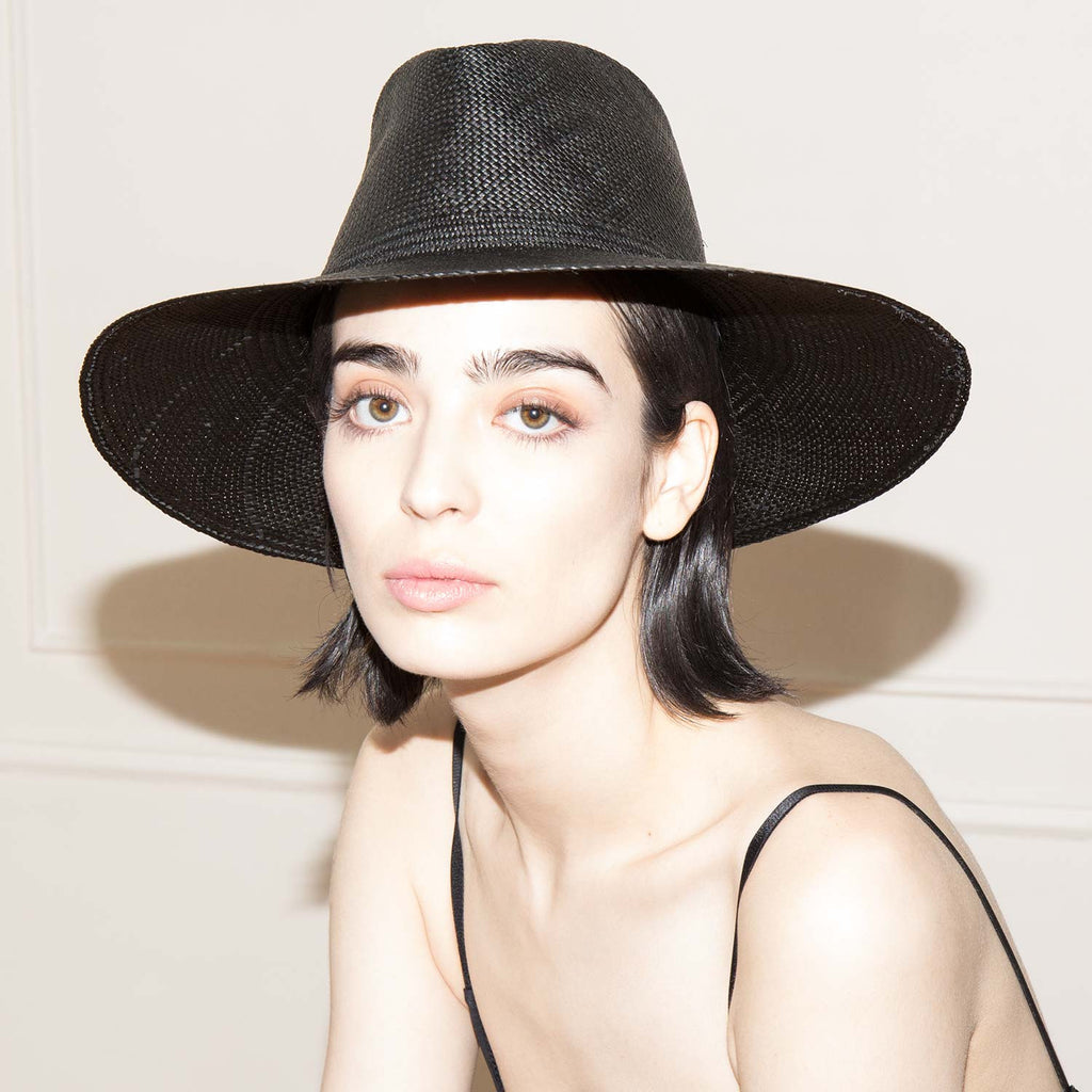 Classic and chic black straw hat with a slightly wider brim. The Wide Brim Pinch Panama Hat is hand shaped in the Clyde studio. This item is FINAL SALE.