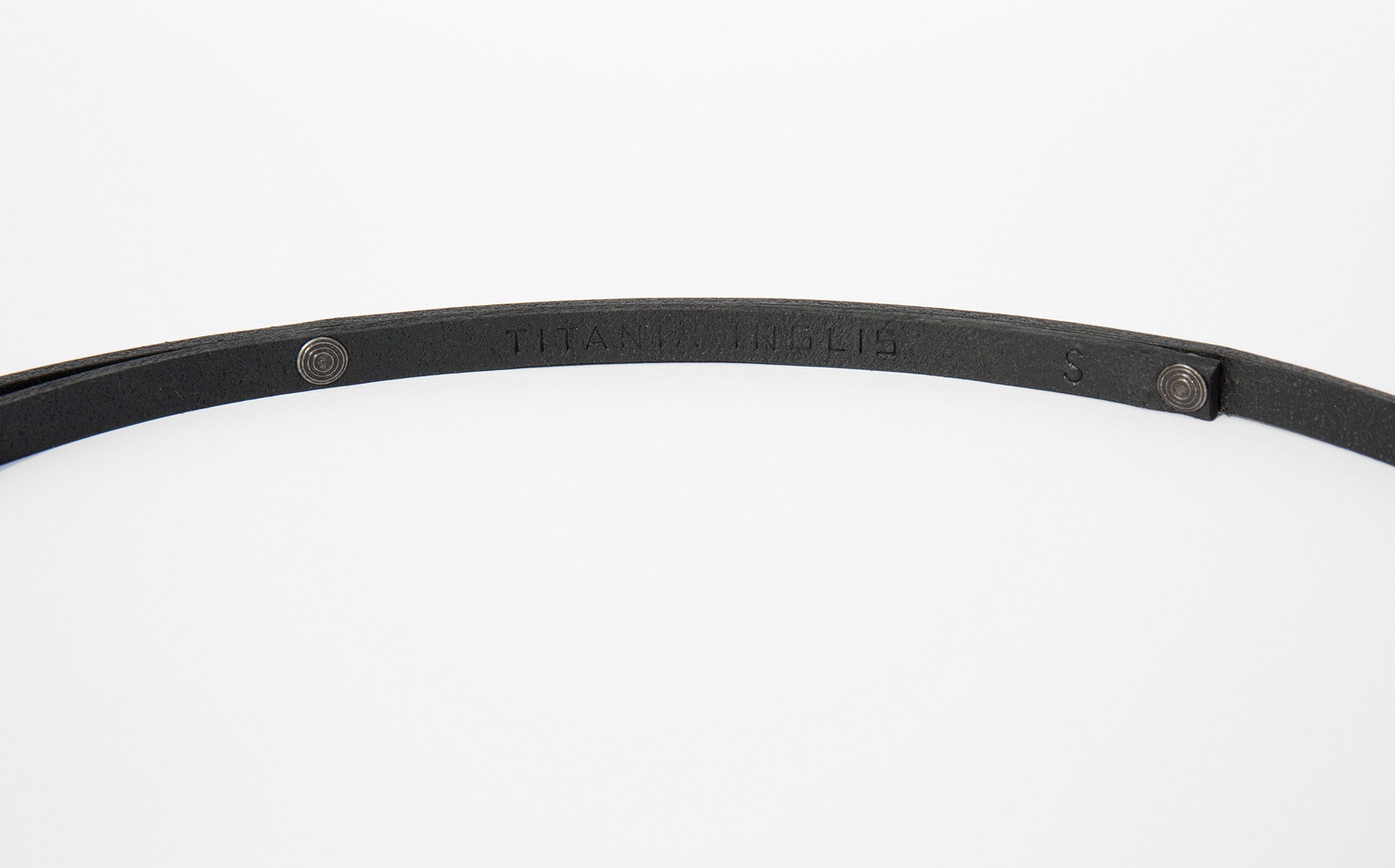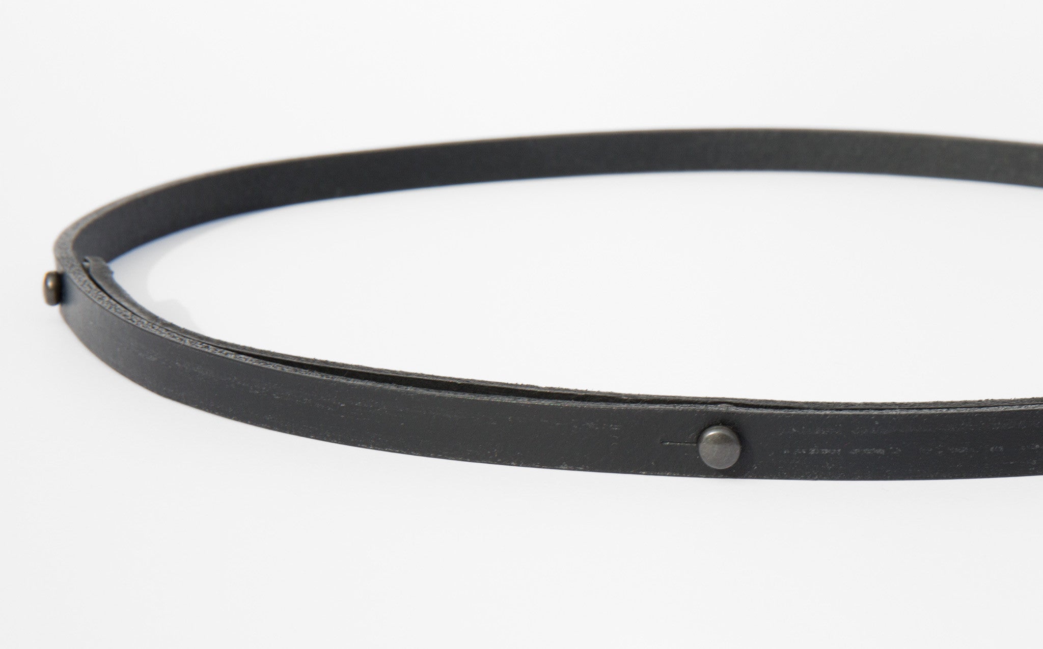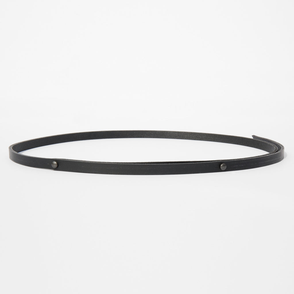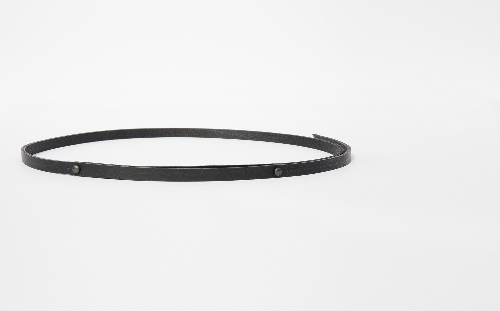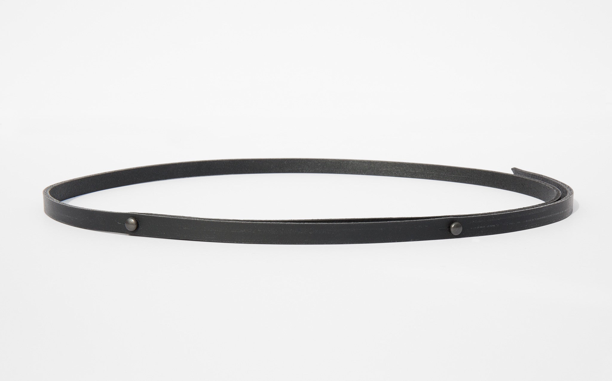 Minimal belt with stud closure. Made with aniline dyed, veg-tanned cowhide and hand cut, burnished and assembled in Titania's Brooklyn atelier.