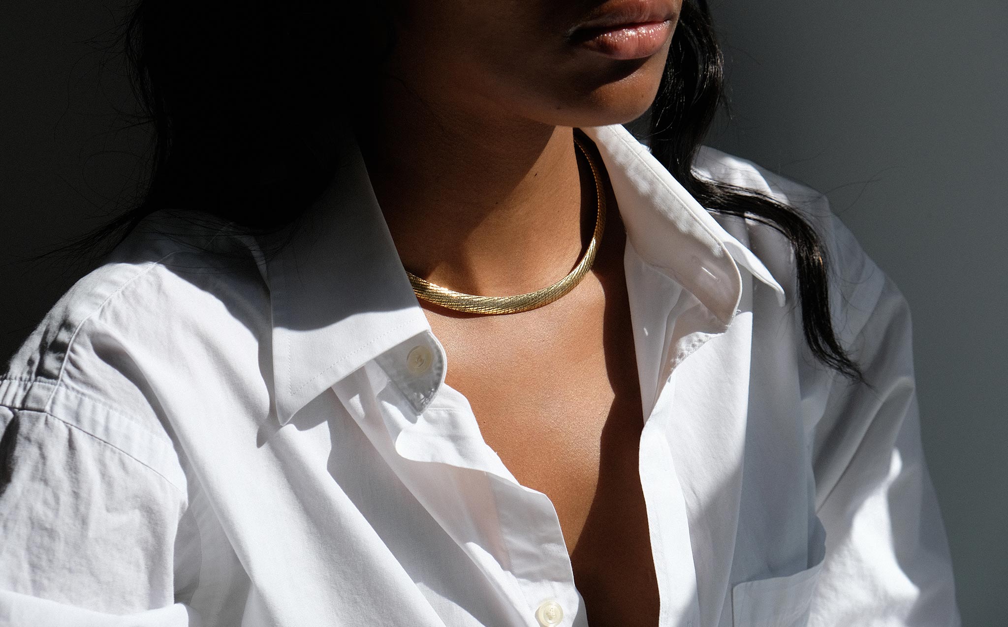 Gold plated sterling silver collar. An amazing piece on its own and layers beautifully with chains and charms.