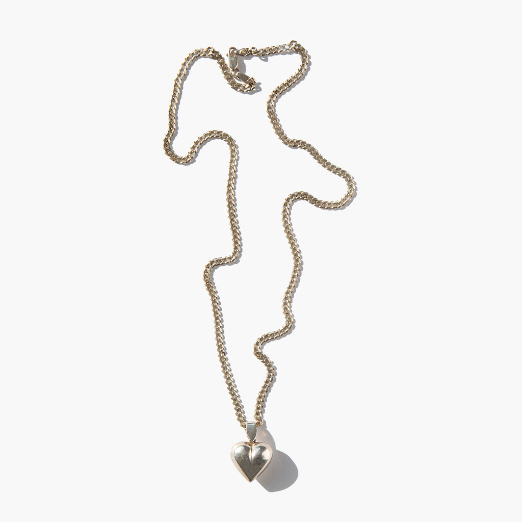 Italian sterling silver curb link chain with a Mexican sterling silver heart pendant.