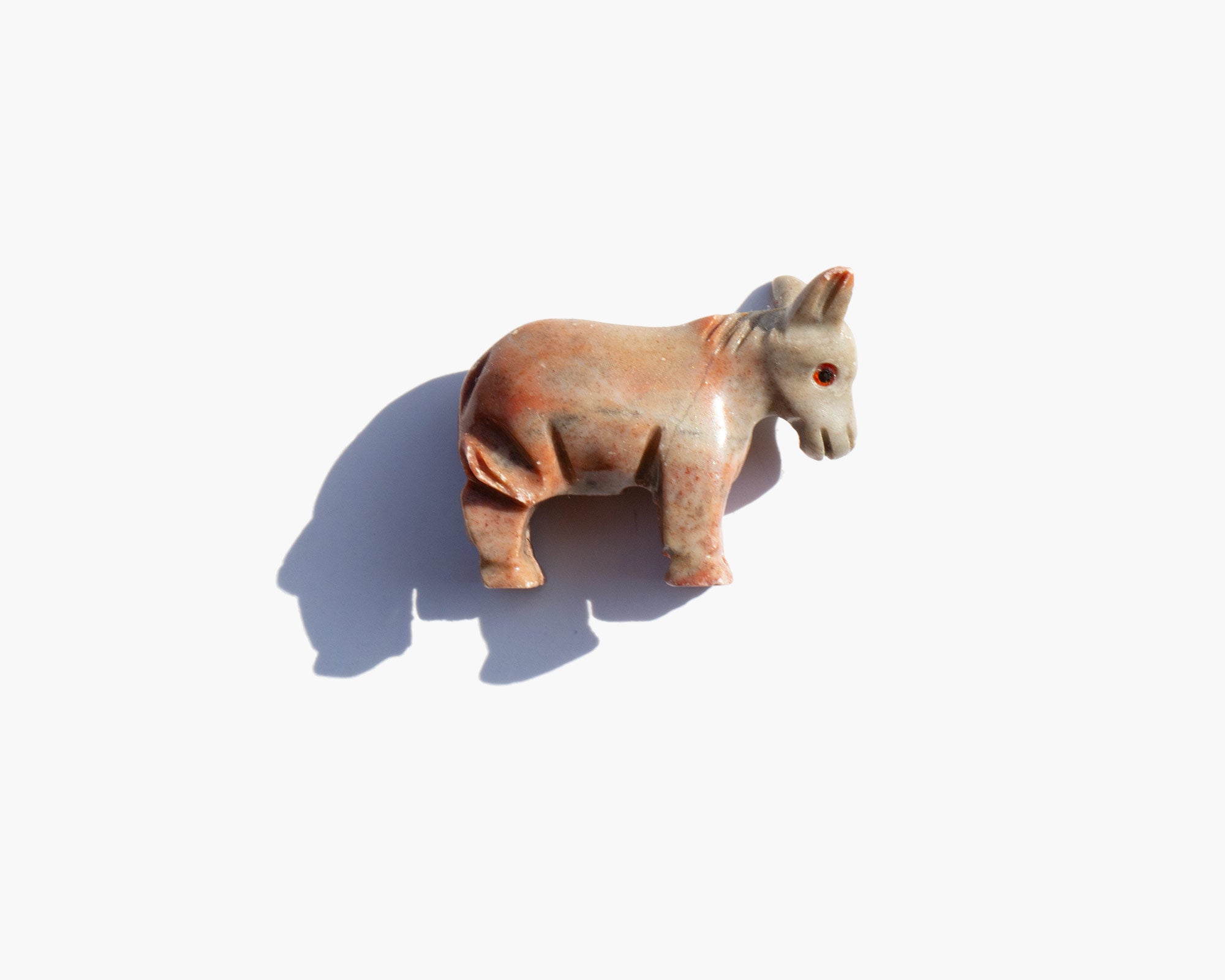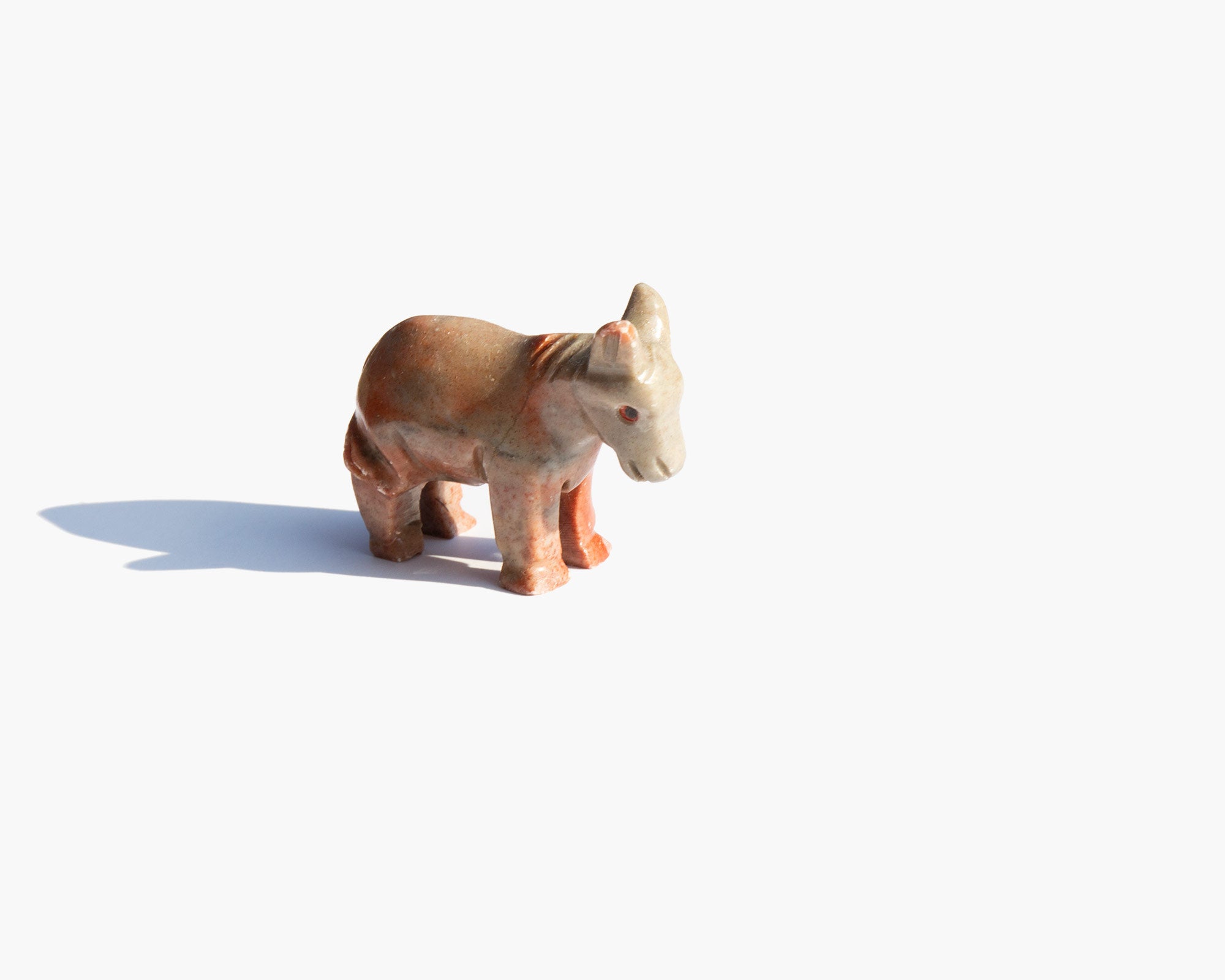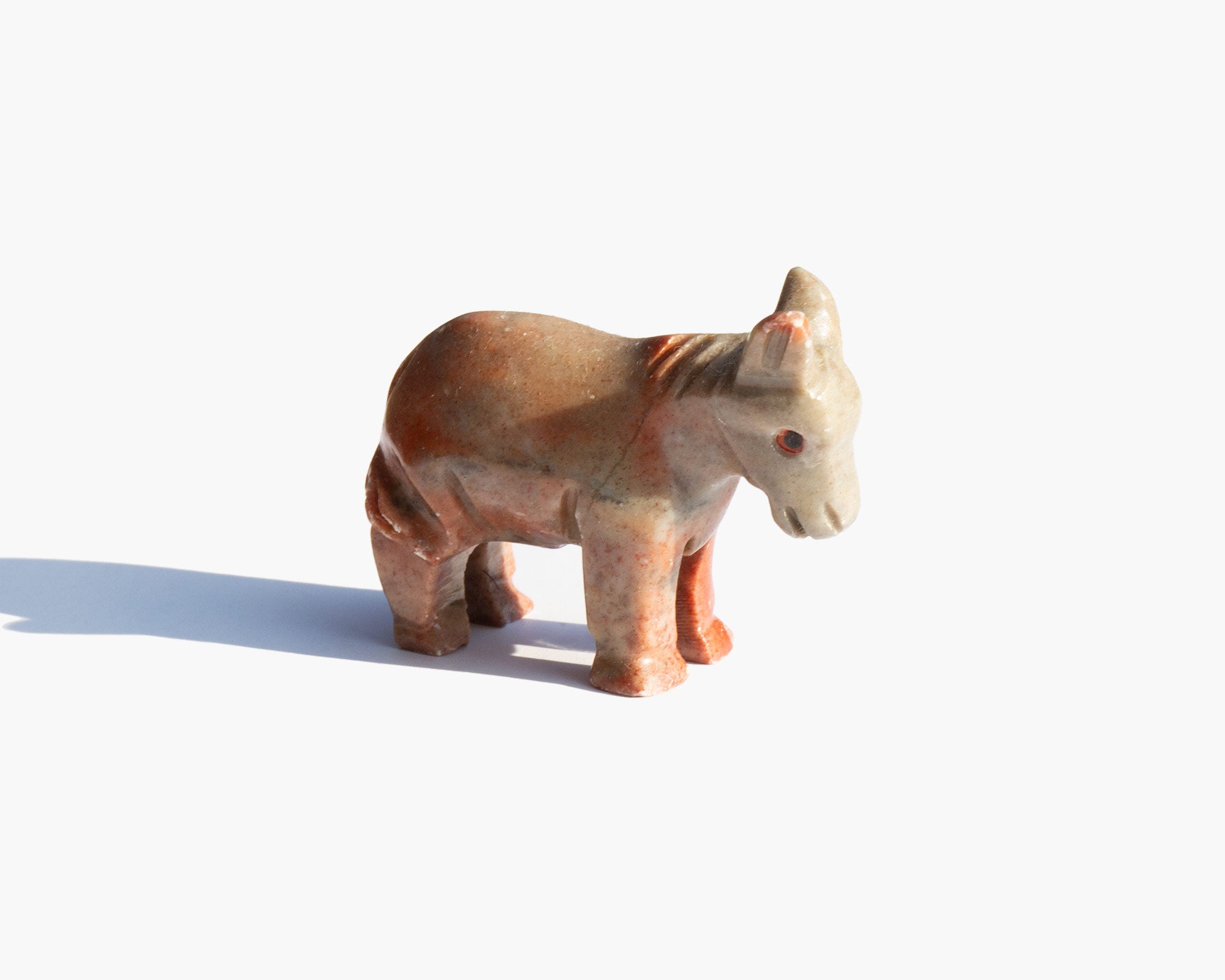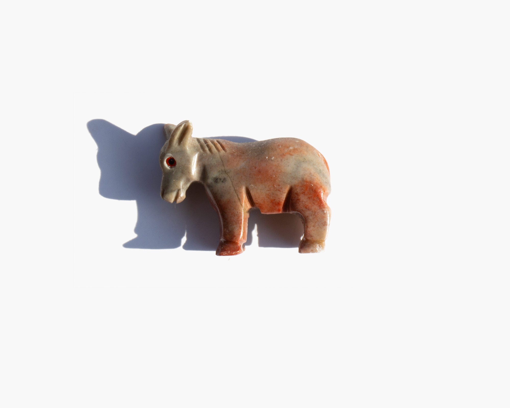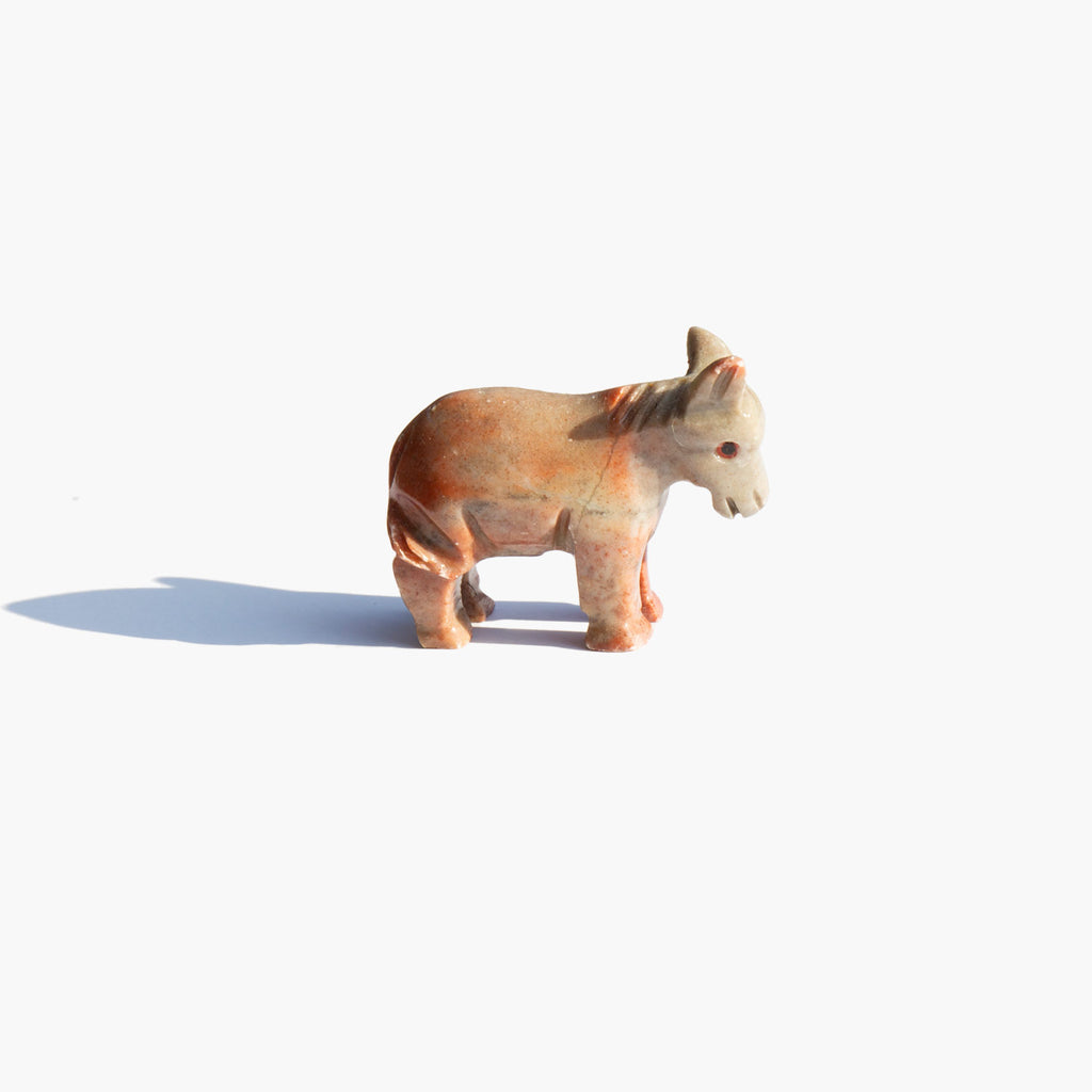 A miniature carved jasper donkey, a stalwart animal that is a symbol of determination and a iron-strong will.