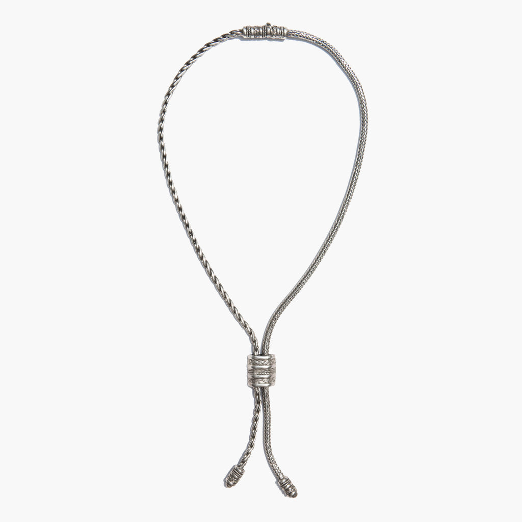 Weighty, southwestern sterling silver bolo-style necklace with multi-strand braiding detail.