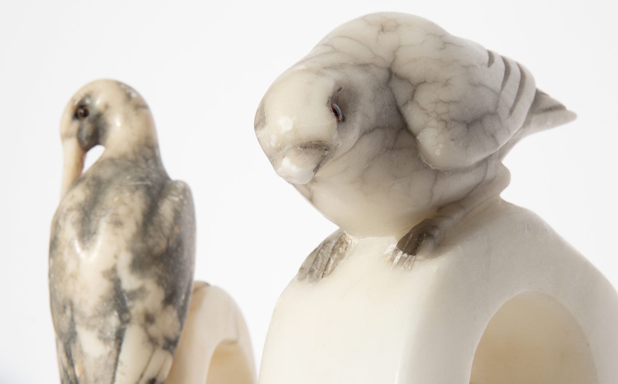 Set is vintage and does show signs of wear - there are some spots of damage to the alabaster and one of the birds has a slightly shortened beak.