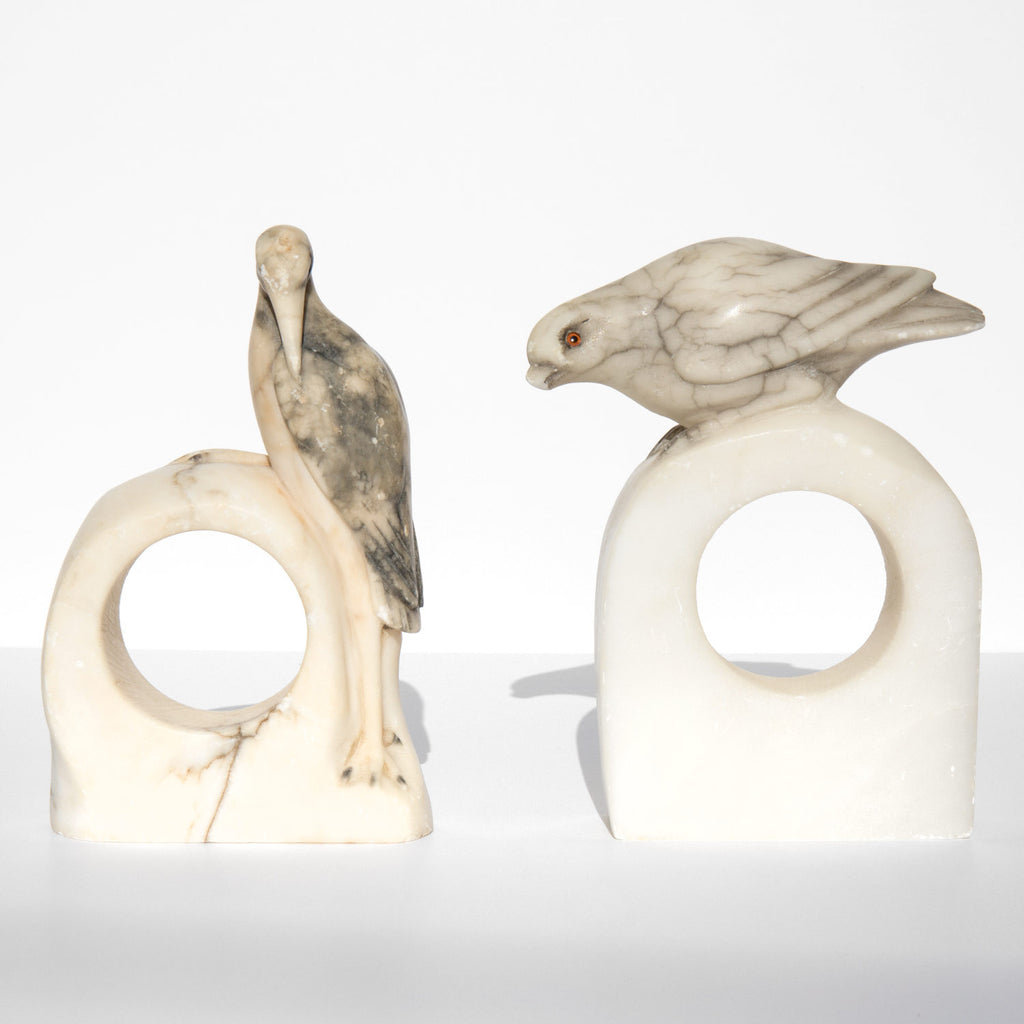 Vintage 1950's Italian alabaster bird bookends.