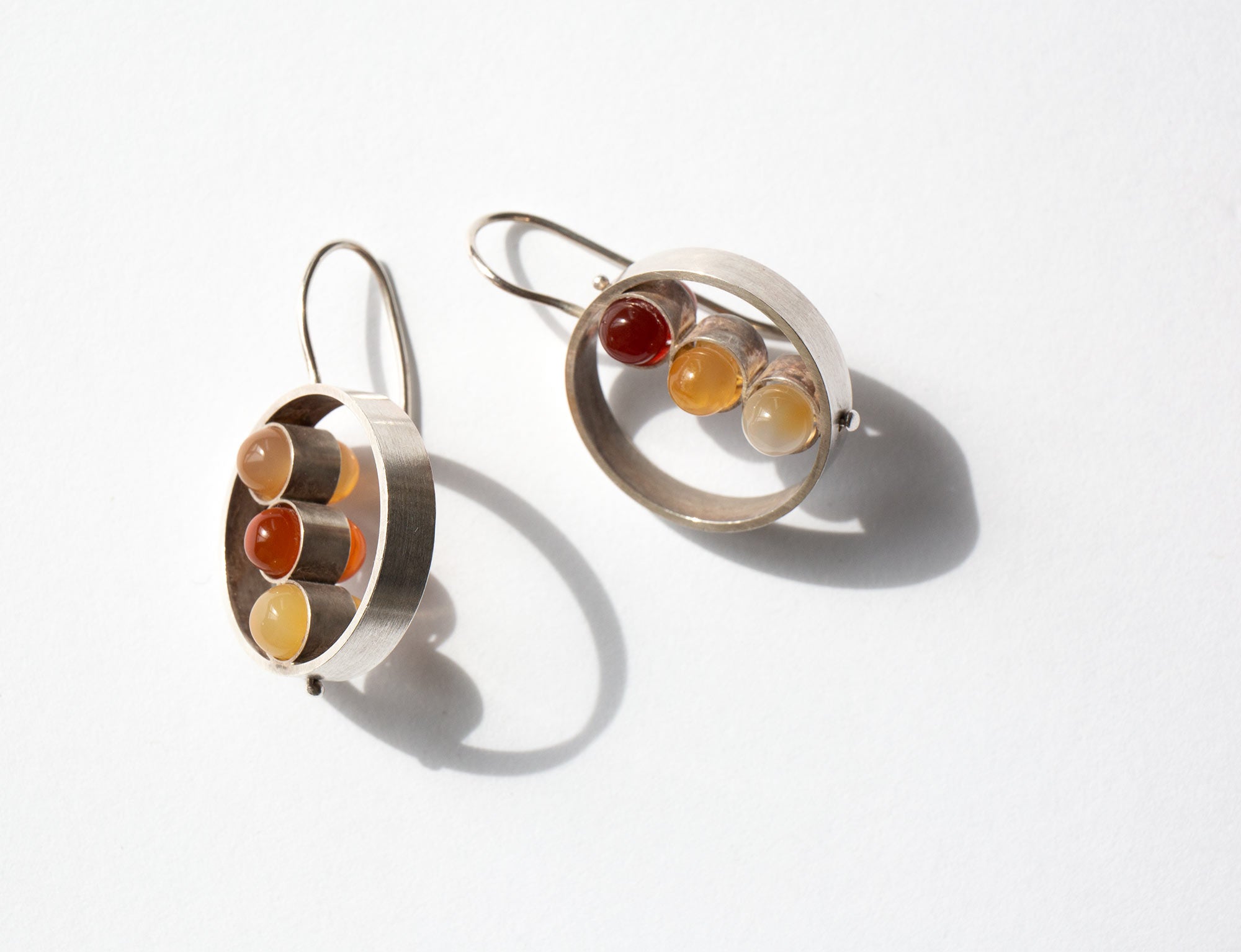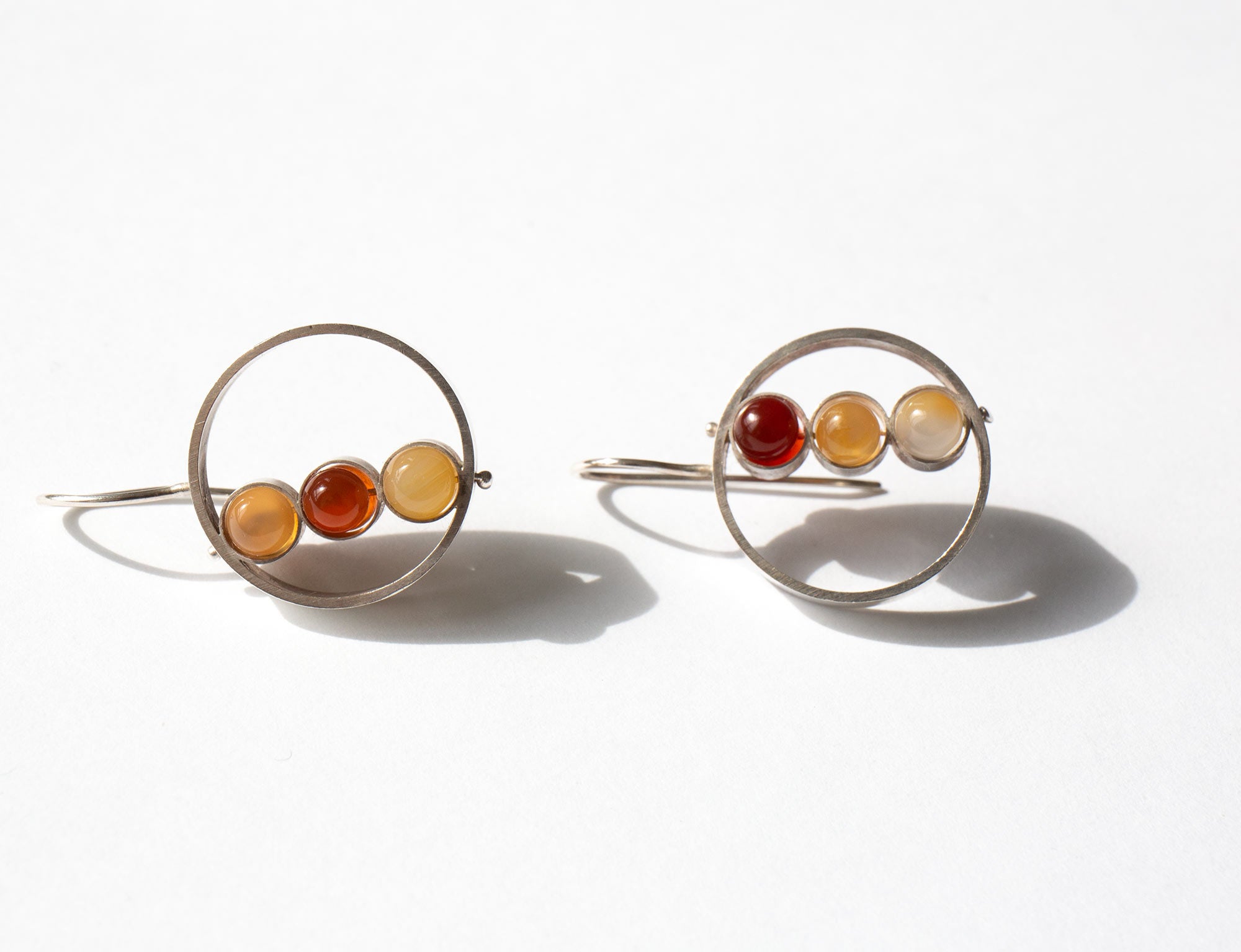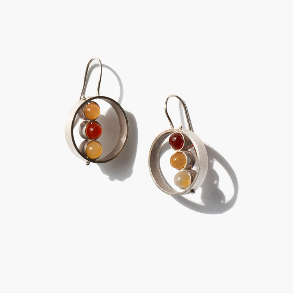 Earrings with earth-toned stones set in sterling silver.