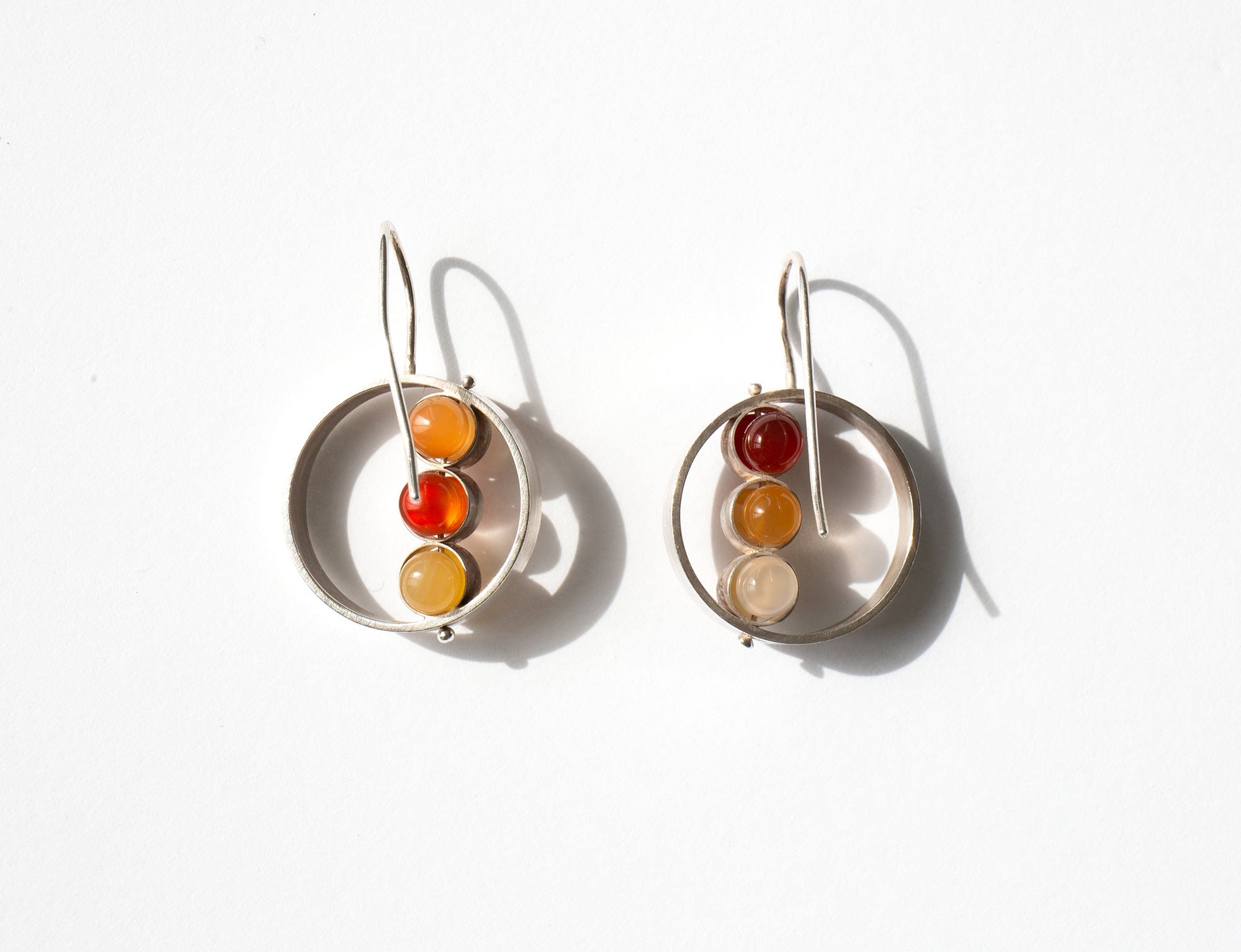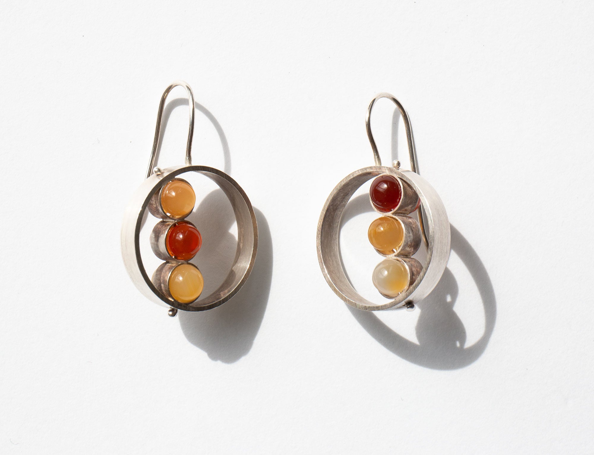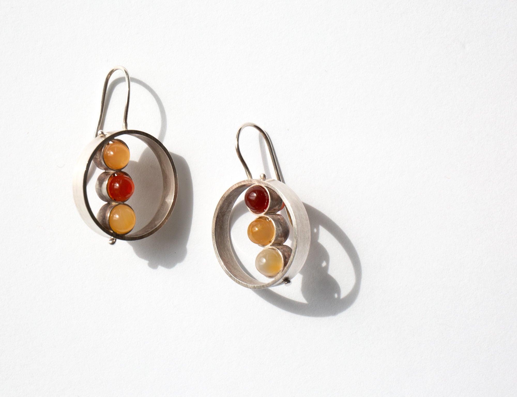 Earrings with earth-toned stones set in sterling silver.