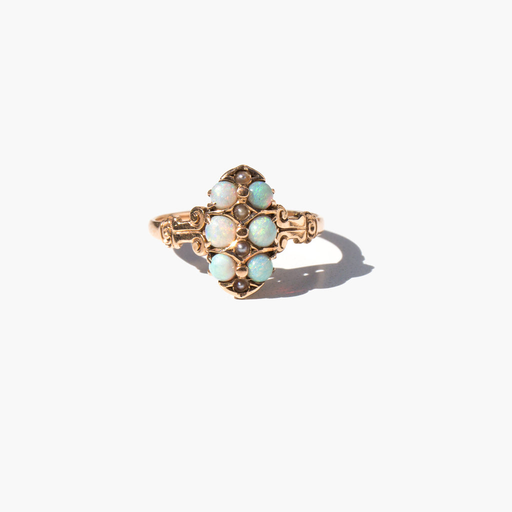 Pretty pastel opals set in 10k gold. Opals were treasured and worn by ancient monarchs not only for their beauty but for their purported protective powers. Set into crowns and worn as necklaces, opals were said to ward off evil and nightmares, to protect the eyesight, and to aid in the recollection of past lives.