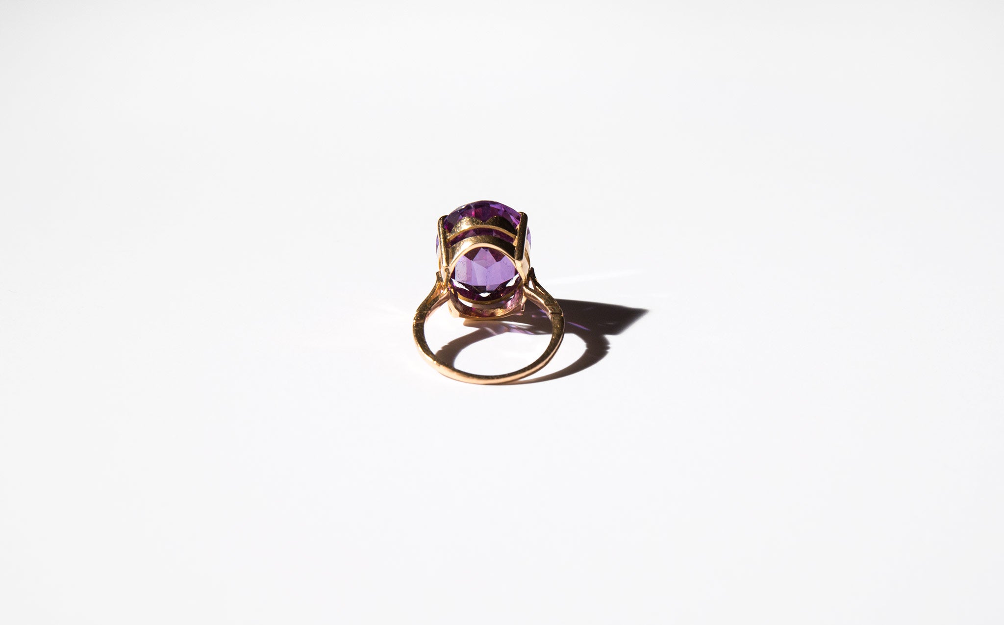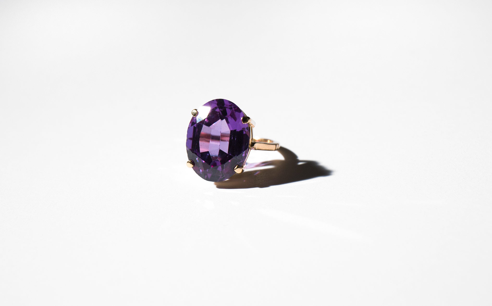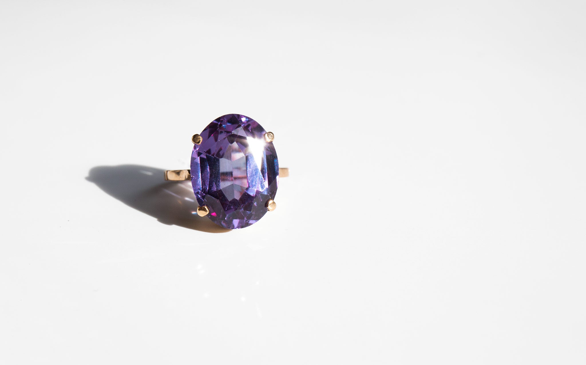 A faceted Alexandrite with lovely shades of blue and violet set in a stunning 18k gold setting.