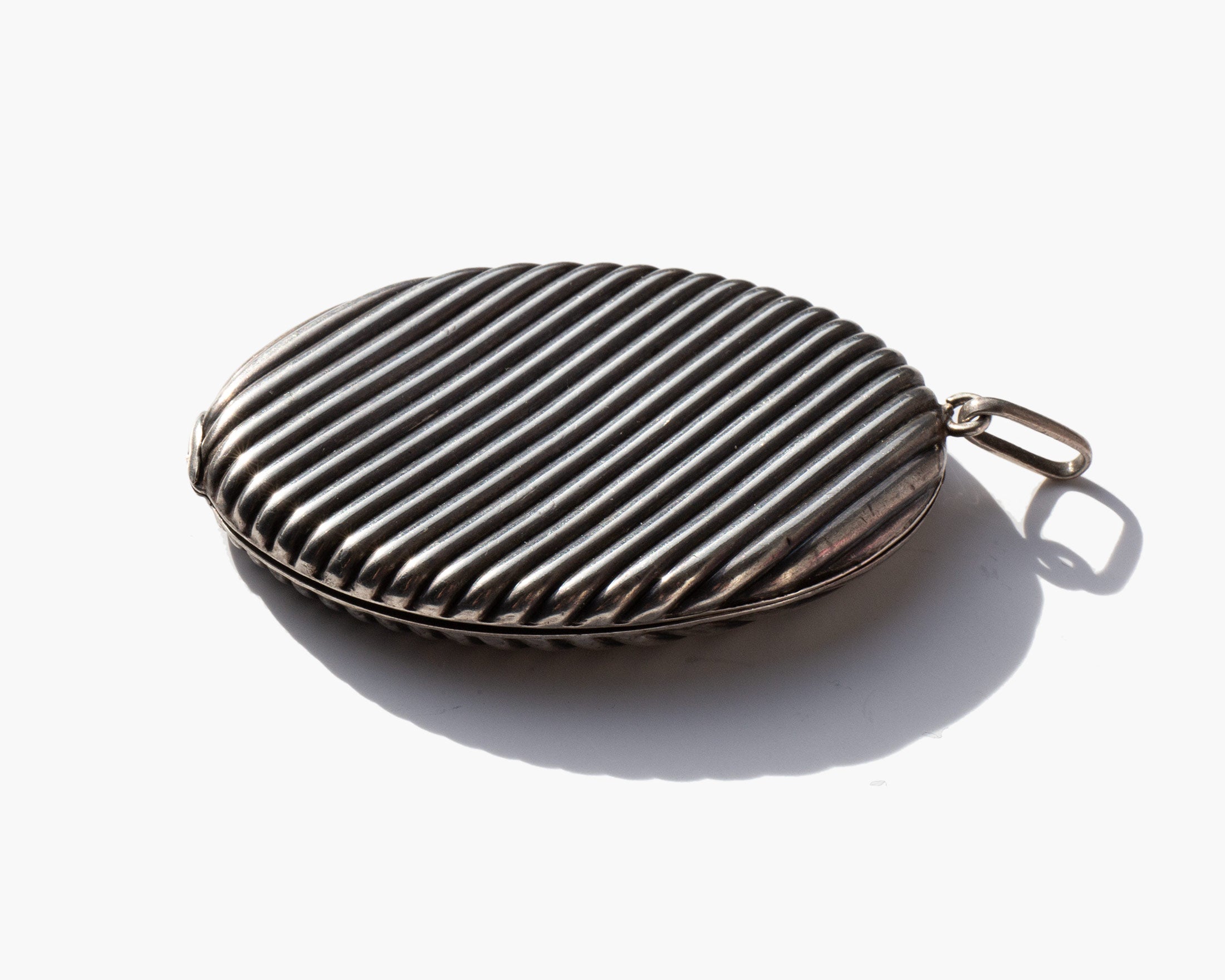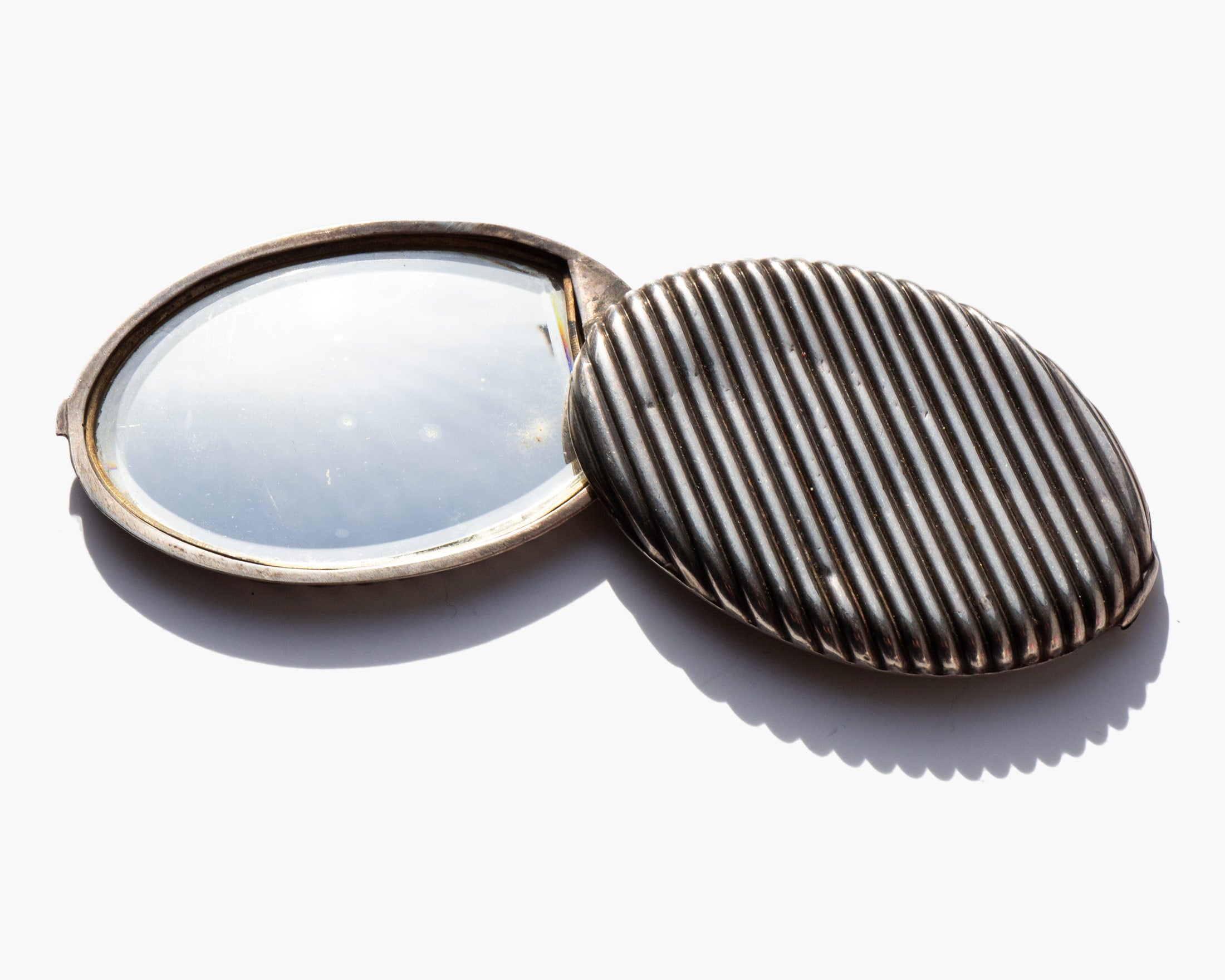 Antique Victorian hallmarked French fisheye mirror pendant that opens like a locket and can be hung or worn. Circa 1900.