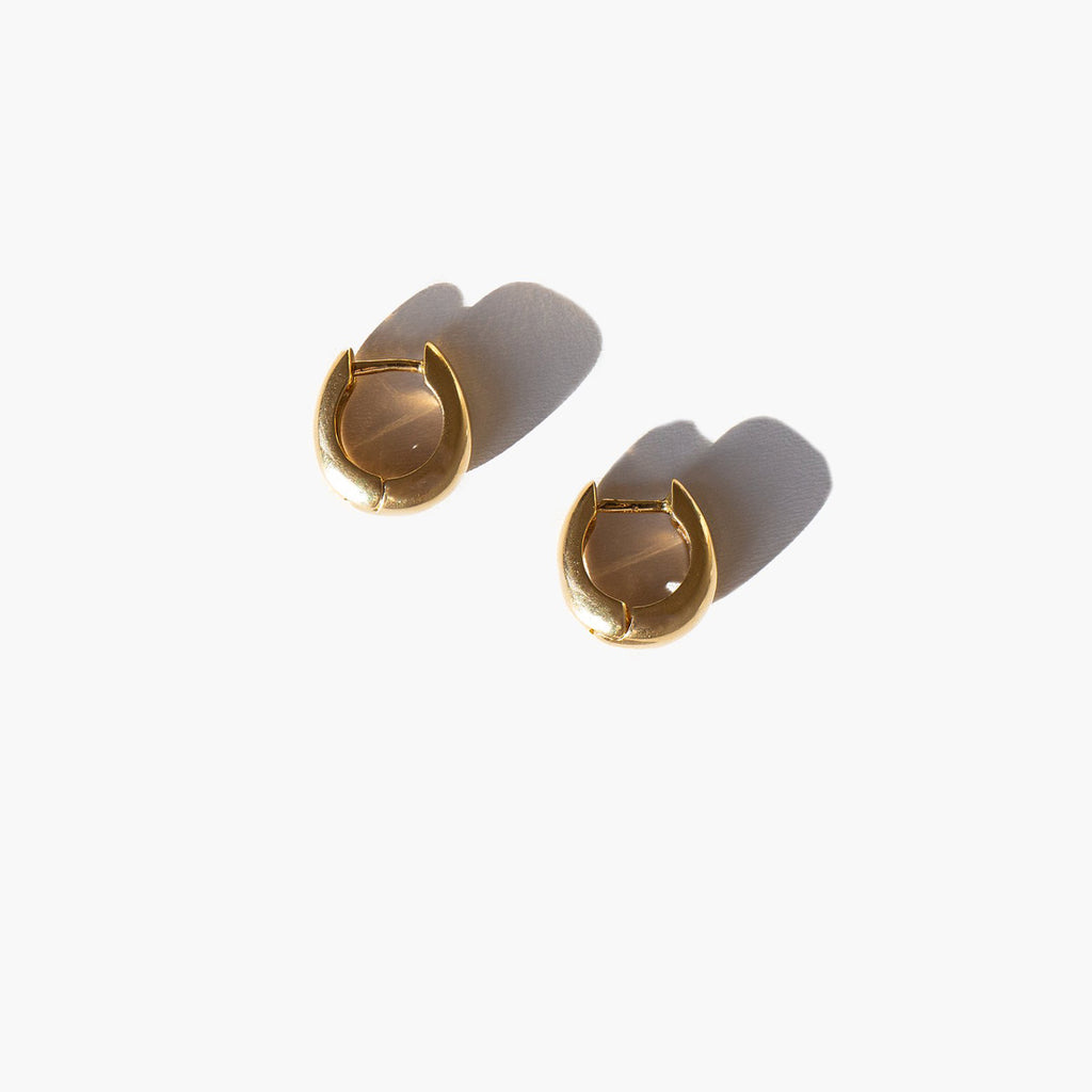 Charming and classic 14k gold huggie hoop earrings.