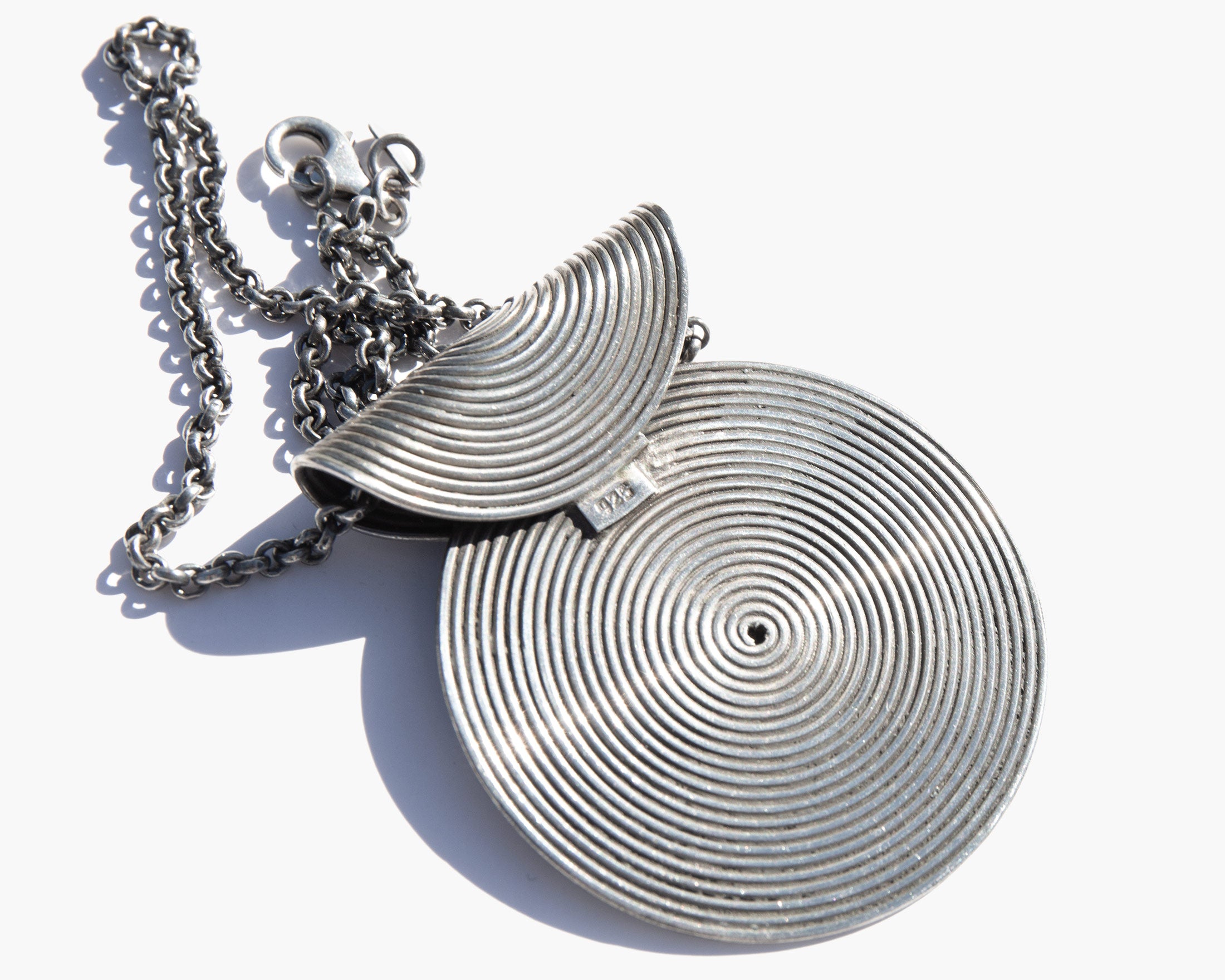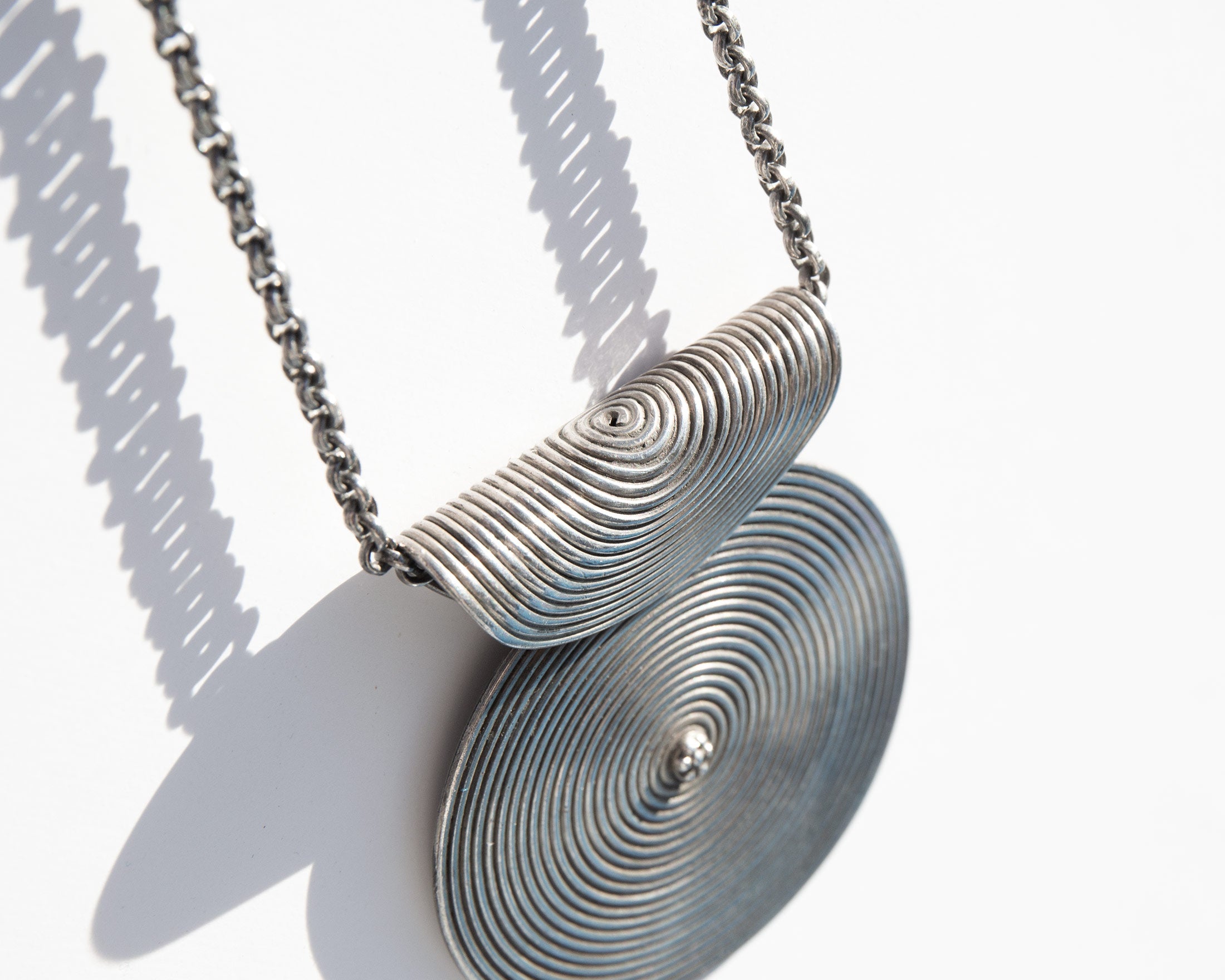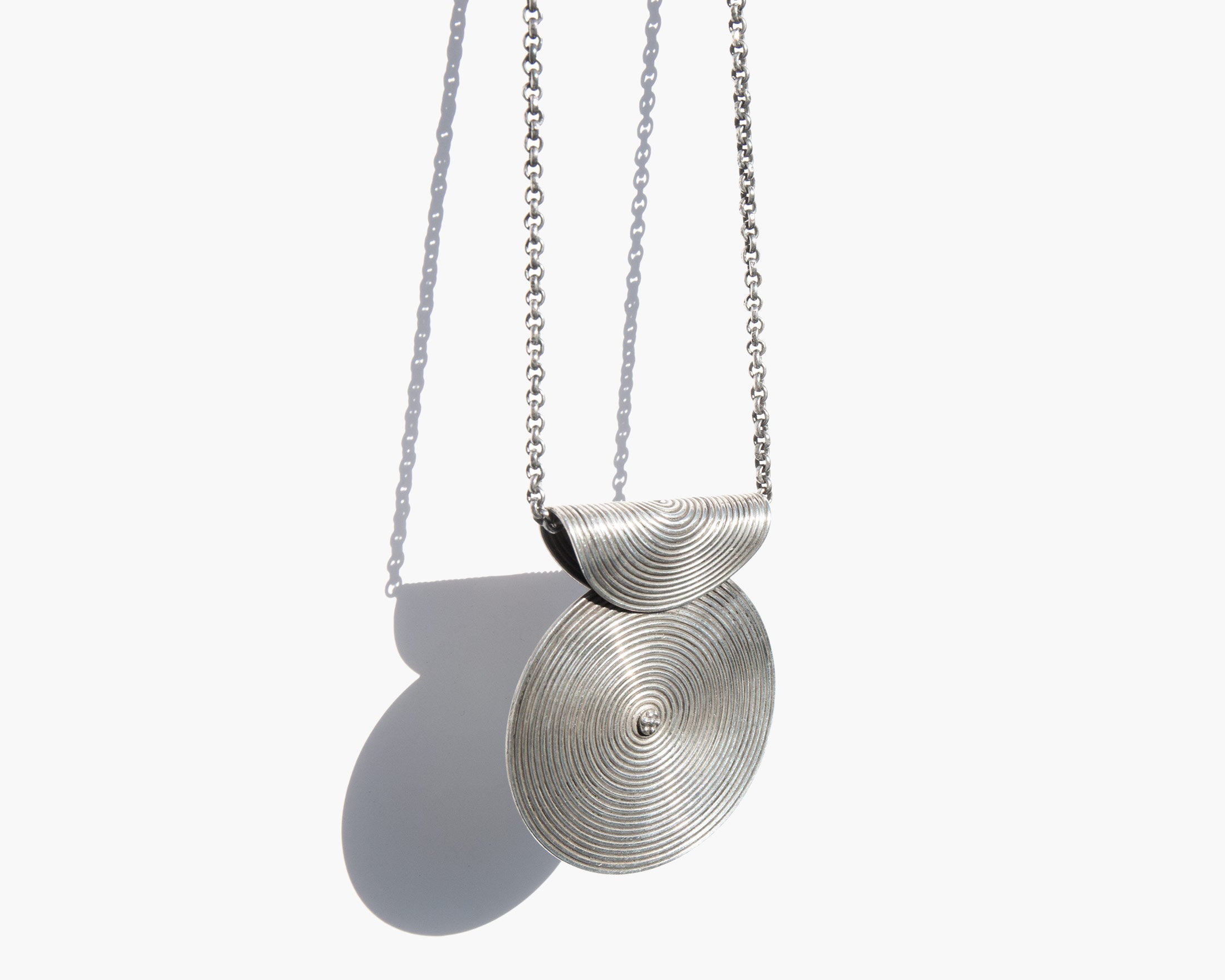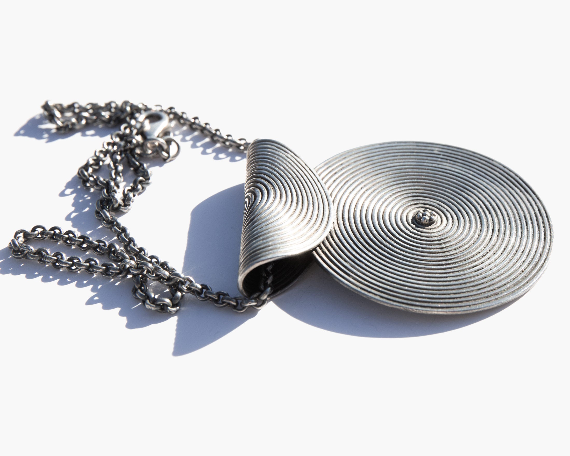 Sterling silver spiral slide pendant on a sterling silver round link chain.