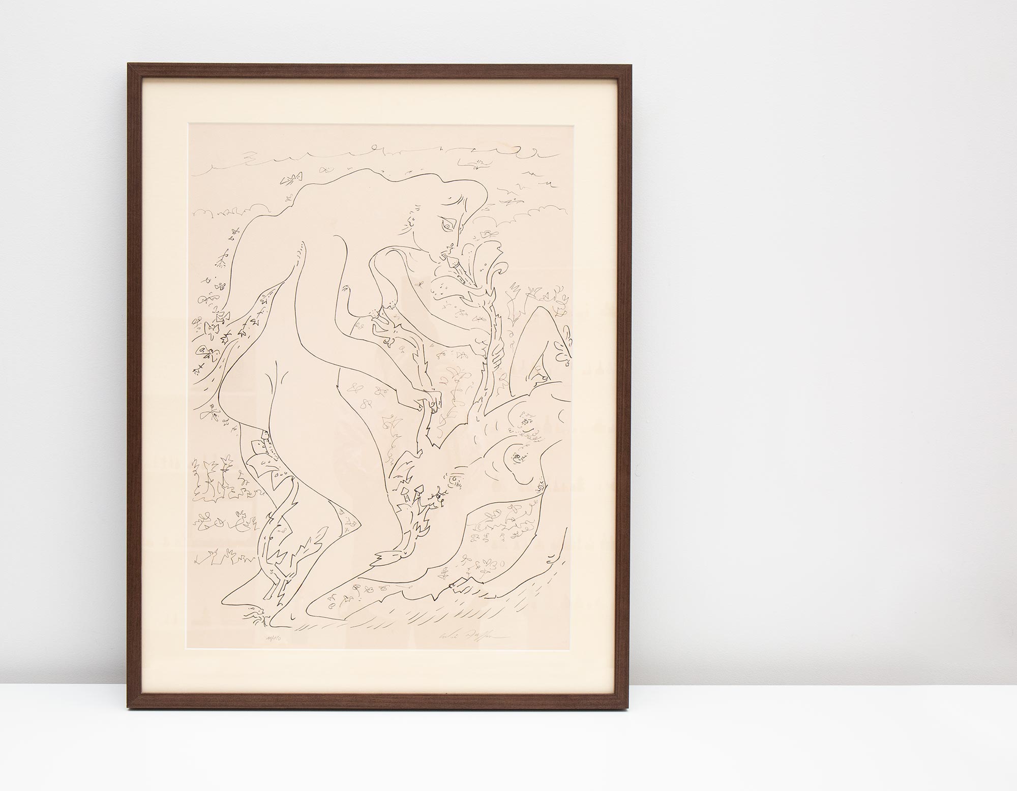 Signed and numbered, limited edition lithograph by the French surrealist André Masson (1896-1987). This piece is part of his series "Terre Érotique". Lithograph is professionally framed in a stained hardwood with a textured cotton acid-free mat.