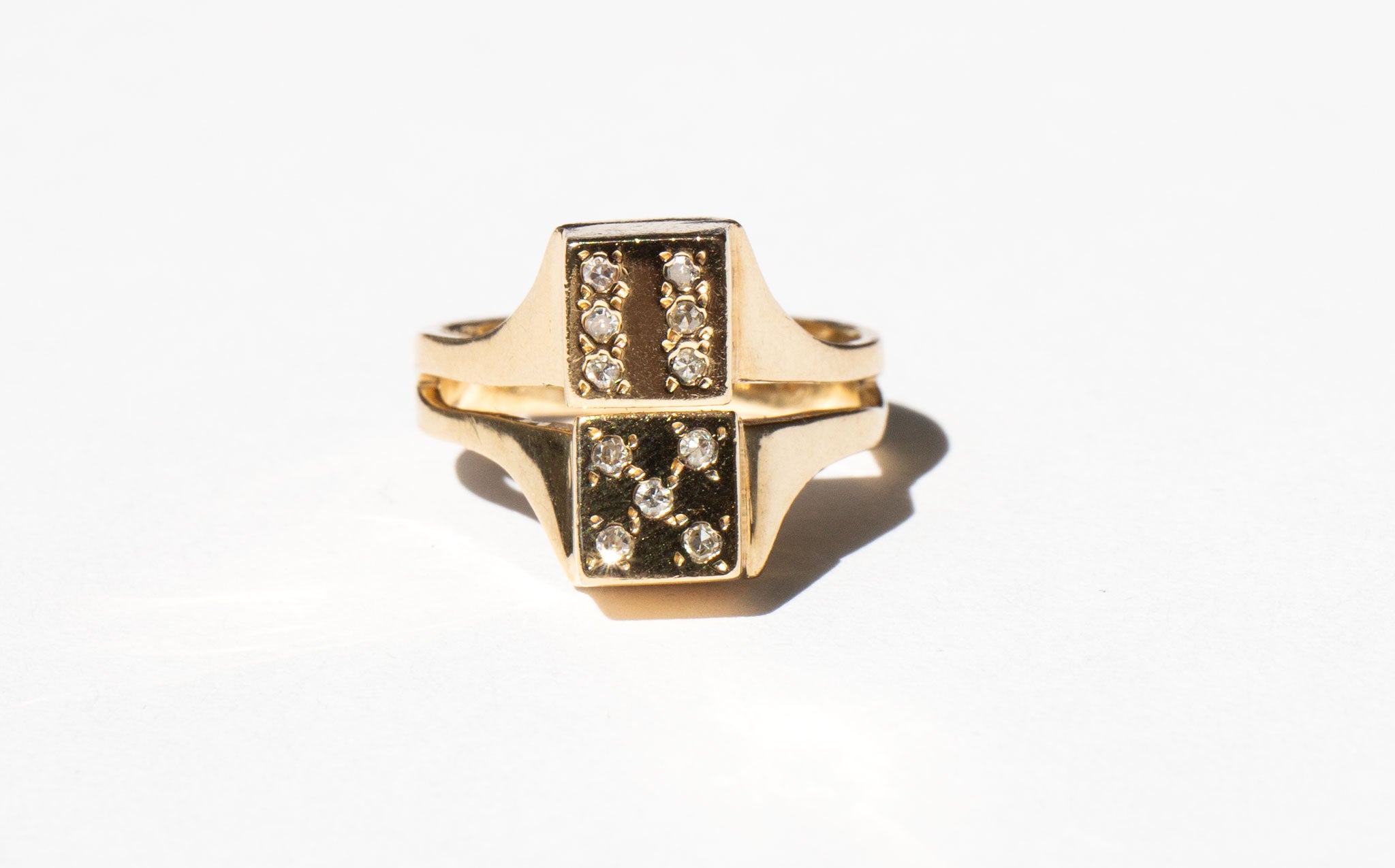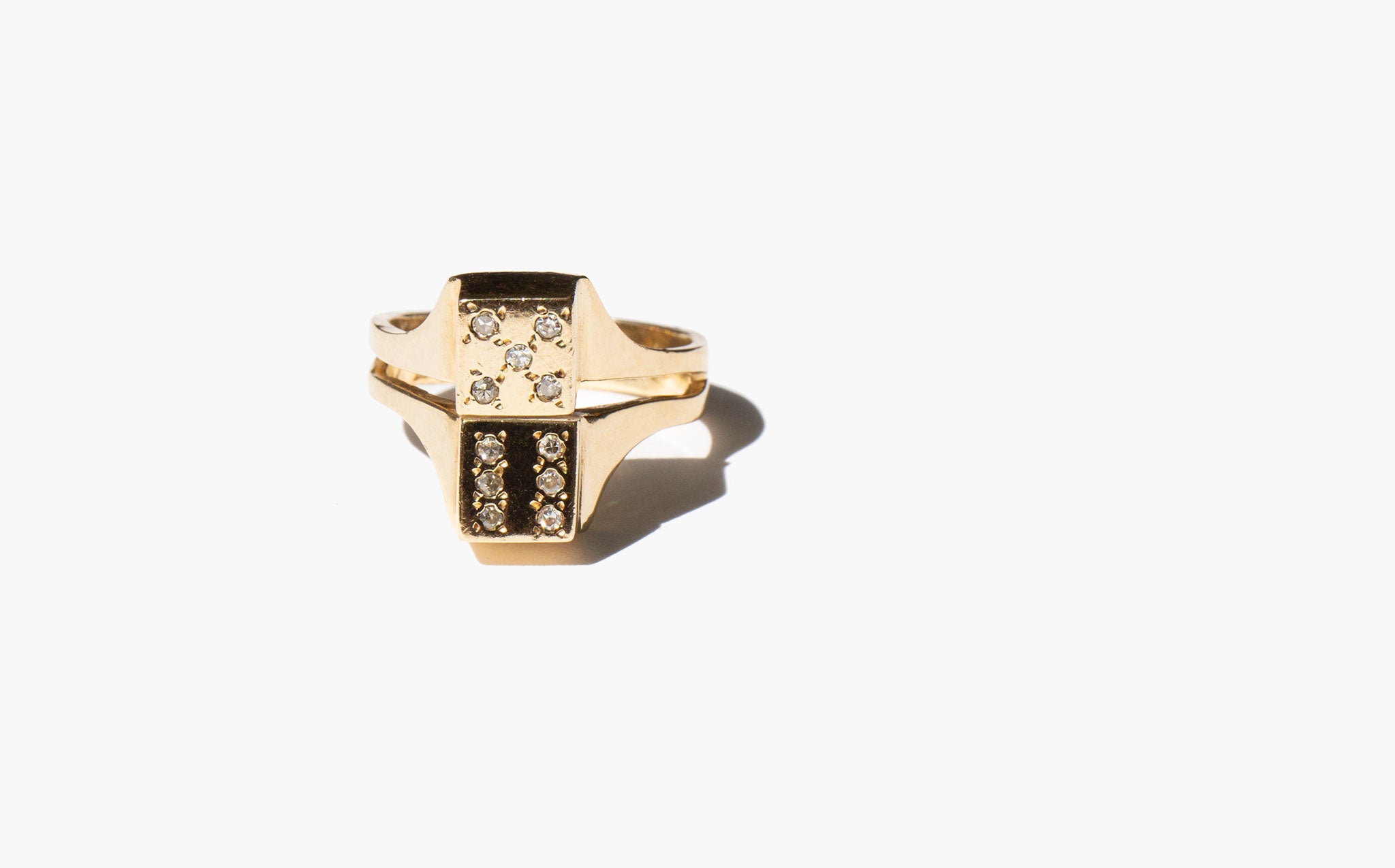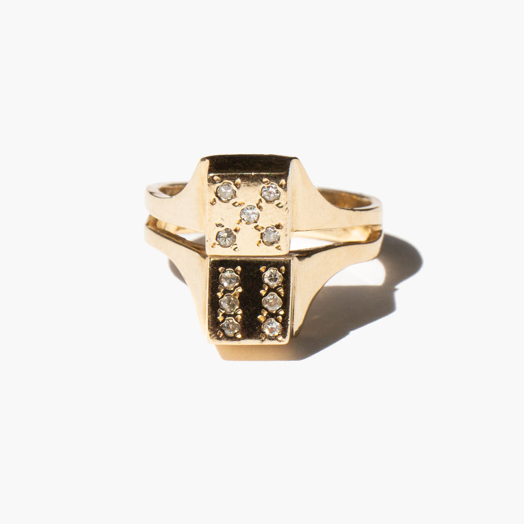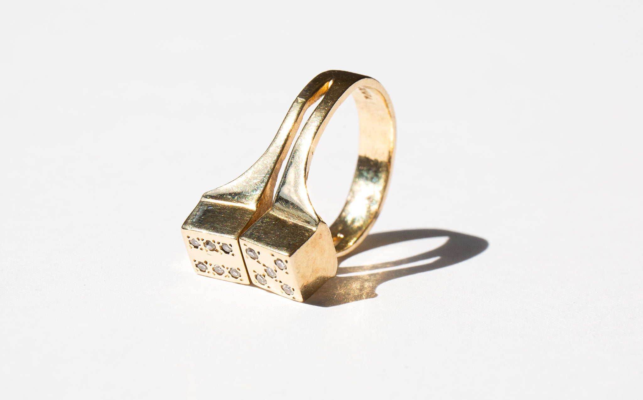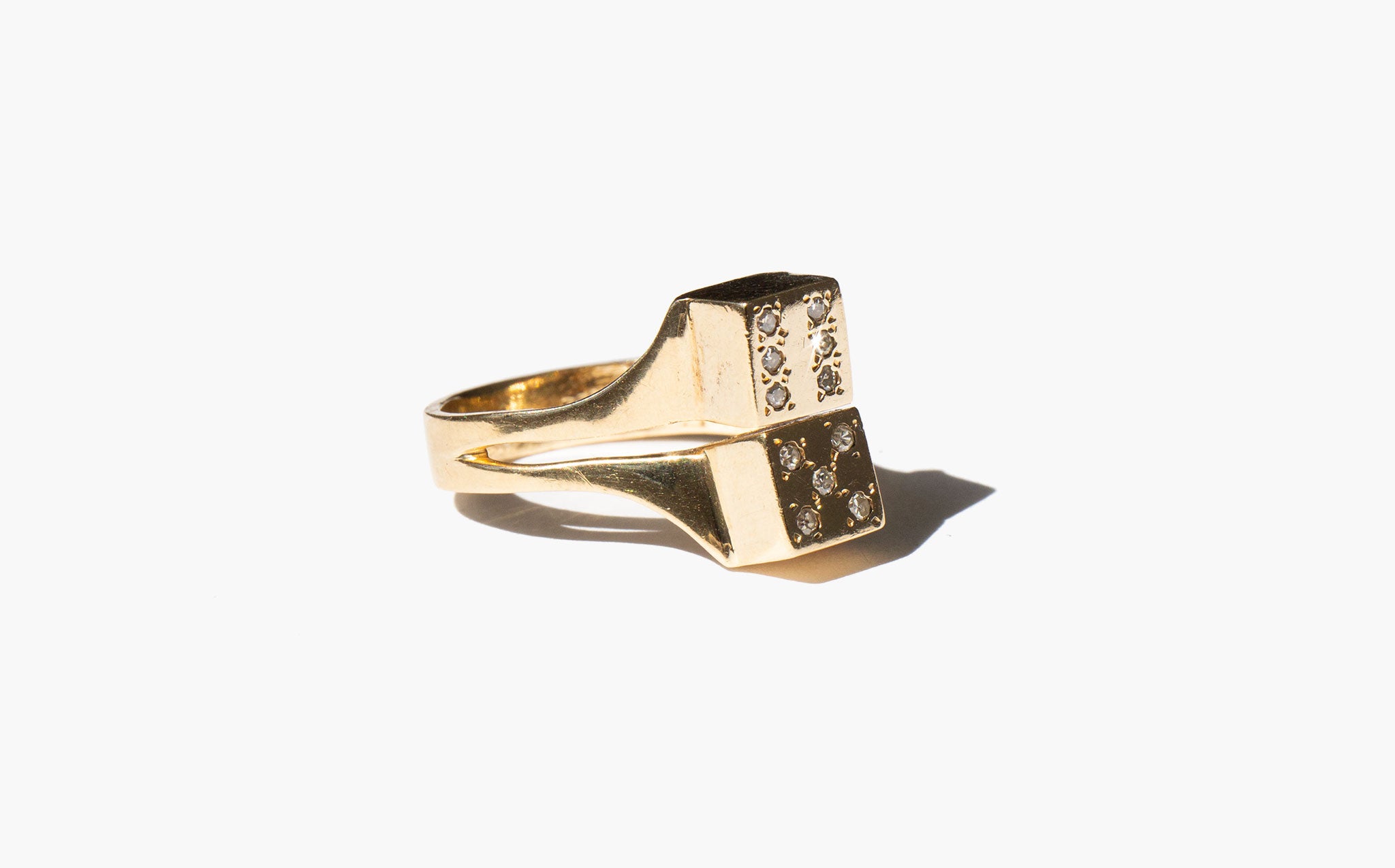 Diamond embellished 14k gold dice ring. Known to some as the "angel digit", the number 11 is associated with spiritual awakening, enlightenment, and visionary leadership.