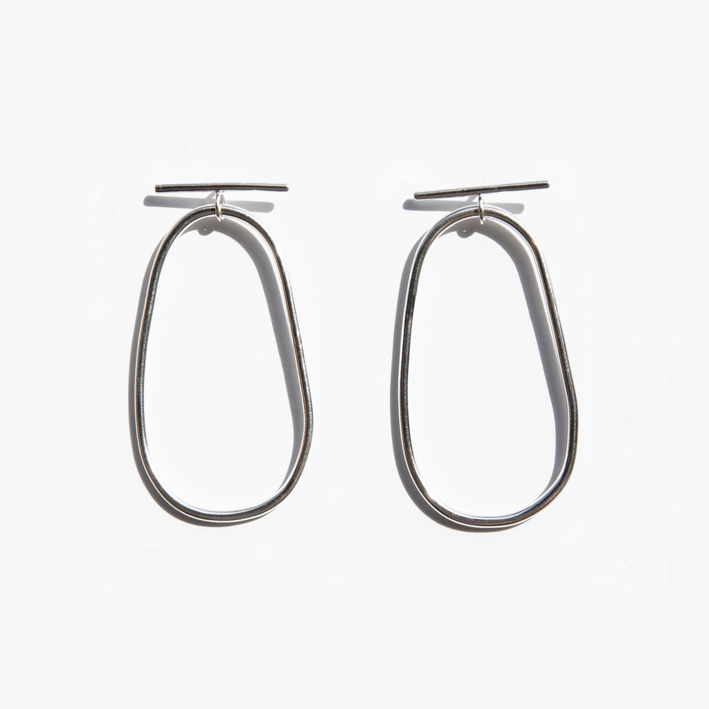 Another Feather Ovale Earrings are large, lightweight, hand formed egg shaped ovals that dangle freely from rectangular studs.
