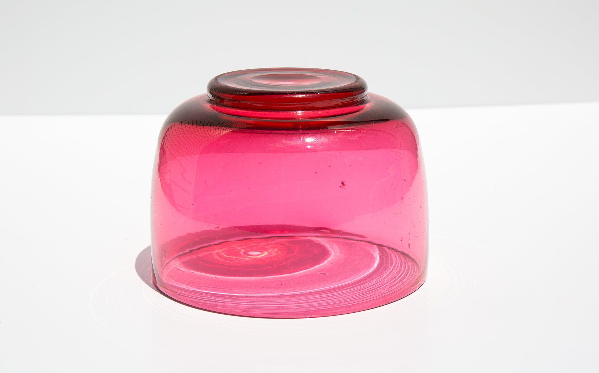Pretty, translucent cranberry colored bowl – antique American glass from the 1860s. A beautiful nut, sauce, or vanity bowl.