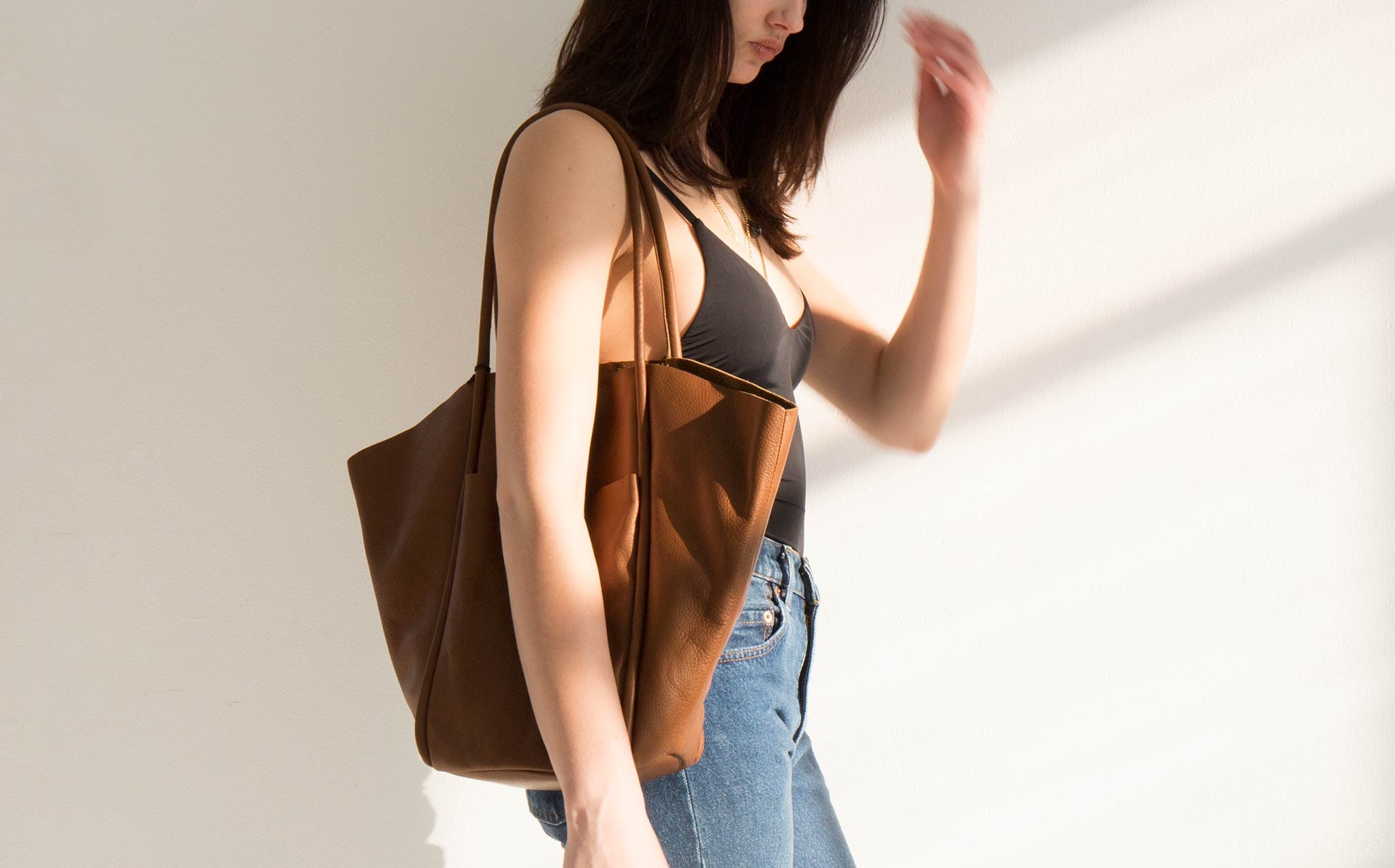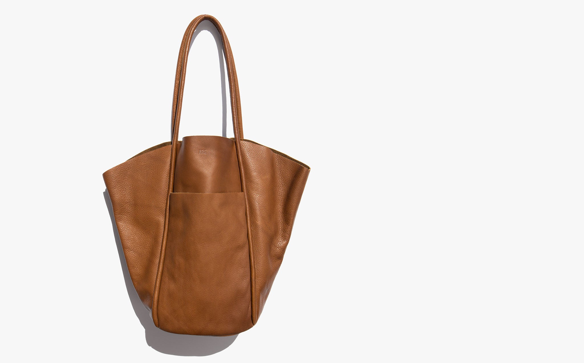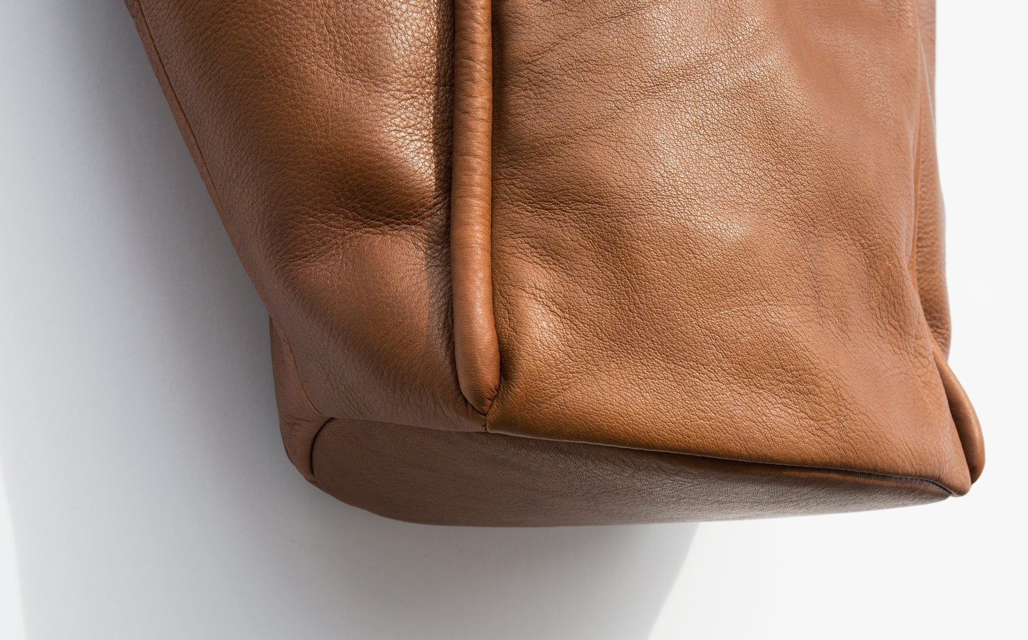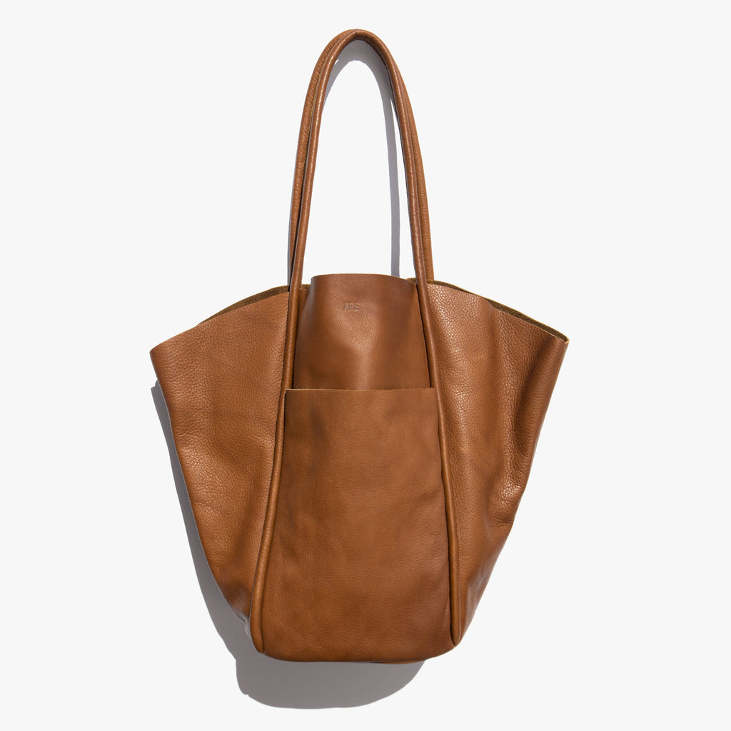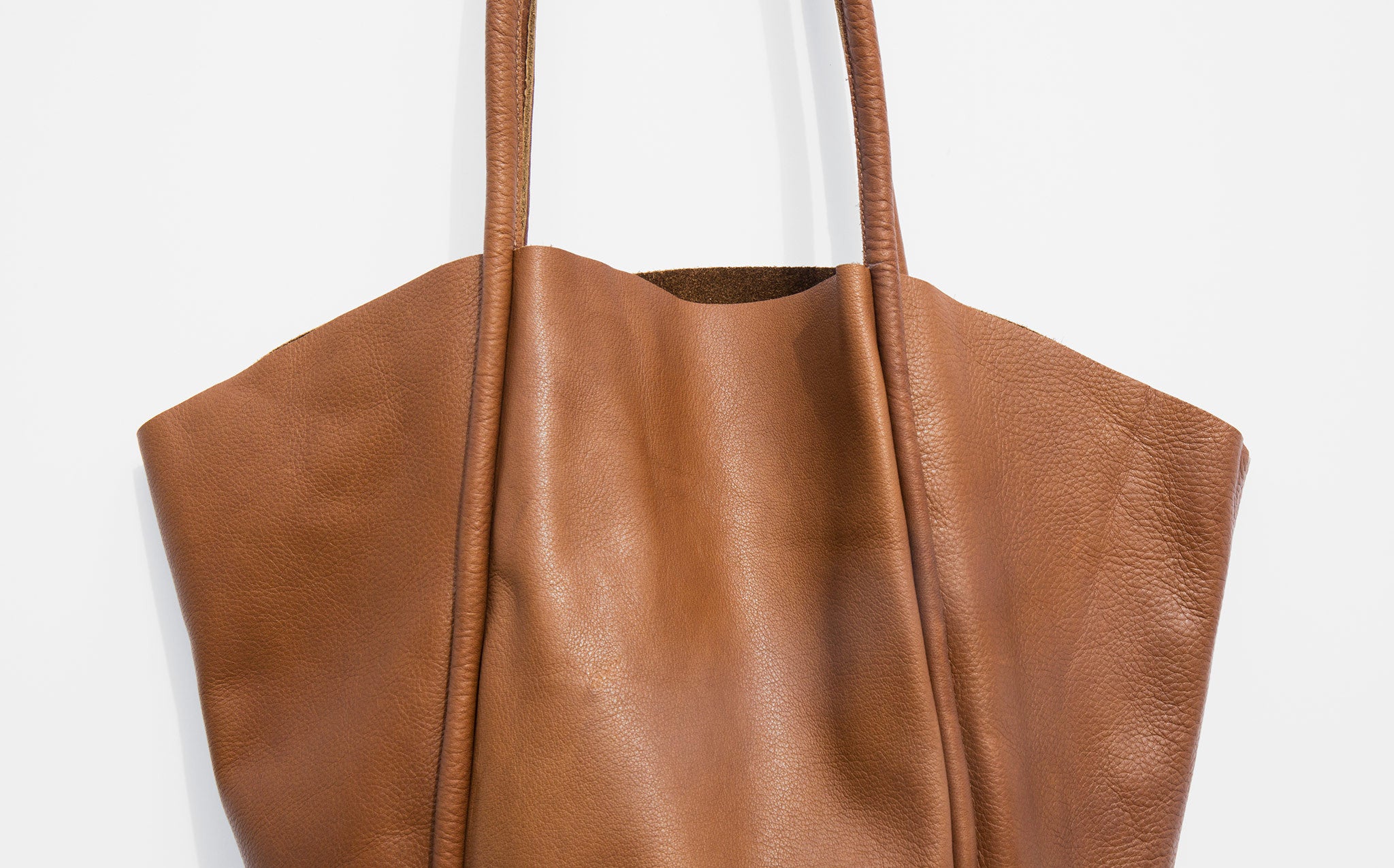 Sleek, minimal everyday tote crafted of untreated velvet-soft leather.