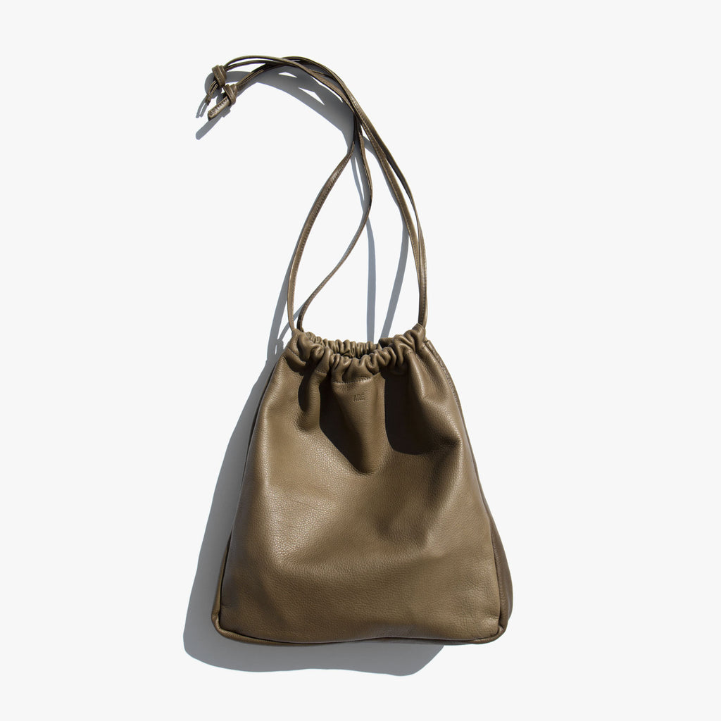 Minimal and relaxed unlined drawstring bag, made with untreated, velvet-soft, vegetable tanned leather. A versatile piece with comfortable flat straps that are knotted at the ends for adjustability.