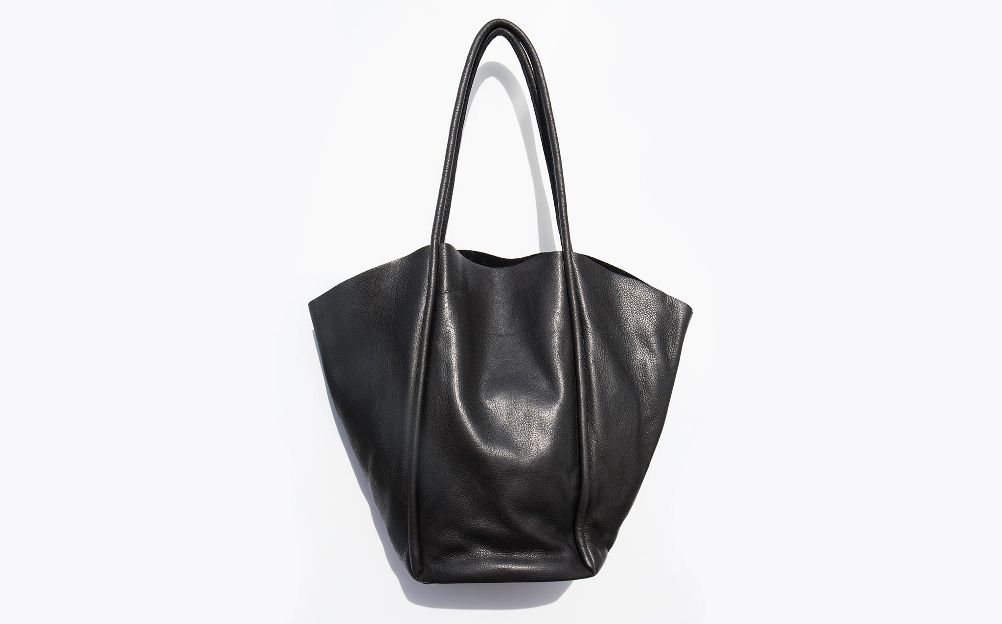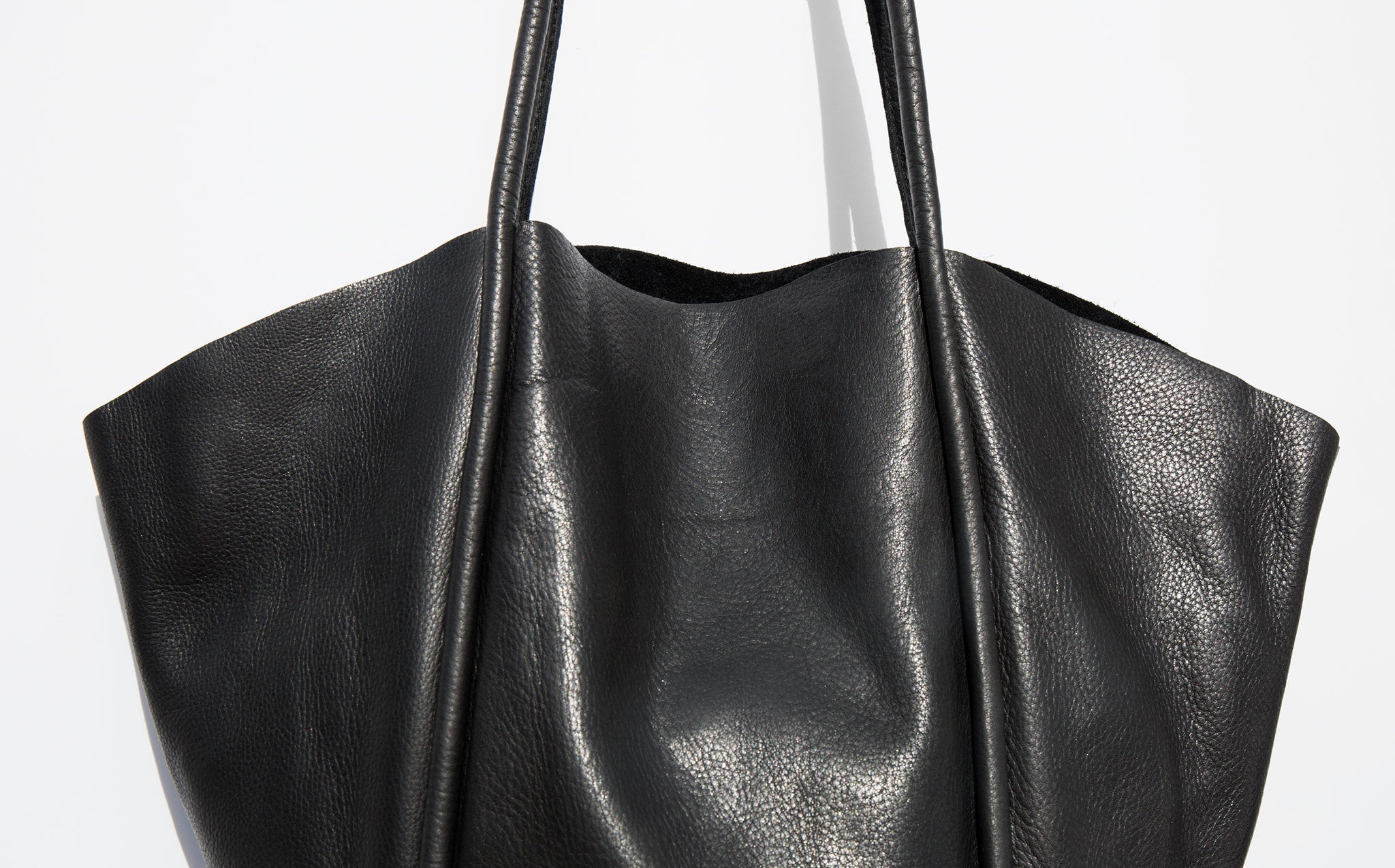 Sleek, minimal everyday tote crafted of untreated velvet-soft leather.