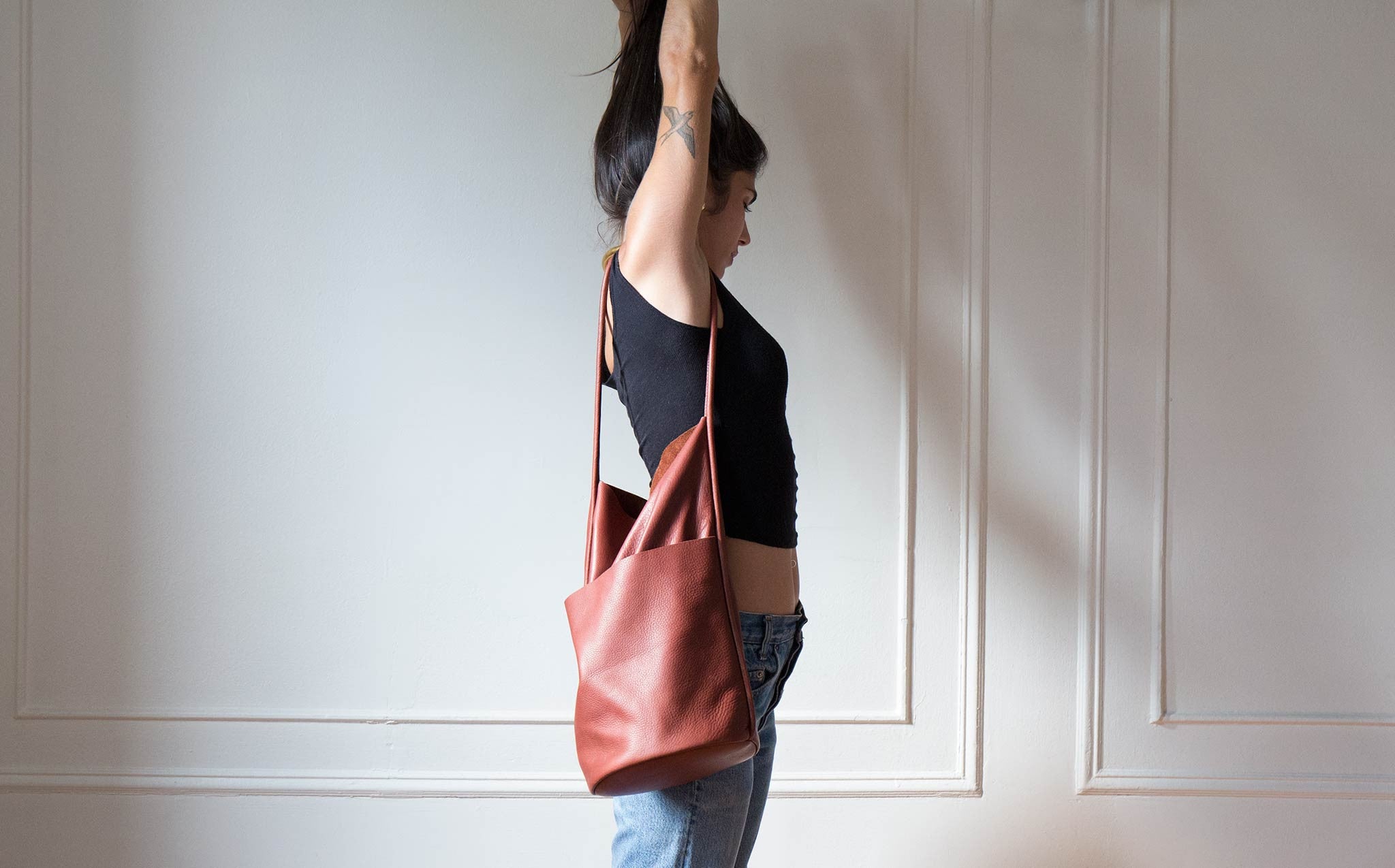 Are Studio was established in 2012 by Cecilia Bordarampé, a Los Angeles based designer with a background in textile arts, photography and art history. Sourcing materials locally from family owned suppliers and manufacturing near her home in Los Angeles, Bordarampé designs timeless totes and handbags that are at once luxurious and stylish, minimal and practical. Particular attention is paid to reducing waste during the manufacturing process – the untreated leather hides used are all different and small, natural imperfections and color variations are not cut out, making each bag slightly unique to any other.