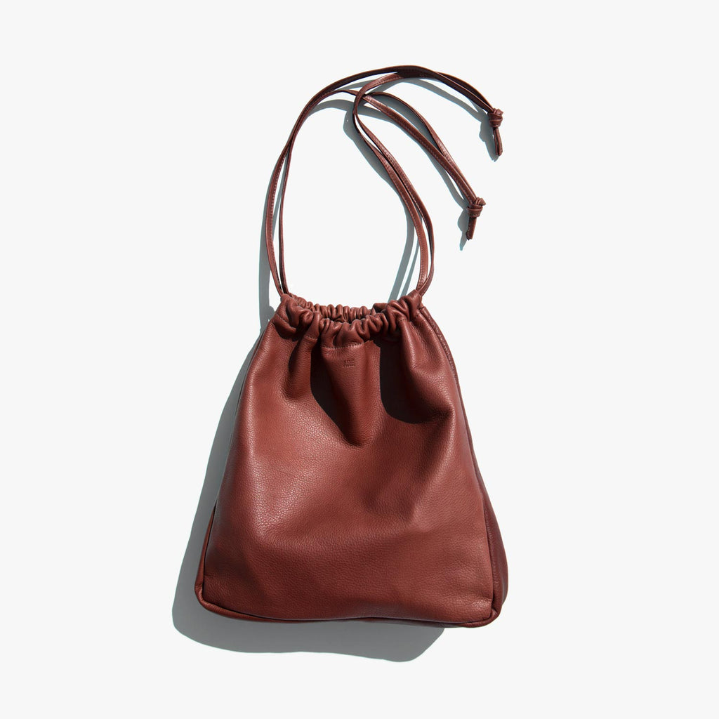 Minimal and relaxed unlined drawstring bag, made with untreated, velvet-soft, vegetable tanned leather. A versatile piece with comfortable flat straps that are knotted at the ends for adjustability.