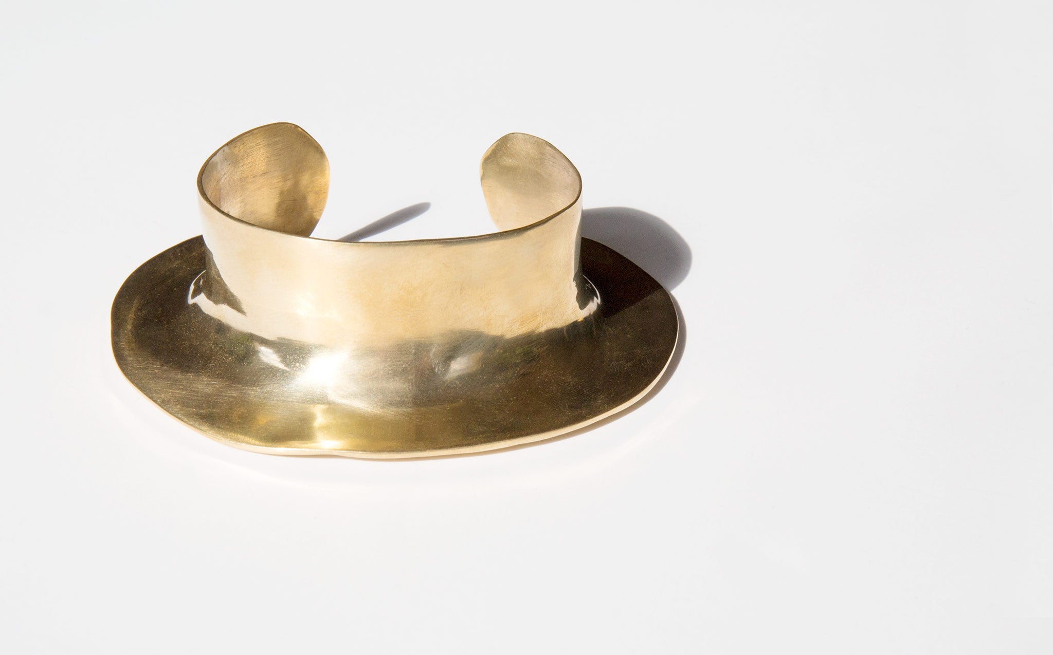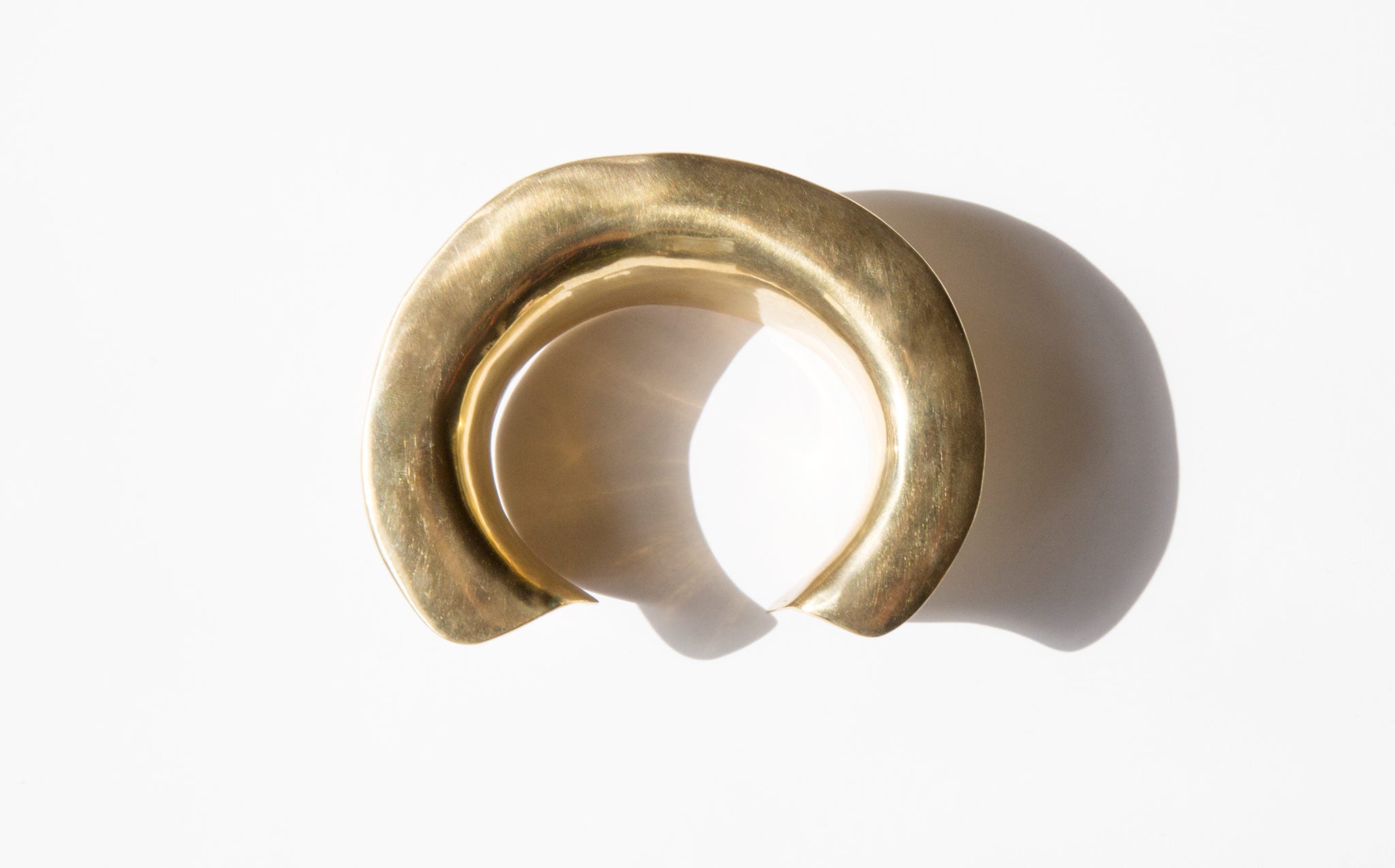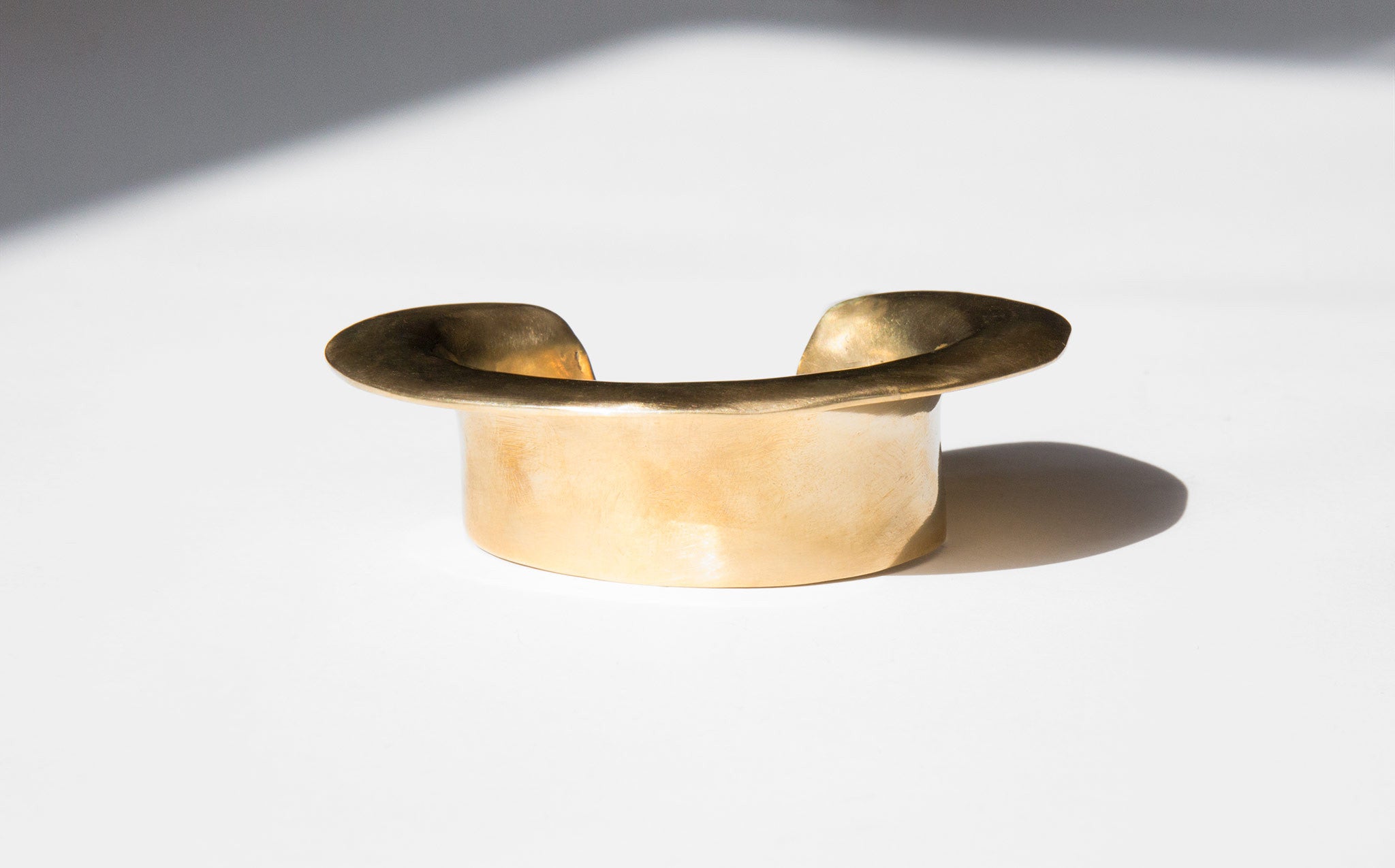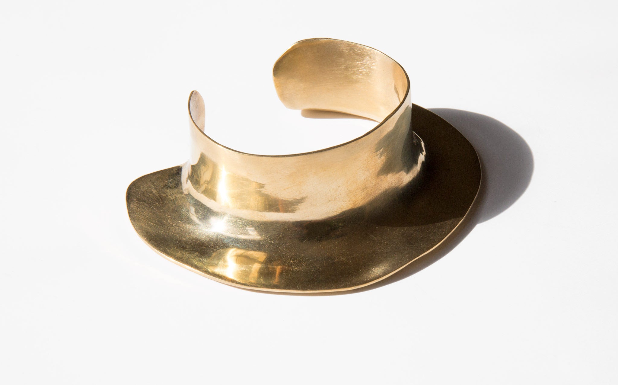 Statement fanning cuff based on primitive tribal jewelry. Made with solid, rough cut brass.