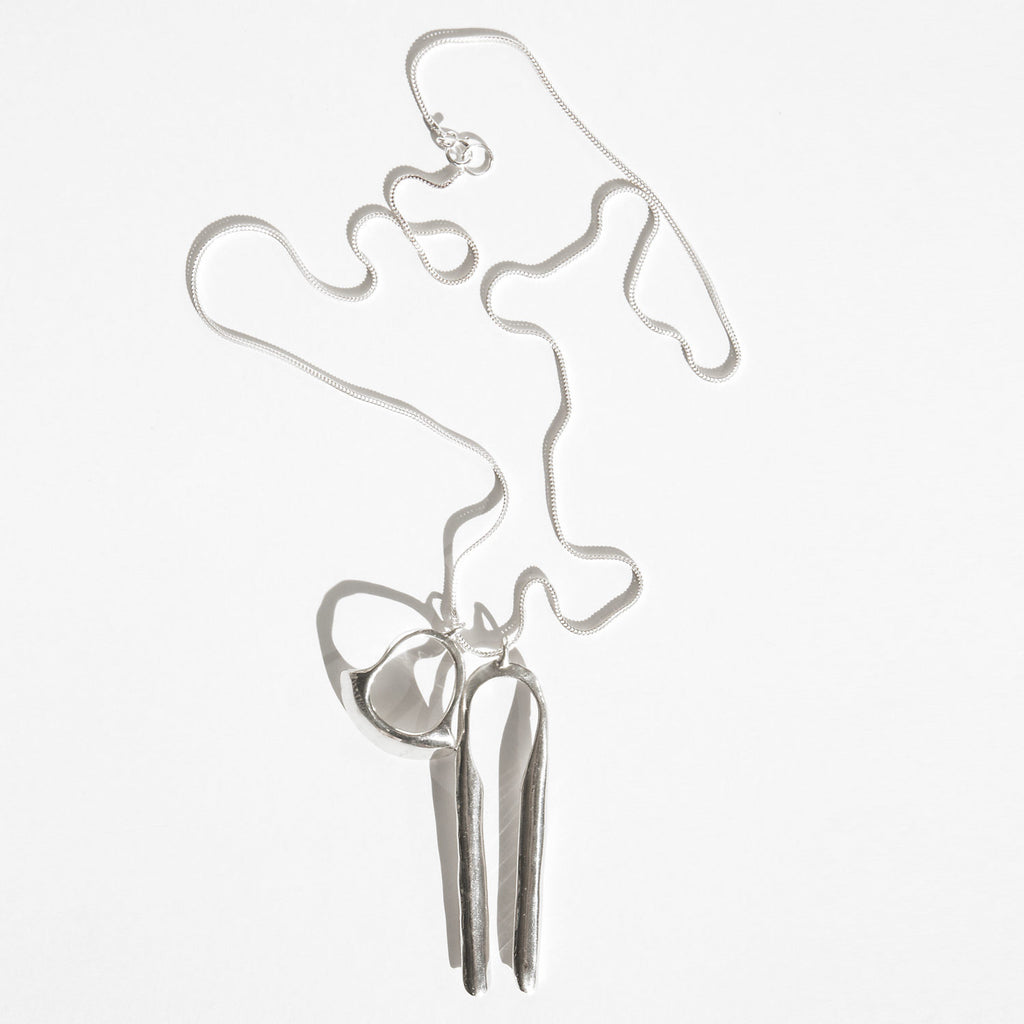 Long and dramatic sterling silver chain with solid sterling charms inspired by ancient Phoenician patterns.