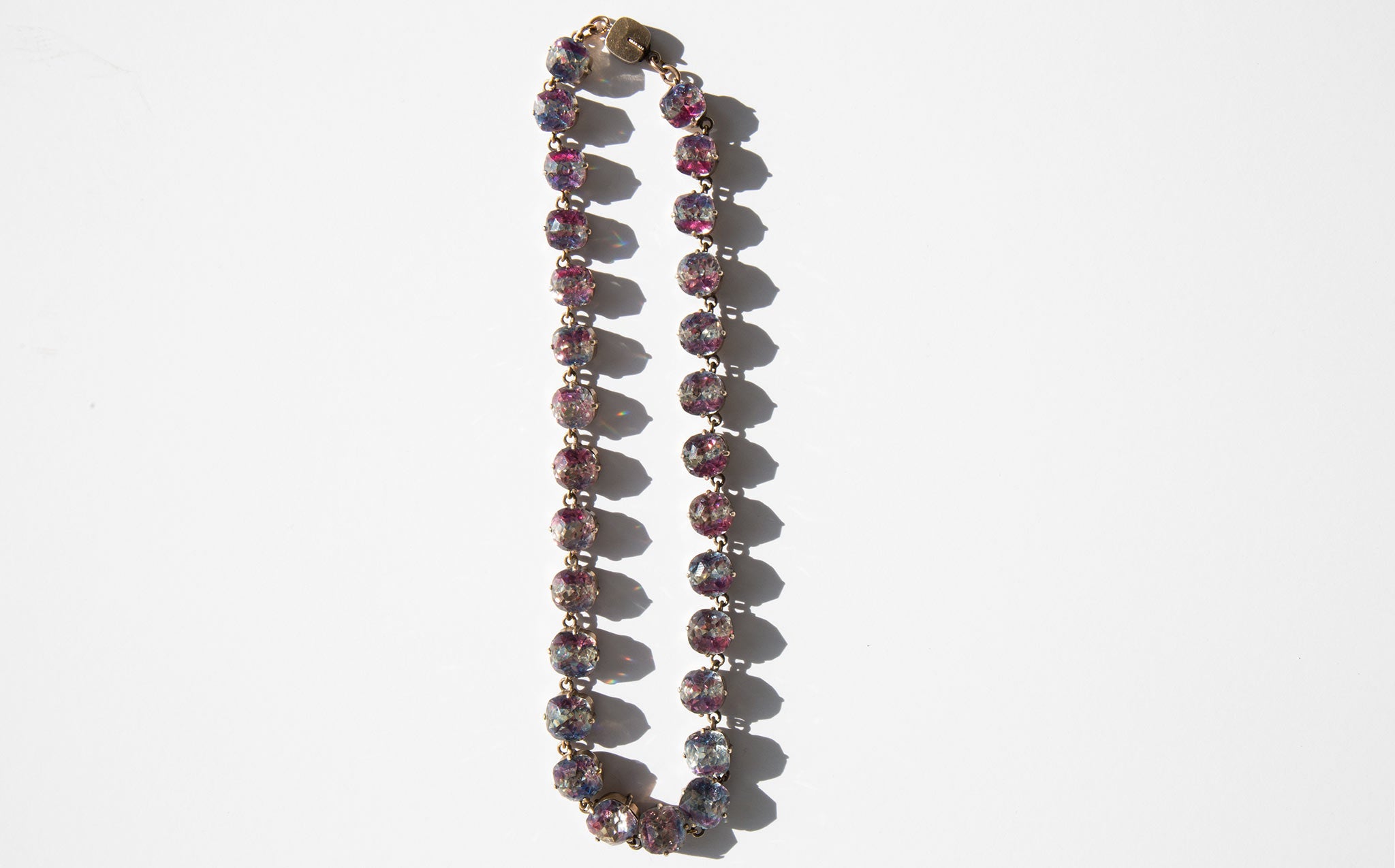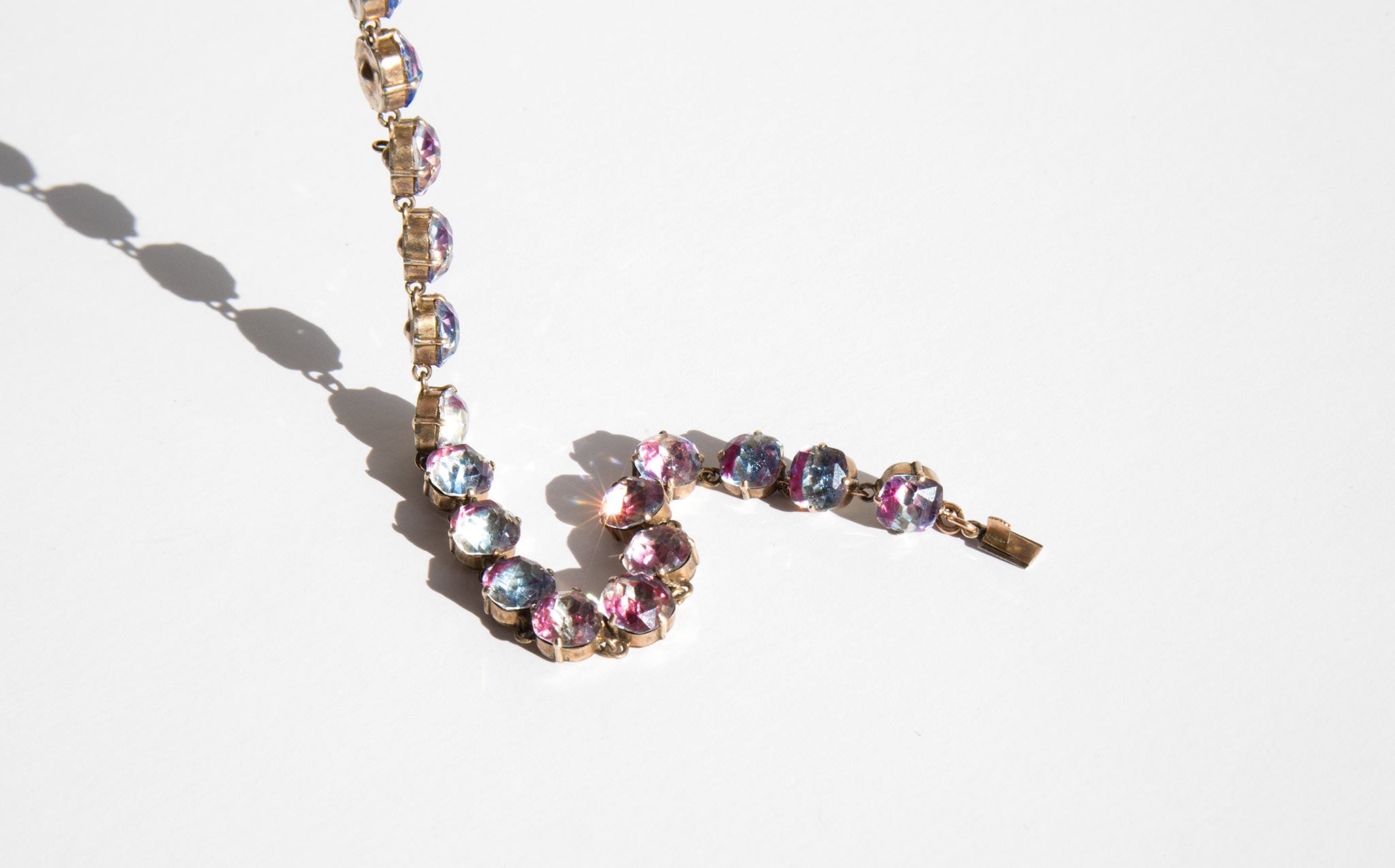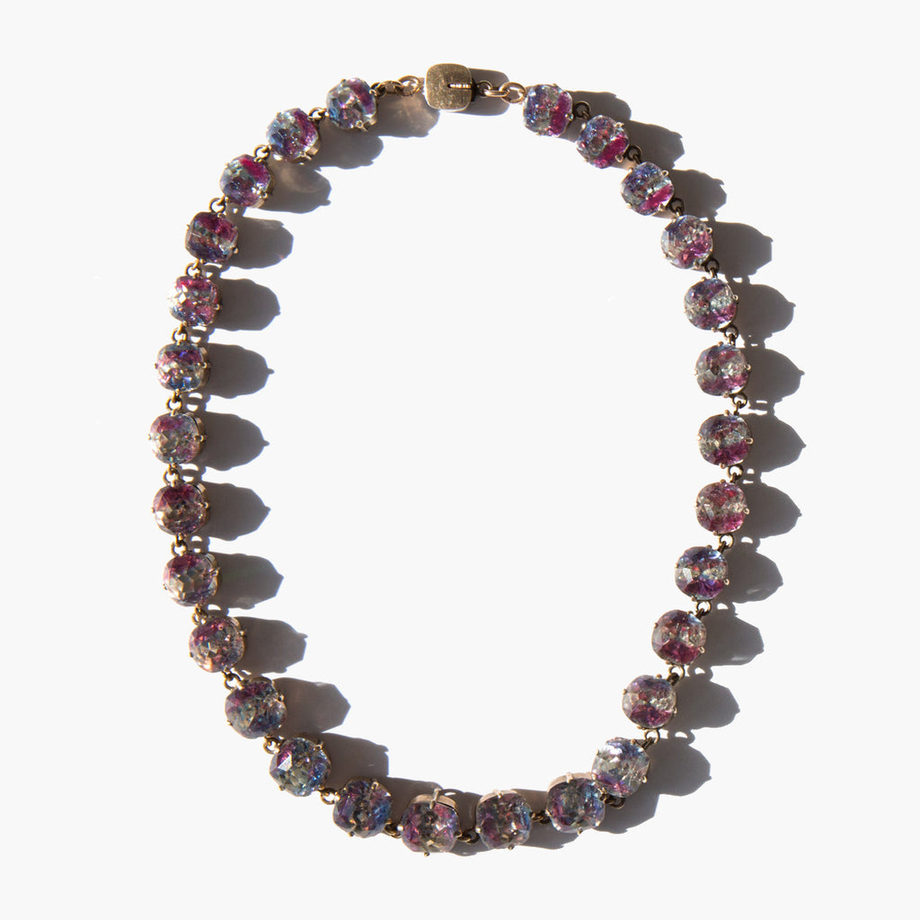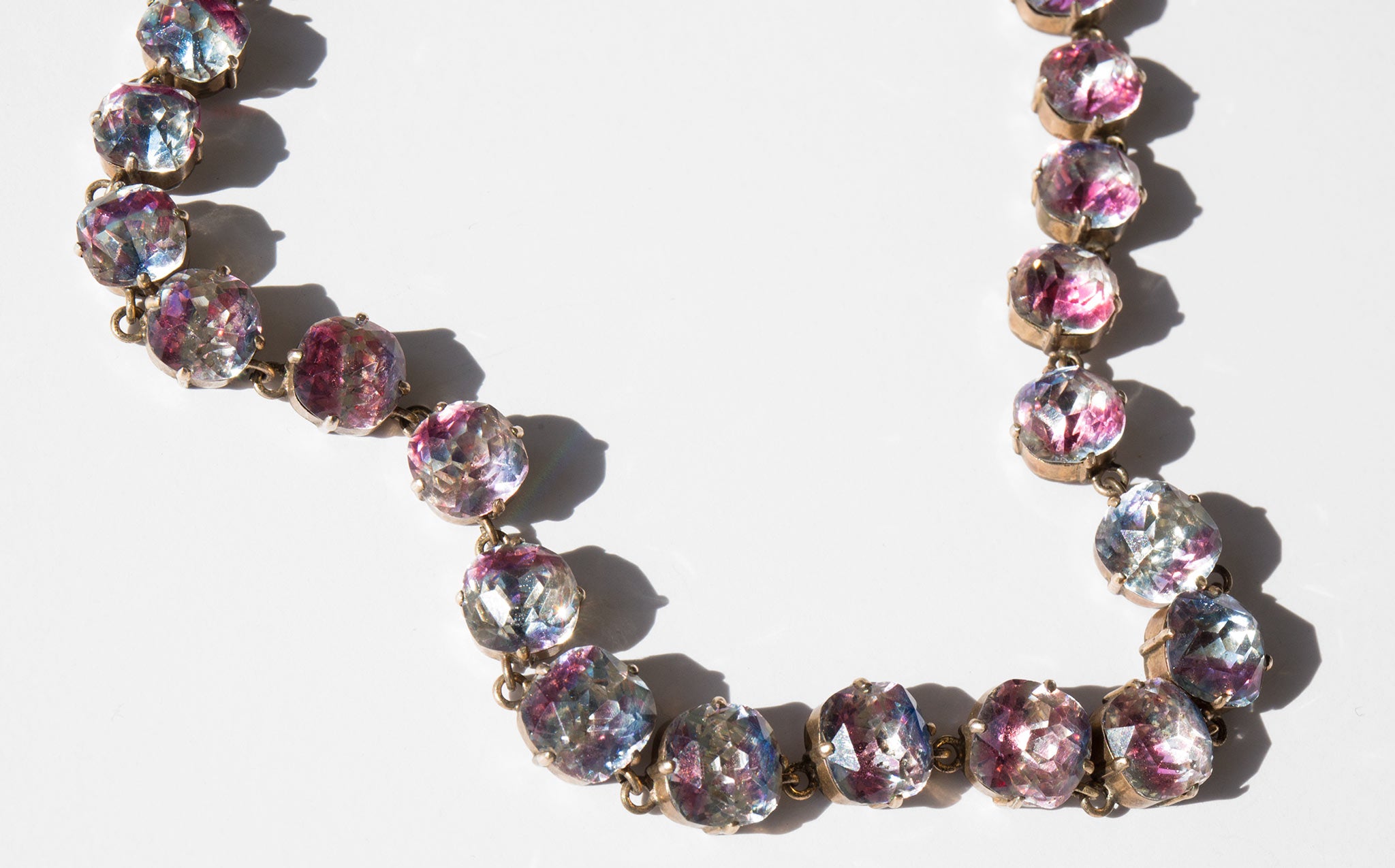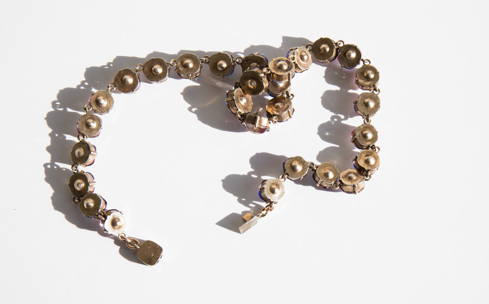 Dazzling, rare antique rainbow glass and sterling silver paste Riviera choker, circa 1900.