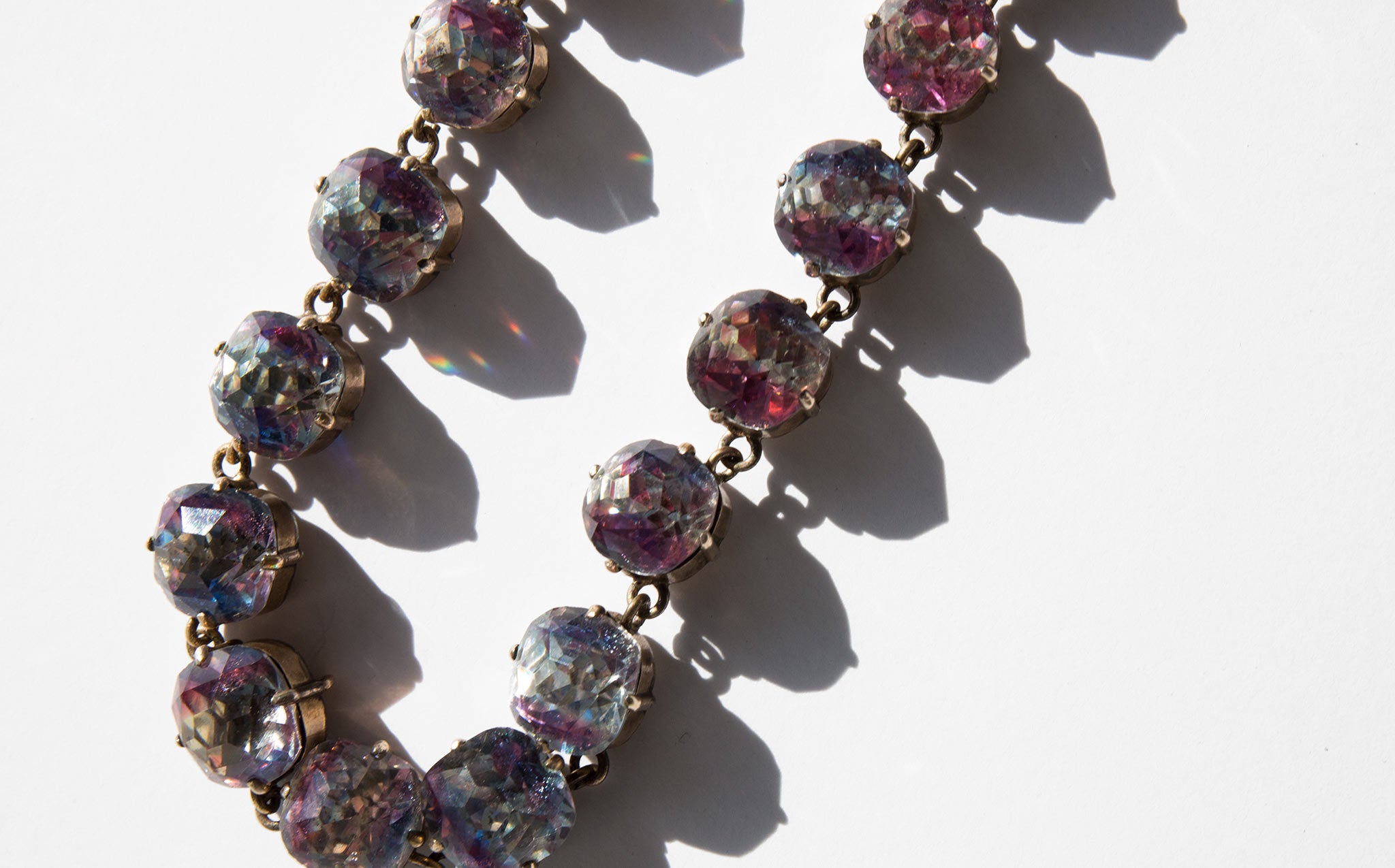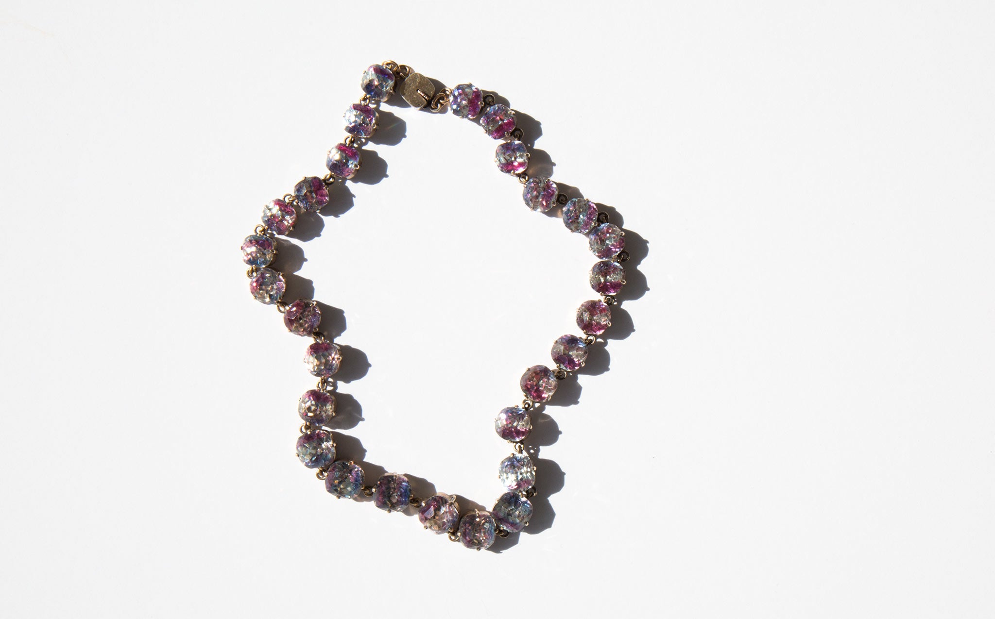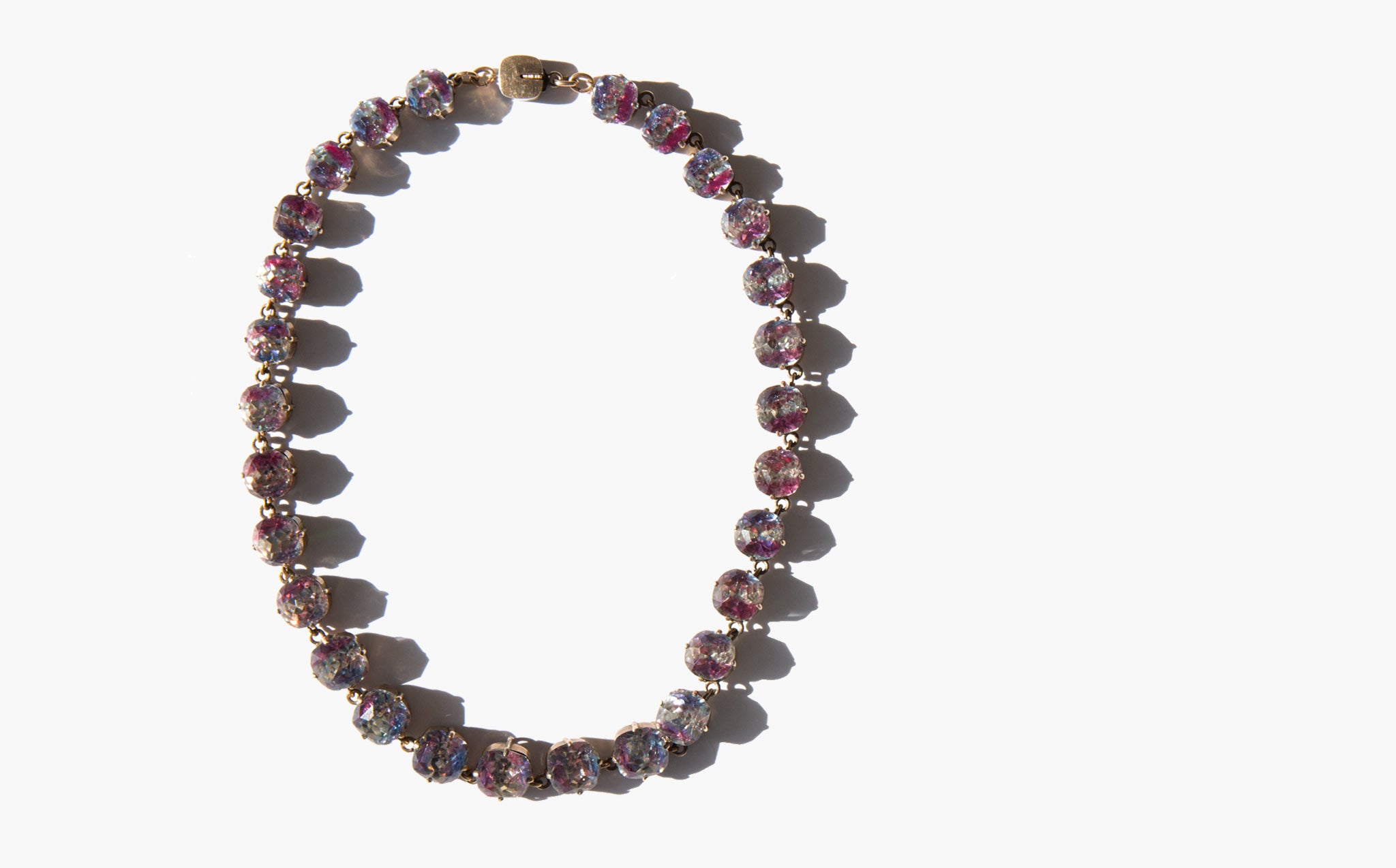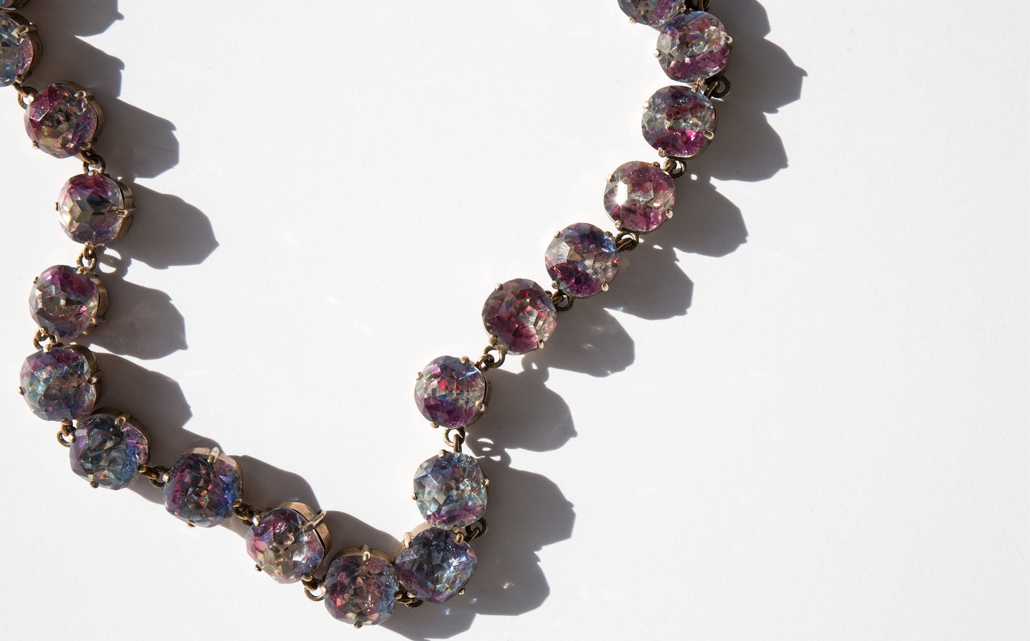 Dazzling, rare antique rainbow glass and sterling silver paste Riviera choker, circa 1900.