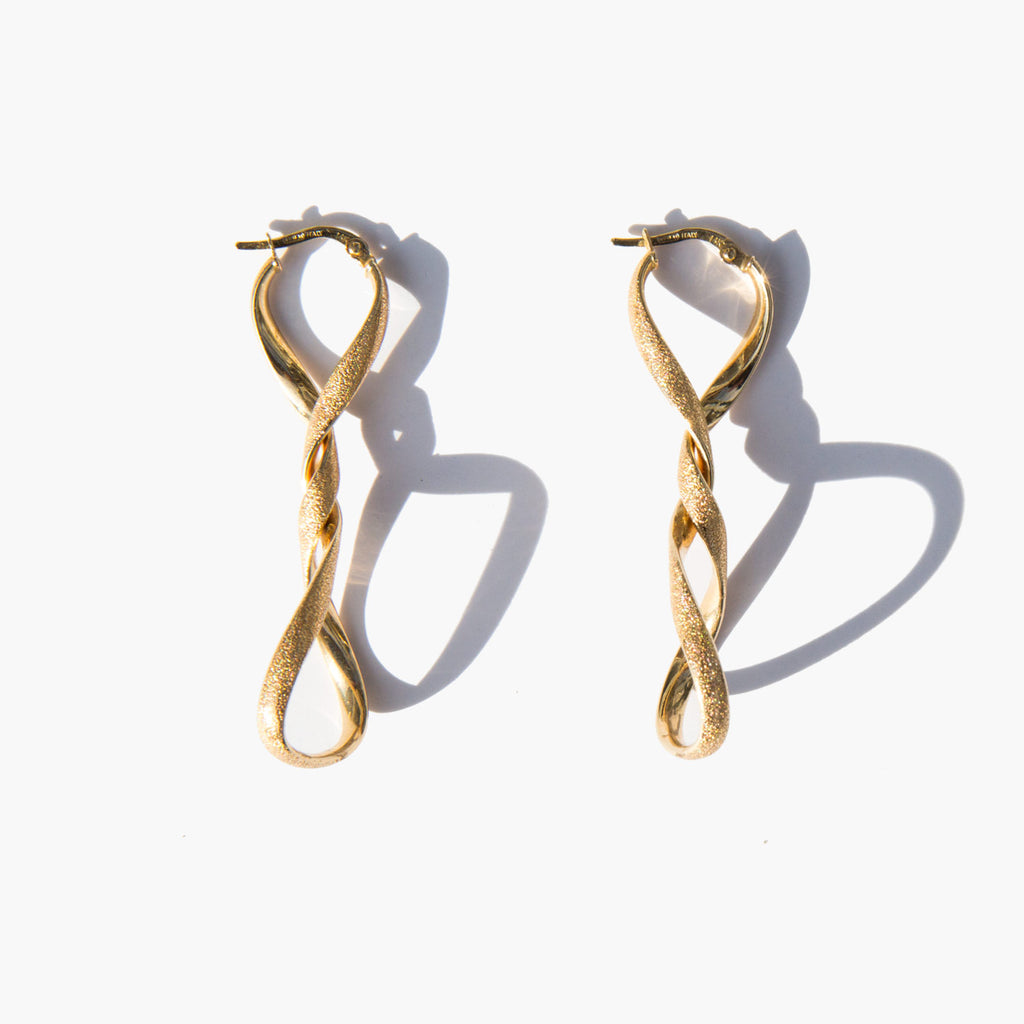 Twisted matte and polished 14k gold earrings.