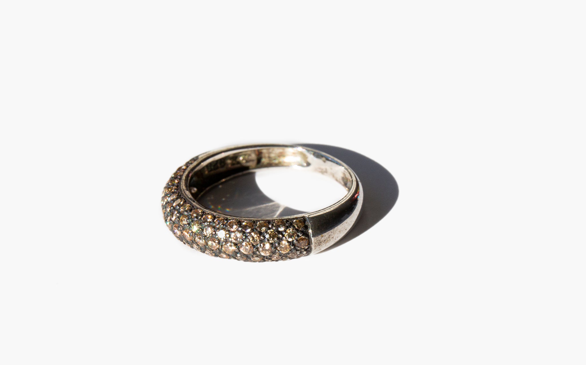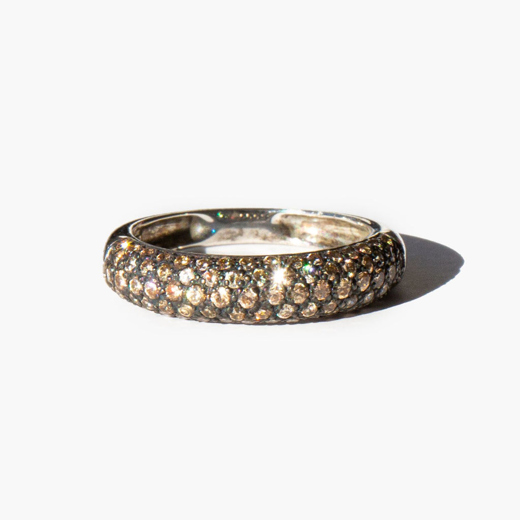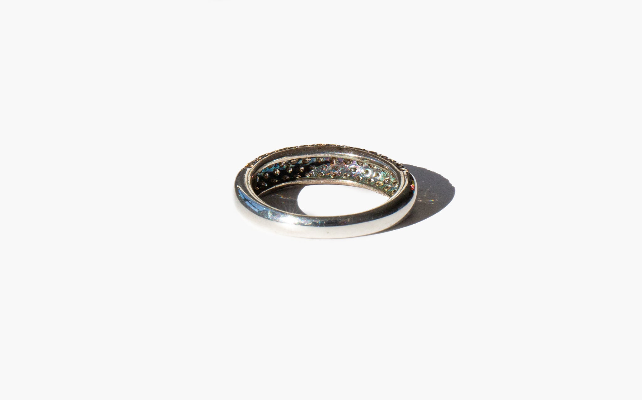 Oxidized sterling silver ring adorned with tiny crystals sparkling like the midnight sky.