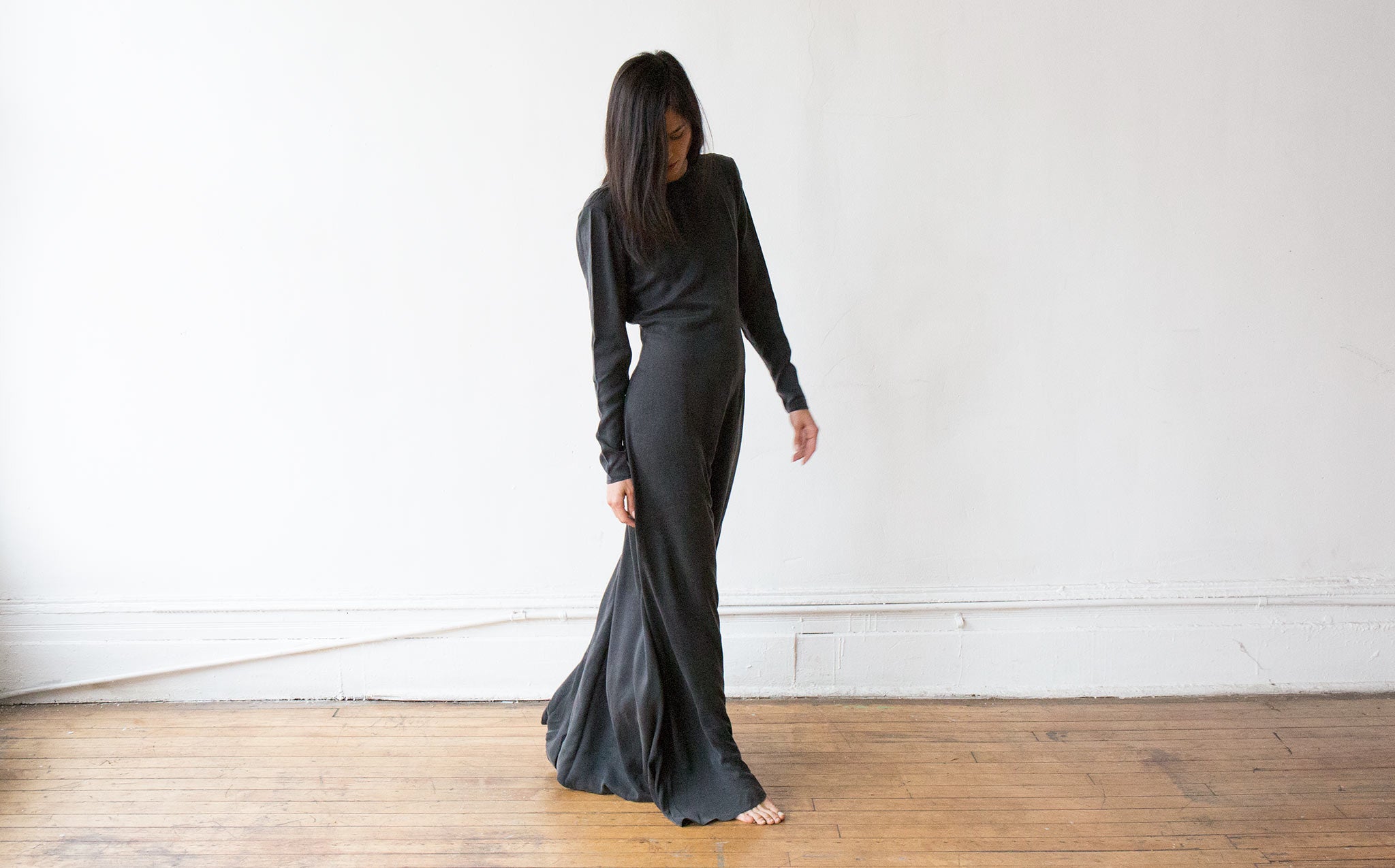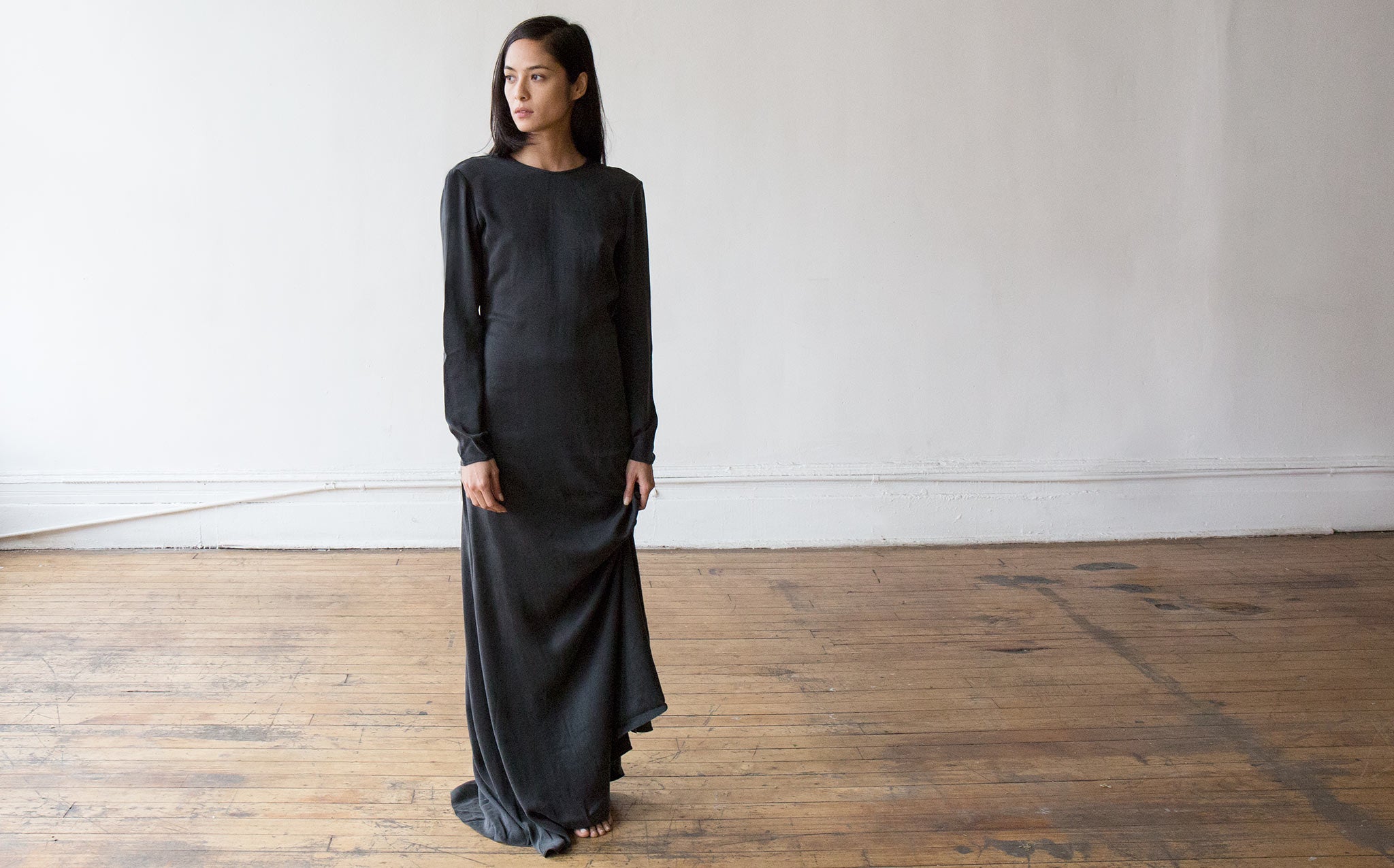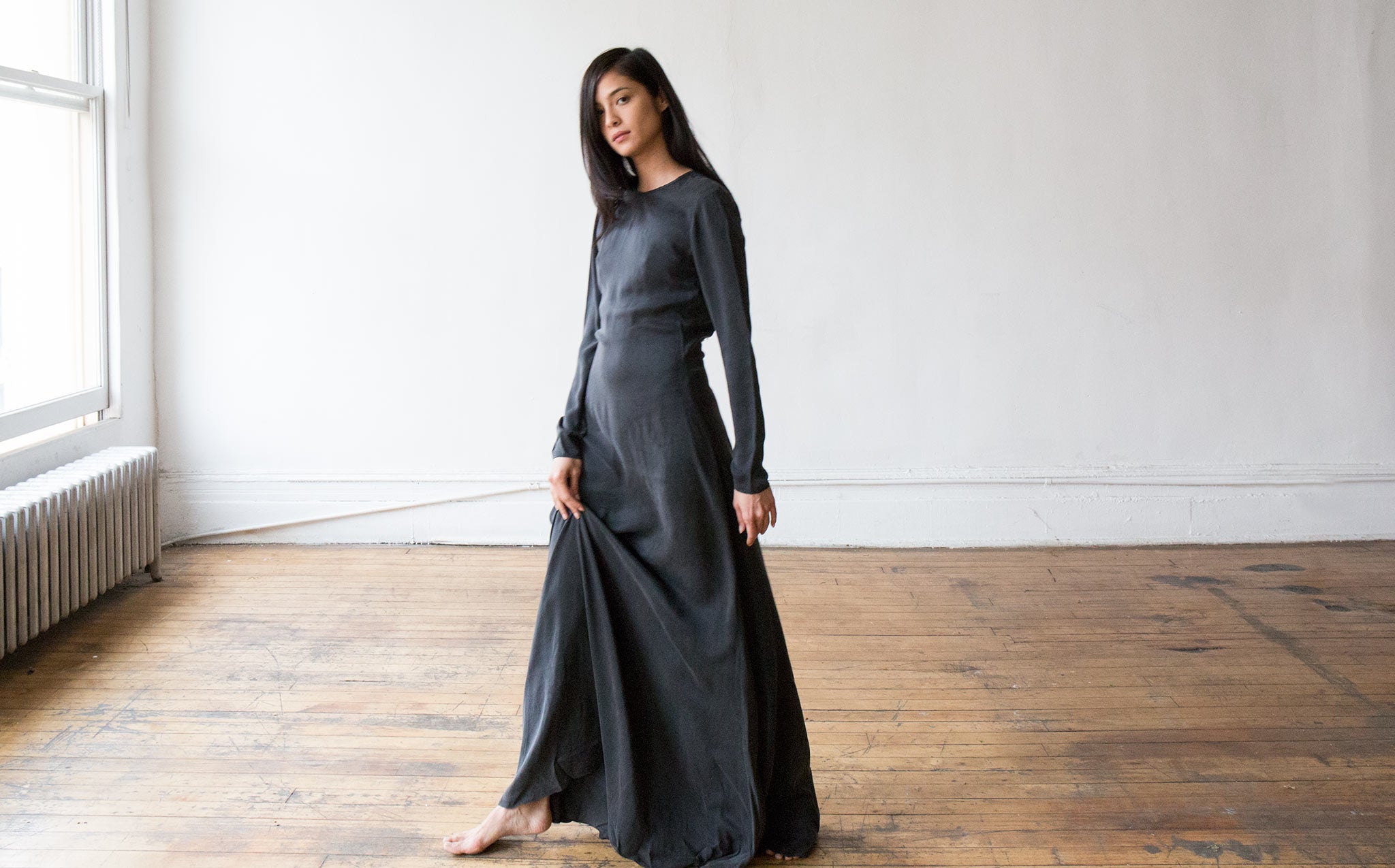 Inspired by her vast archive of 1930s-era lingerie and her love of swirling, full-length, body-conscious 1970s silhouettes, Jaclyn Hodes launched AWAVEAWAKE in 2012. Slip dresses with subtle details are the backbone of the collection, with open blouses and capes that can be layered on top. An elegant and surprisingly easy to wear collection, AWAVEAWAKE strives to blend luxury, function and beauty while remaining conscious of the impact that fashion can have on the world. Each AWAVEAWAKE garment is made with ethically sourced fabric and colored with all-natural plant-based dyes. Every step of the production process is conscious, chosen with consideration for the people making the pieces and the long-range impact on the environment.