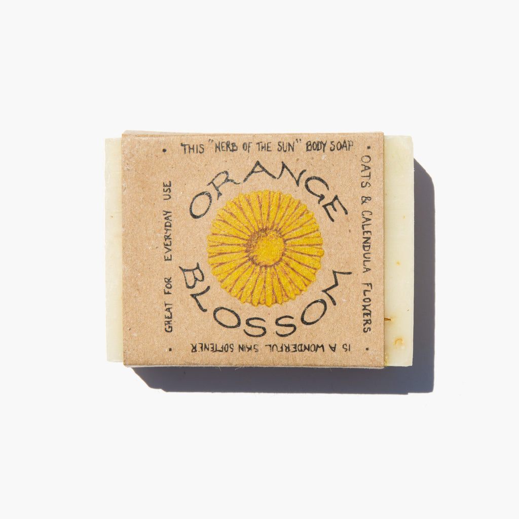 A unique, handmade face and body soap bar, perfect for everyday use. Crafted with skin softening and anti-inflammatory orange blossom, skin calming calendula flowers, and antimicrobial chaparral.