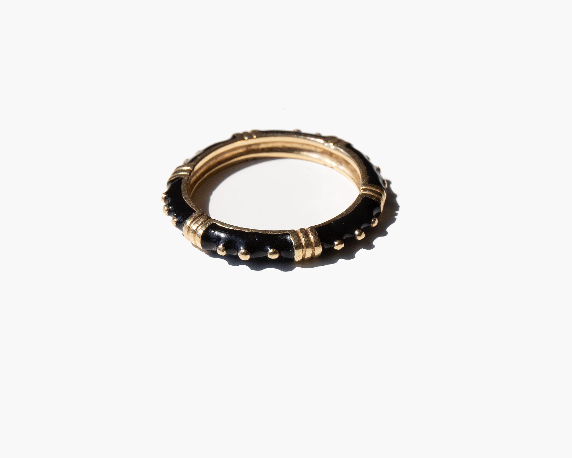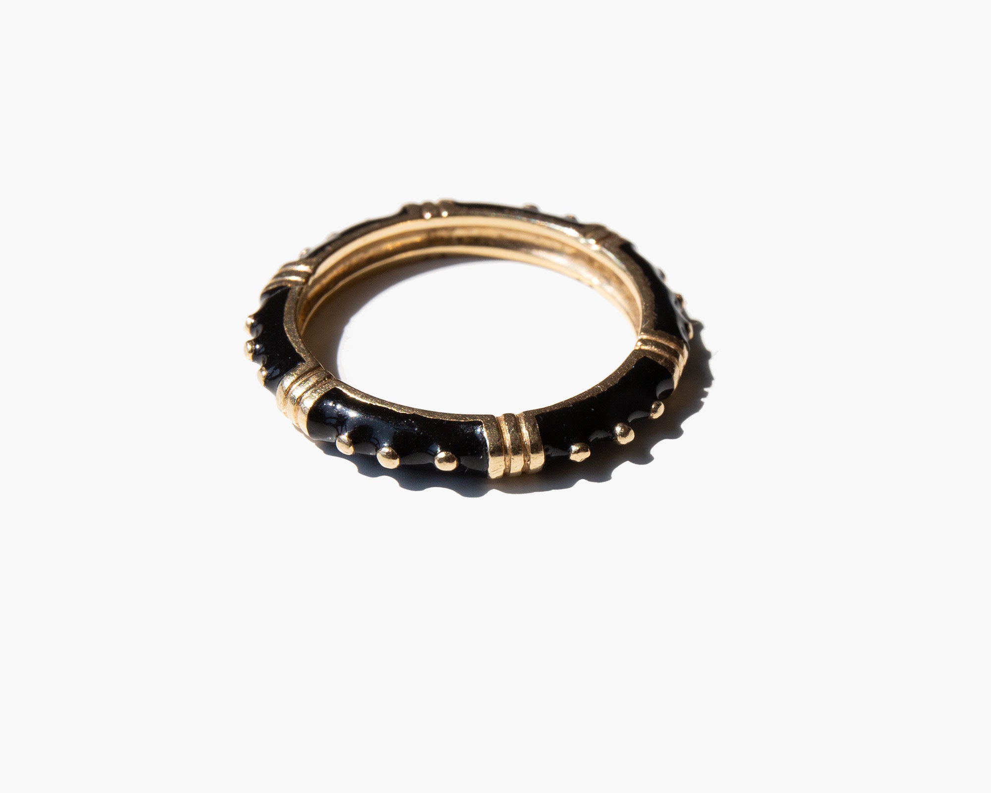 Elegant 14k gold and black enamel band.