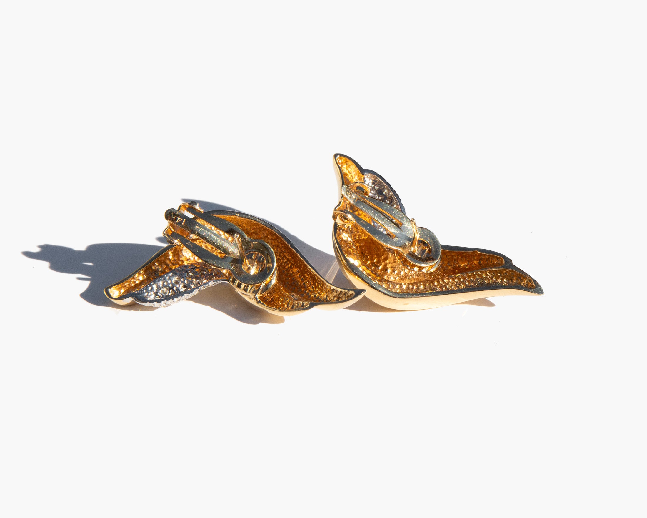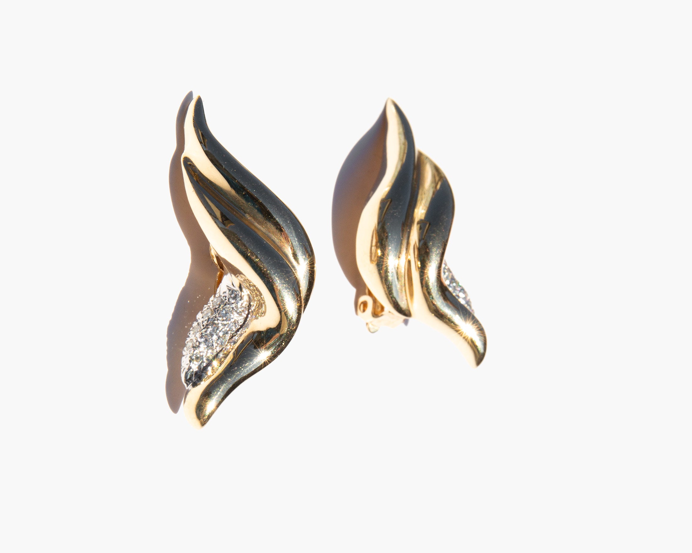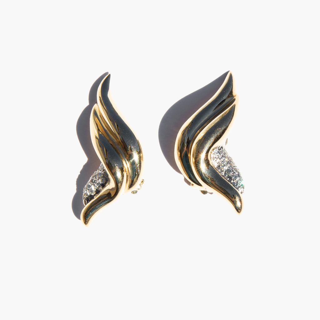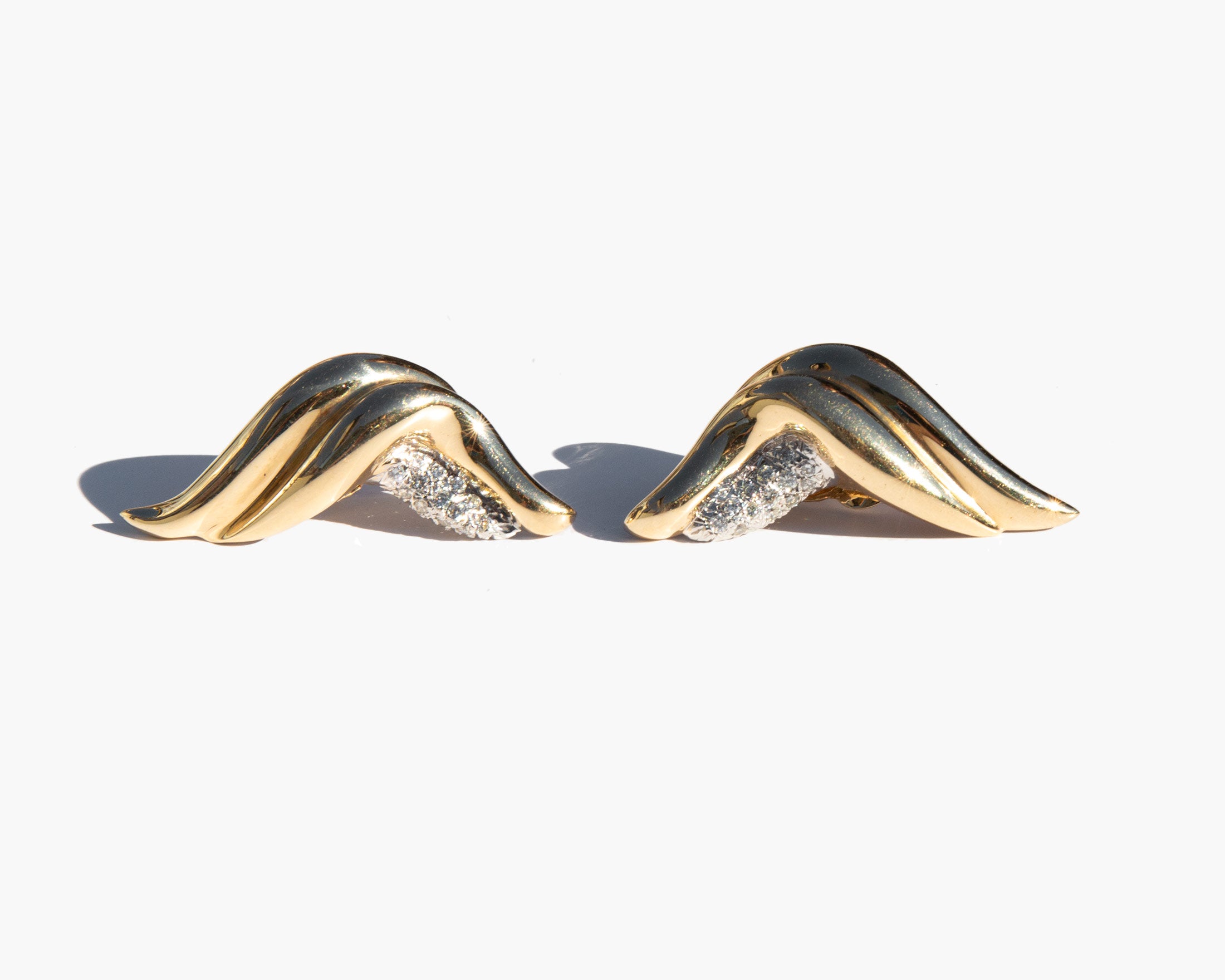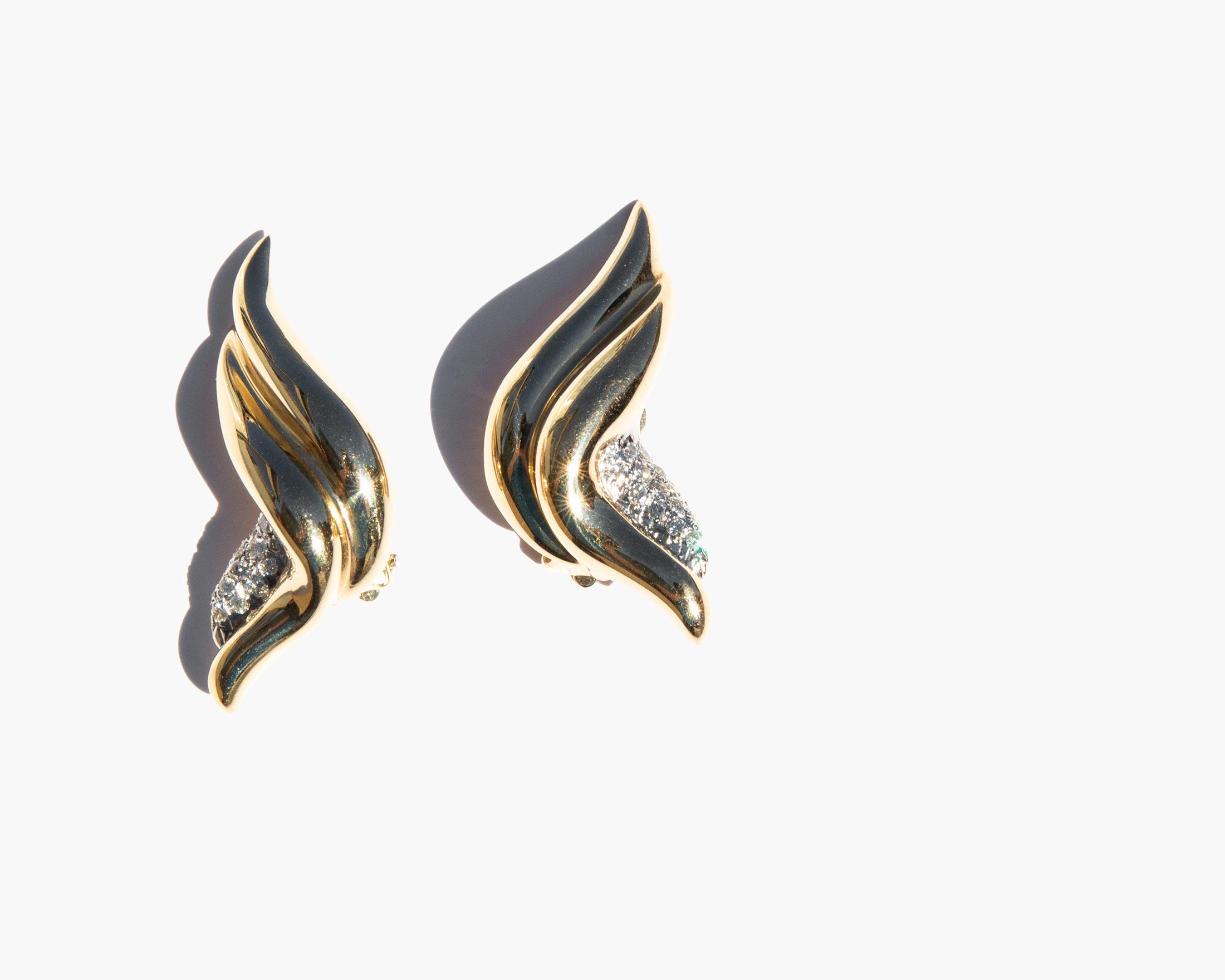 Organically shaped 14k gold statement earrings with shimmering pave diamonds.