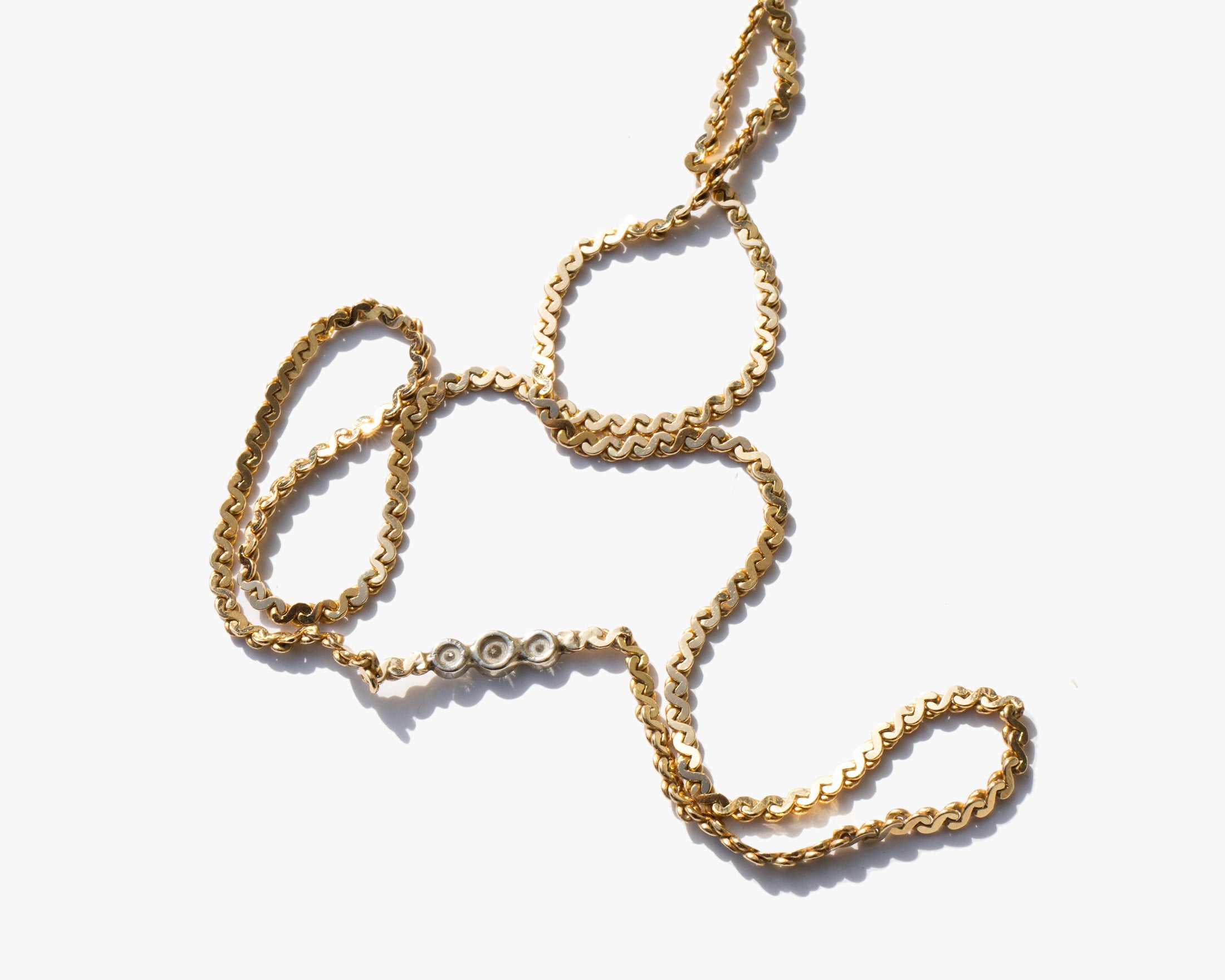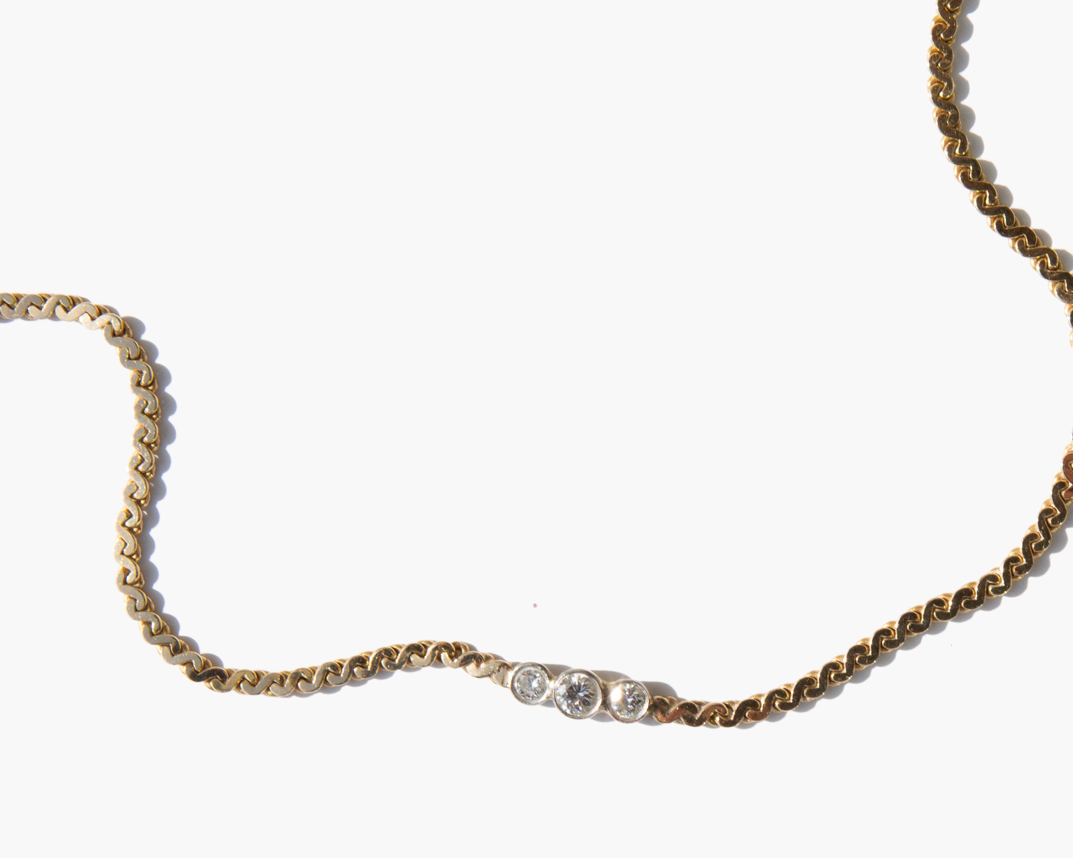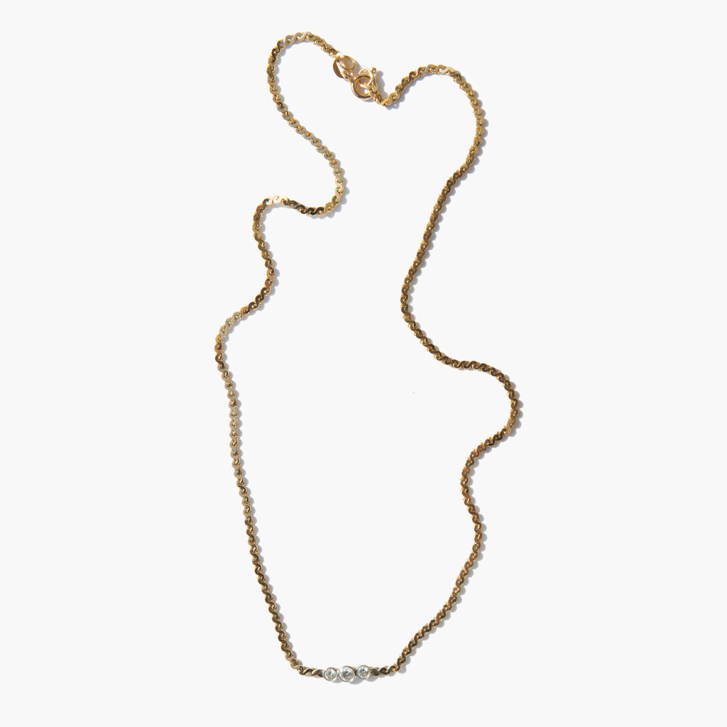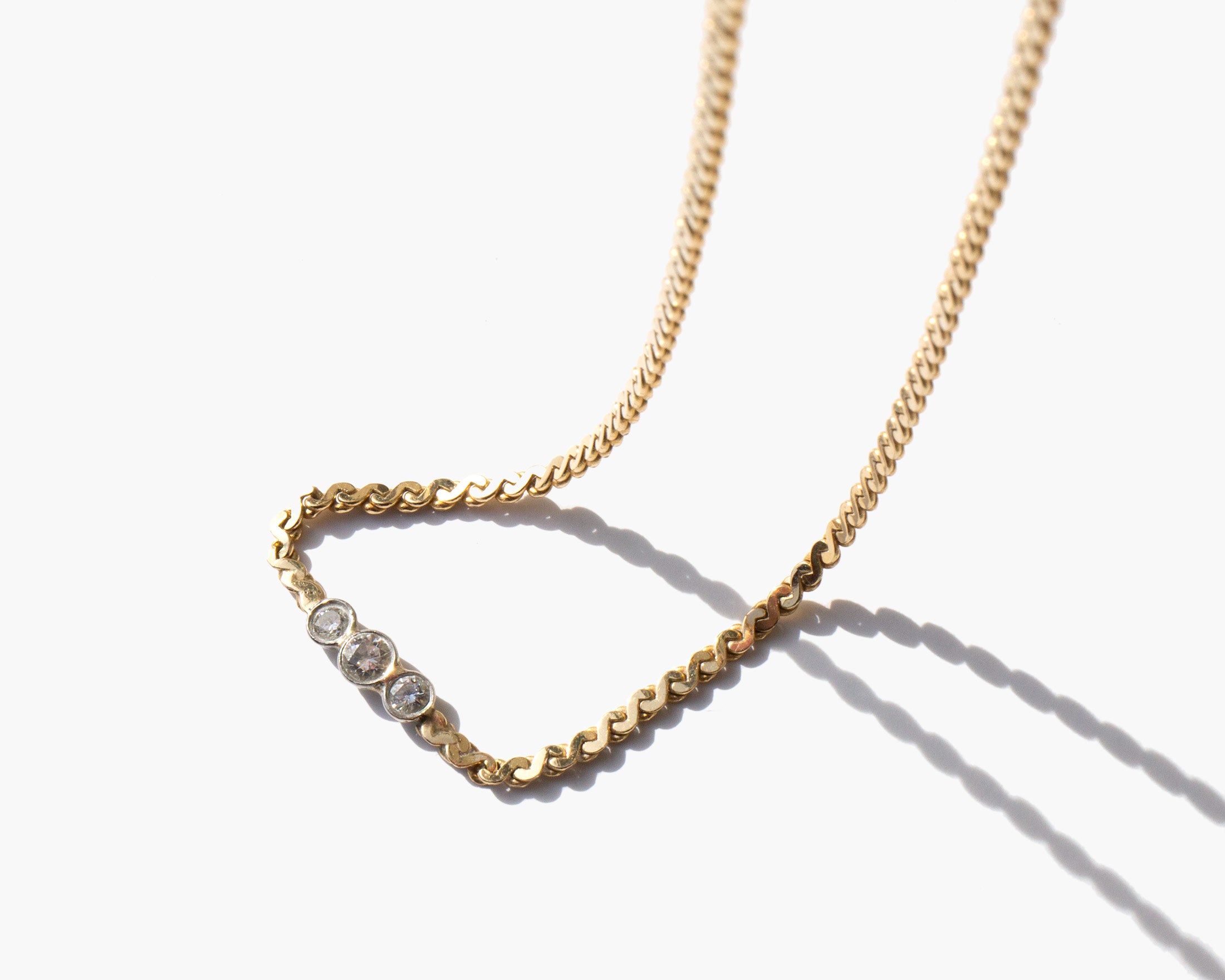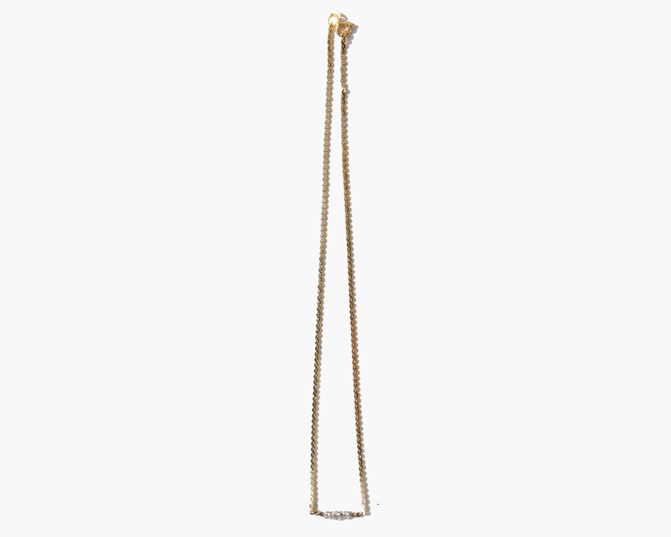 Elegant 14k gold choker necklace with diamonds at the neck.
