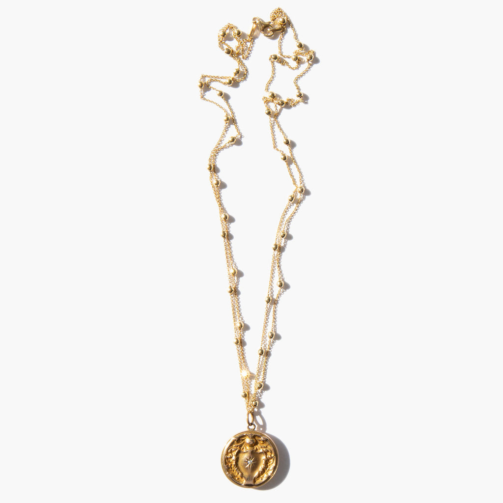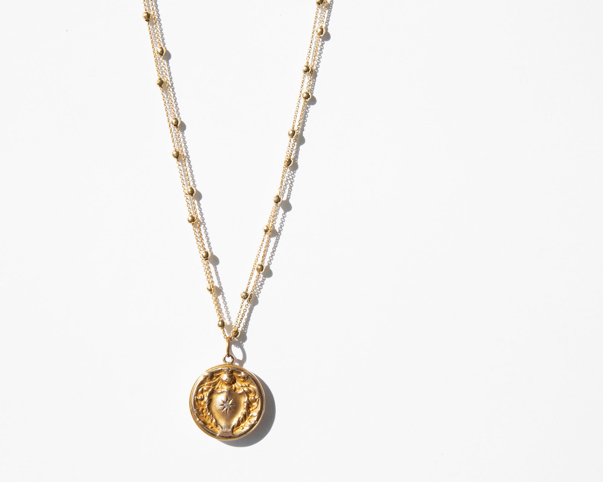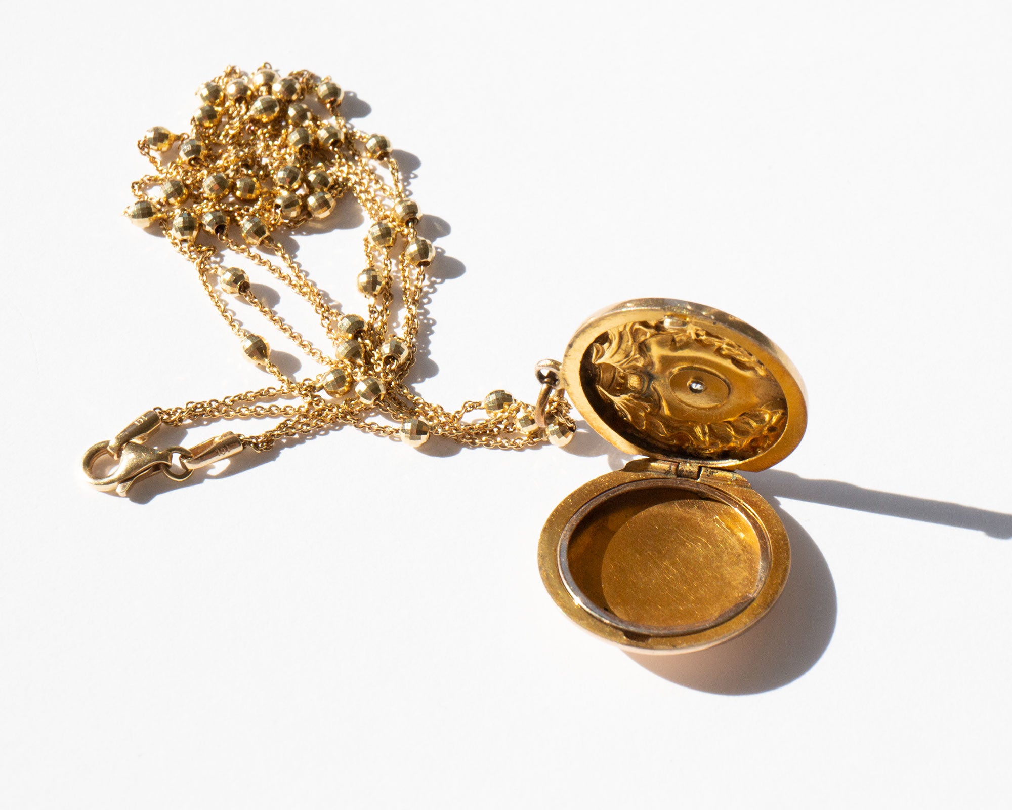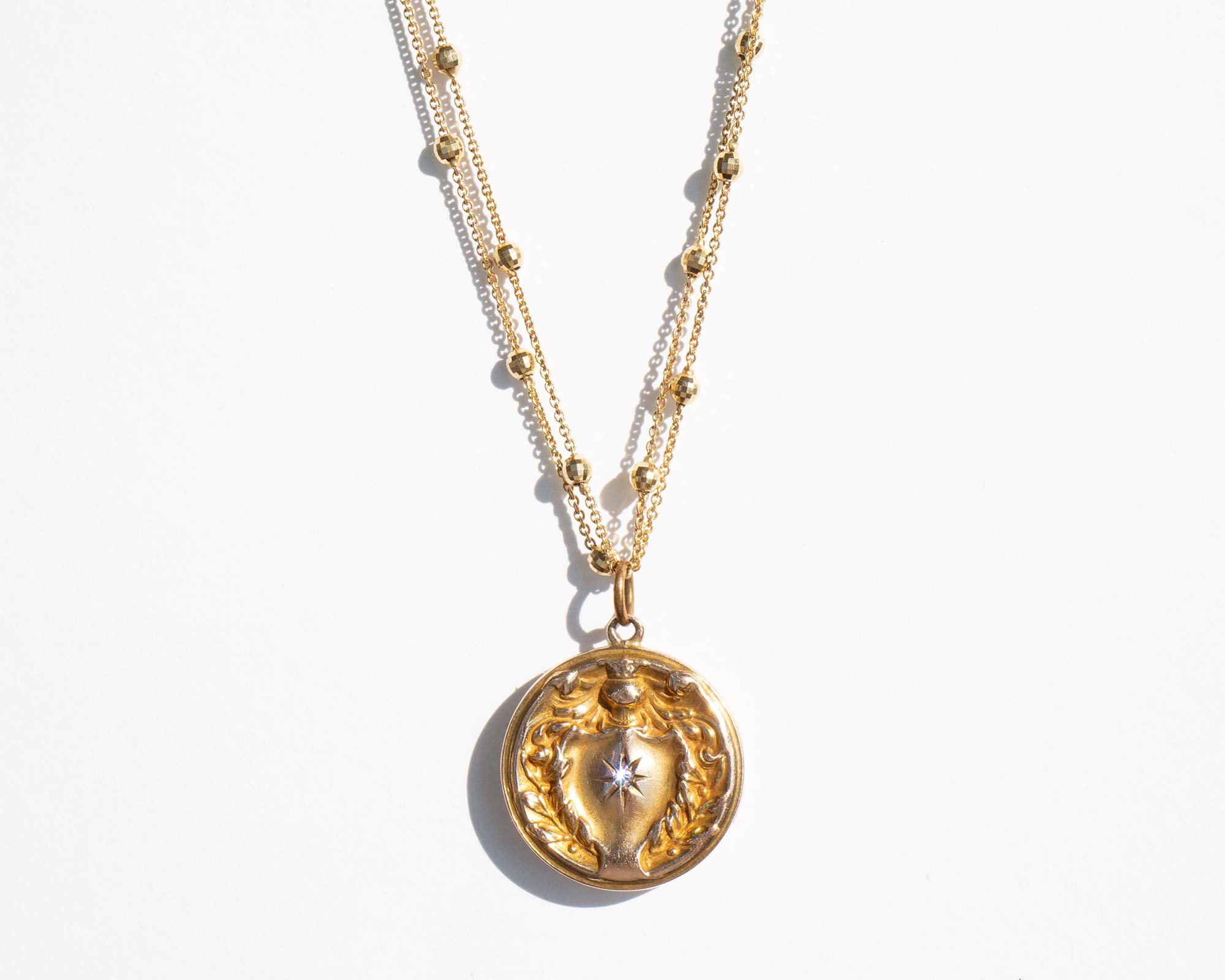 Antique Edwardian 14k gold and diamond locket on a sparkling vintage double Saturn chain.