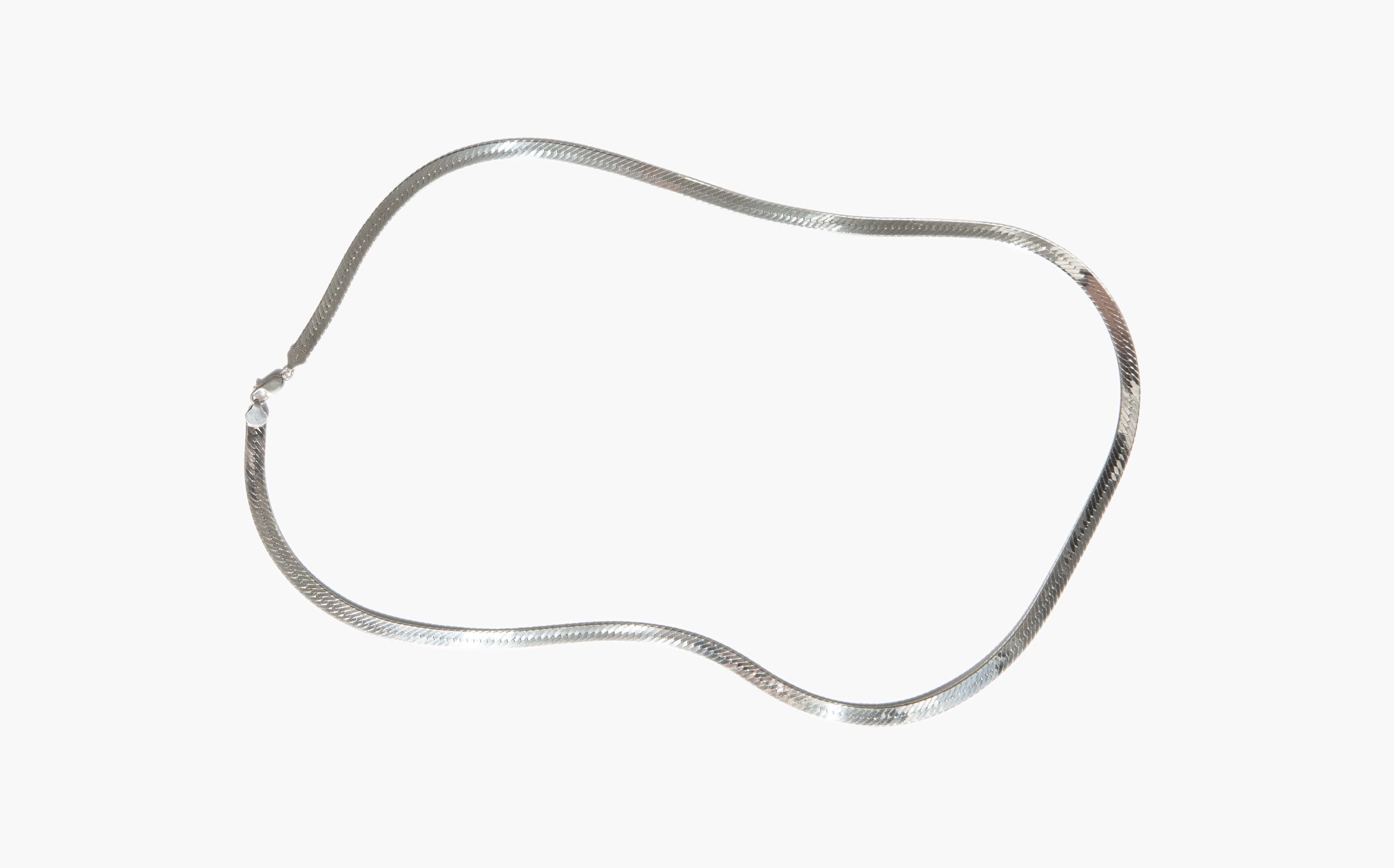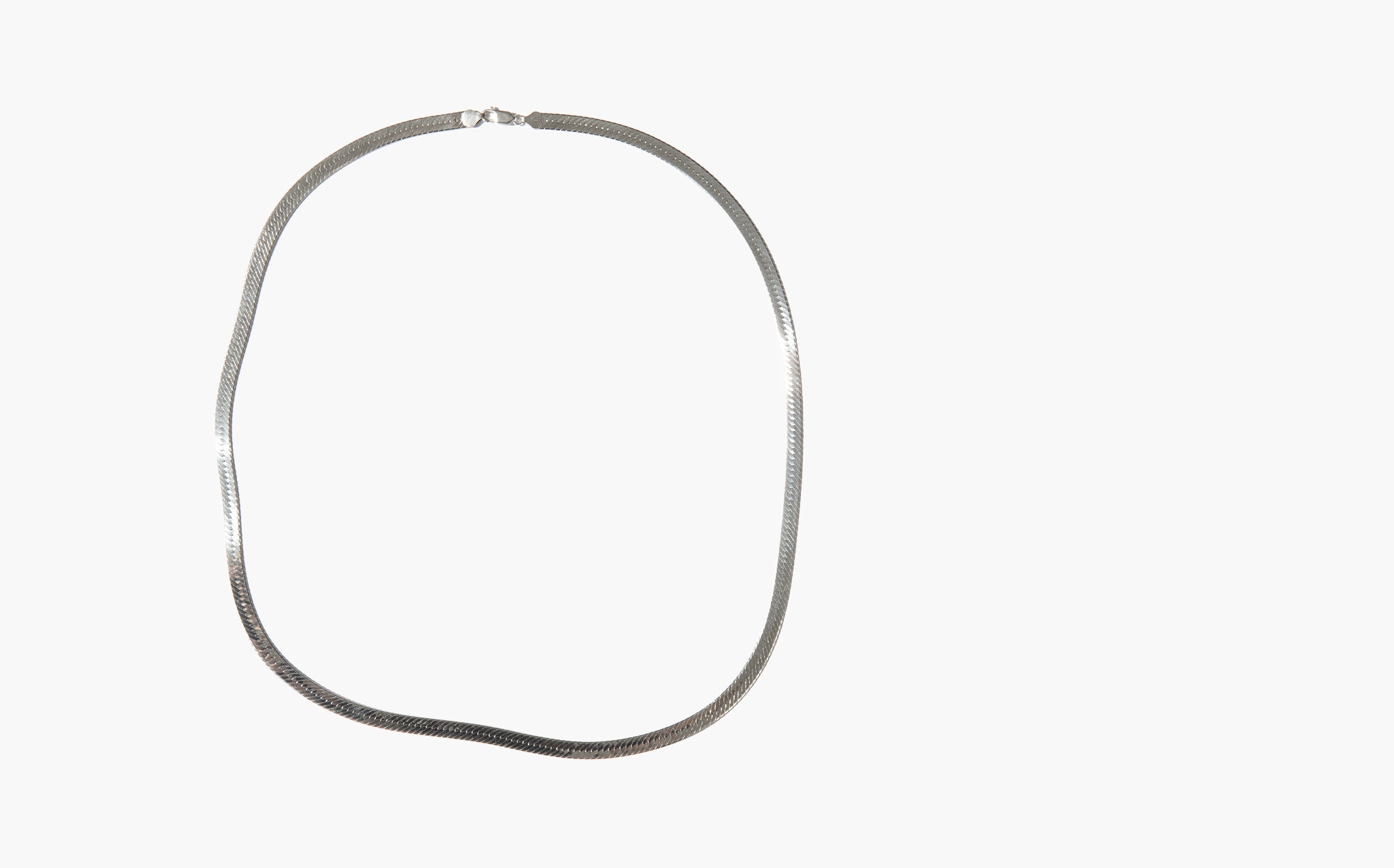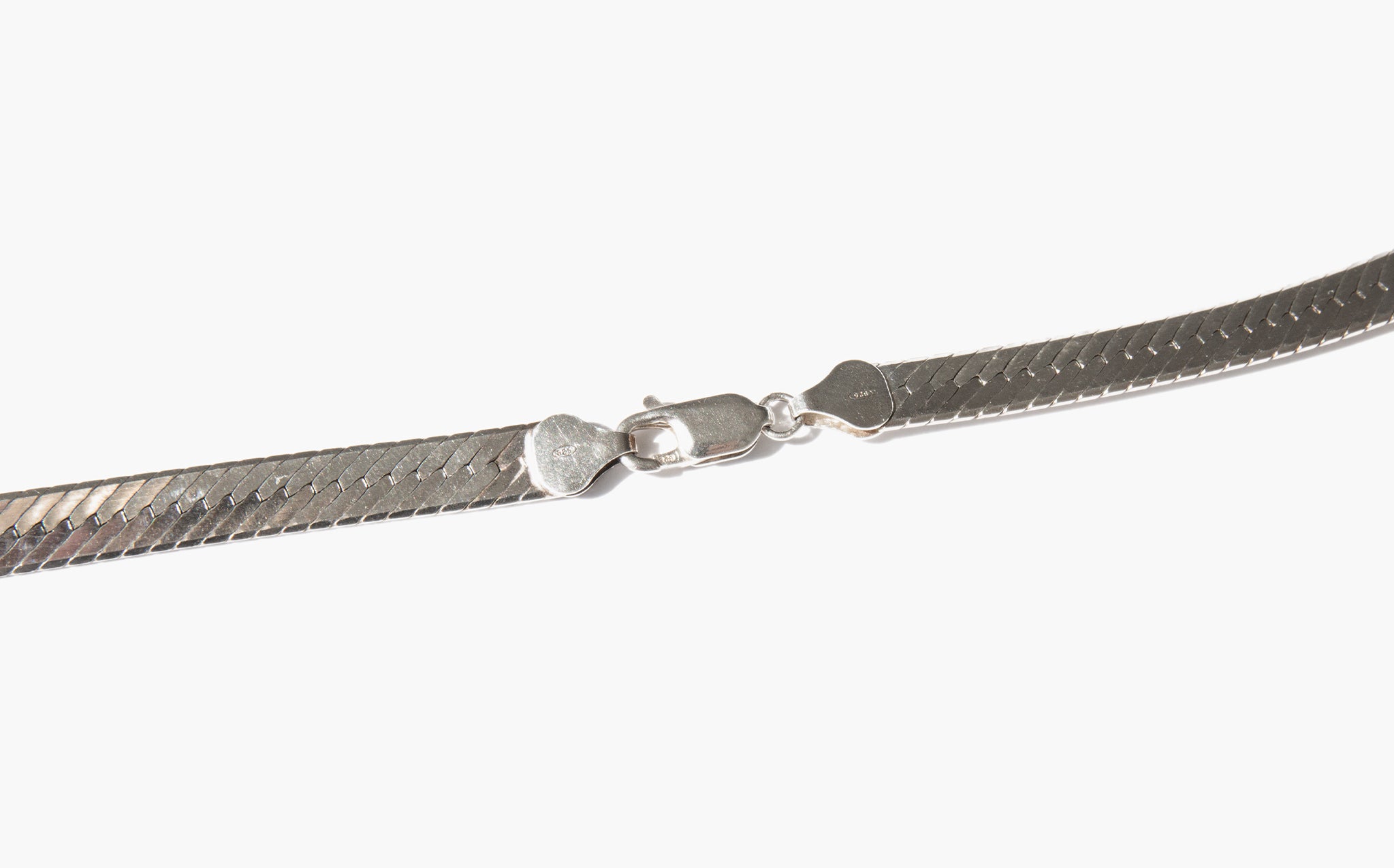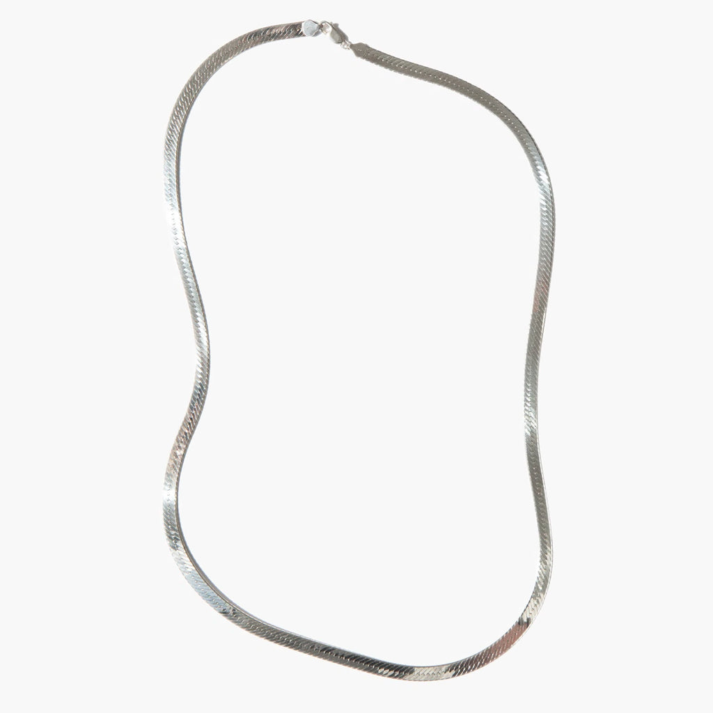 Thick and sparkling long sterling silver herringbone necklace. A chic and simple chain worn alone and a perfect layering piece.